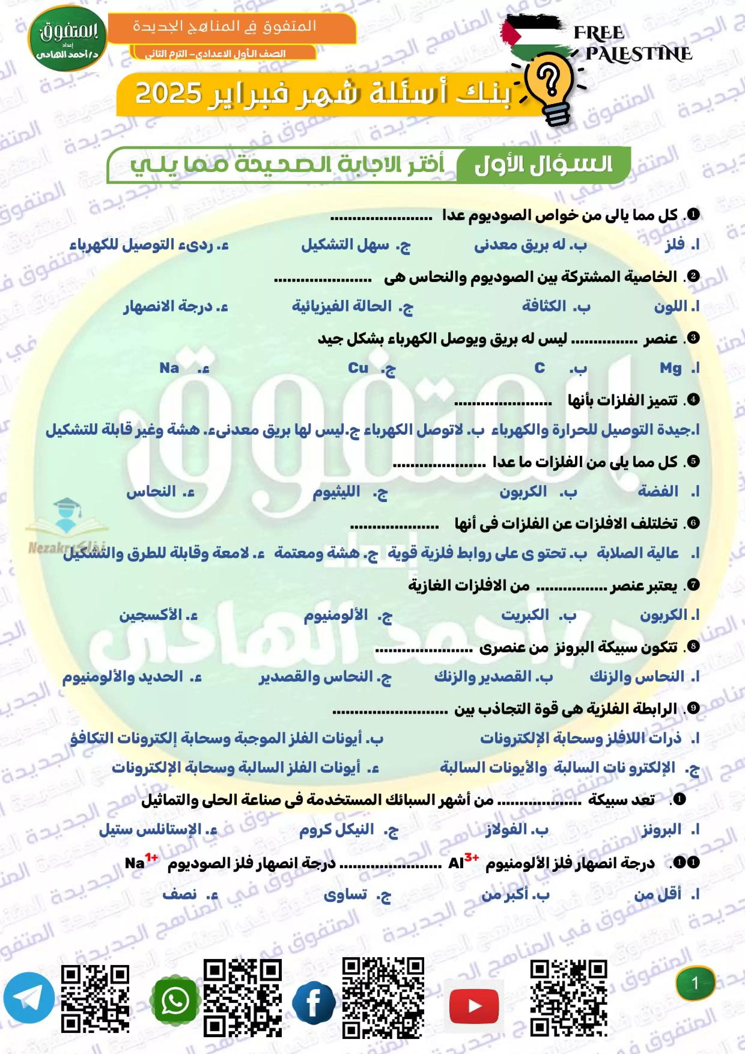 • بنك أسئلة المتفوق في العلوم لشهر فبراير 2025 للصف الأول الاعدادي.