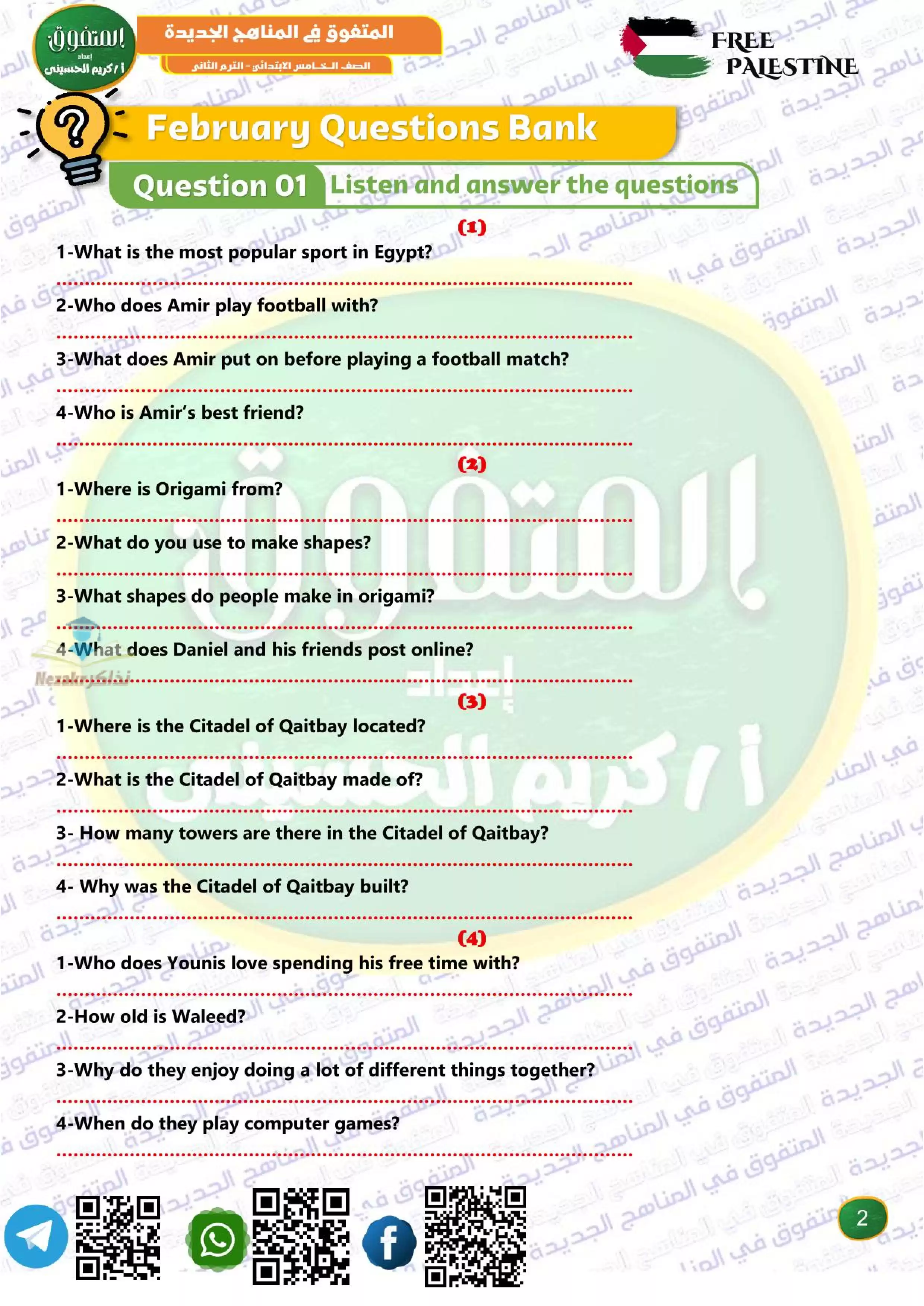 • بنك أسئلة المتفوق في الانجليزي للغات لشهر فبراير 2025 للصف الخامس الابتدائي.