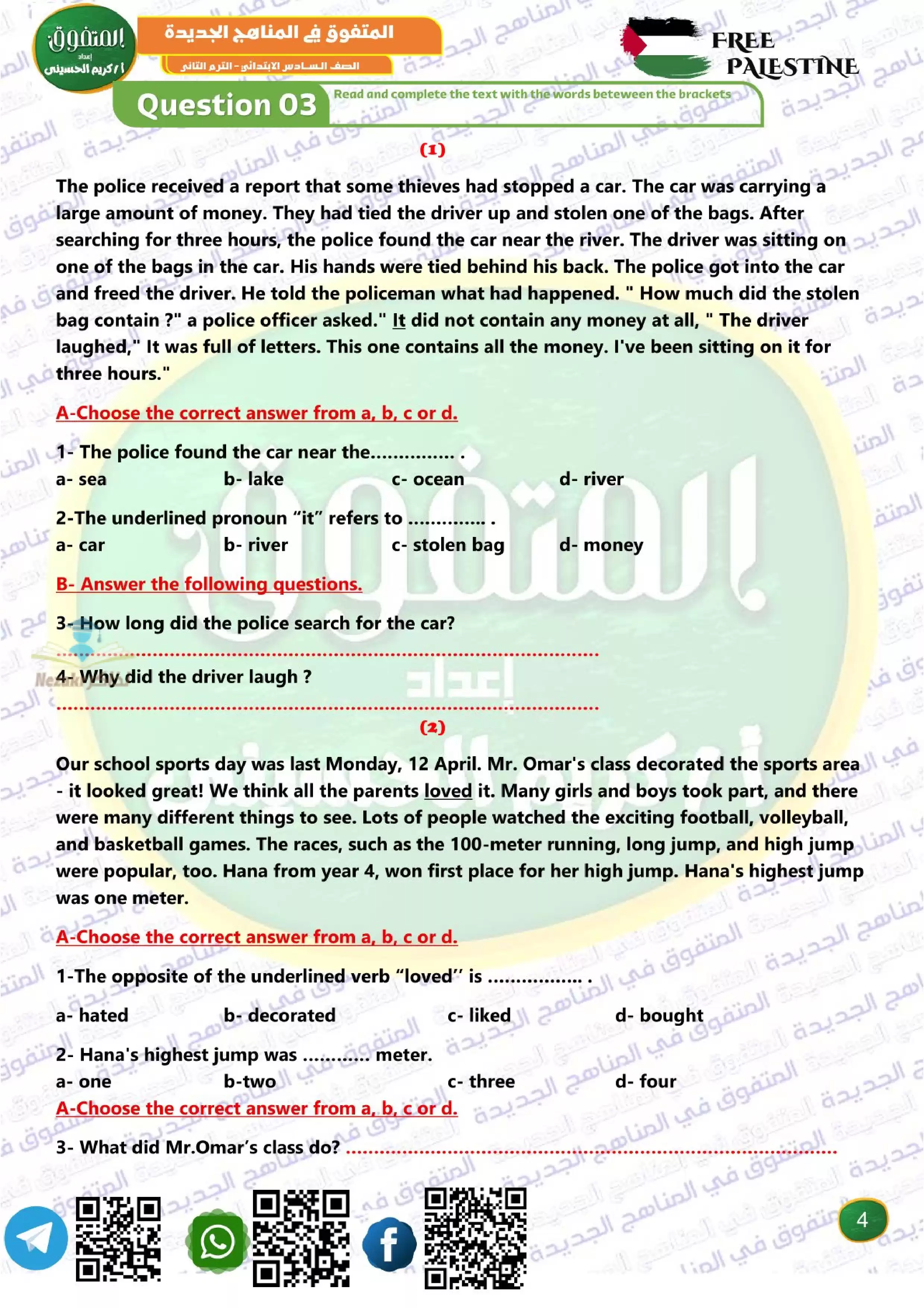 هام جداً: انضم لقناة التليجرام التي ينزل عليها جديد المحتوى الخاص بالصف السادس الإبتدائي لحظة بلحظة