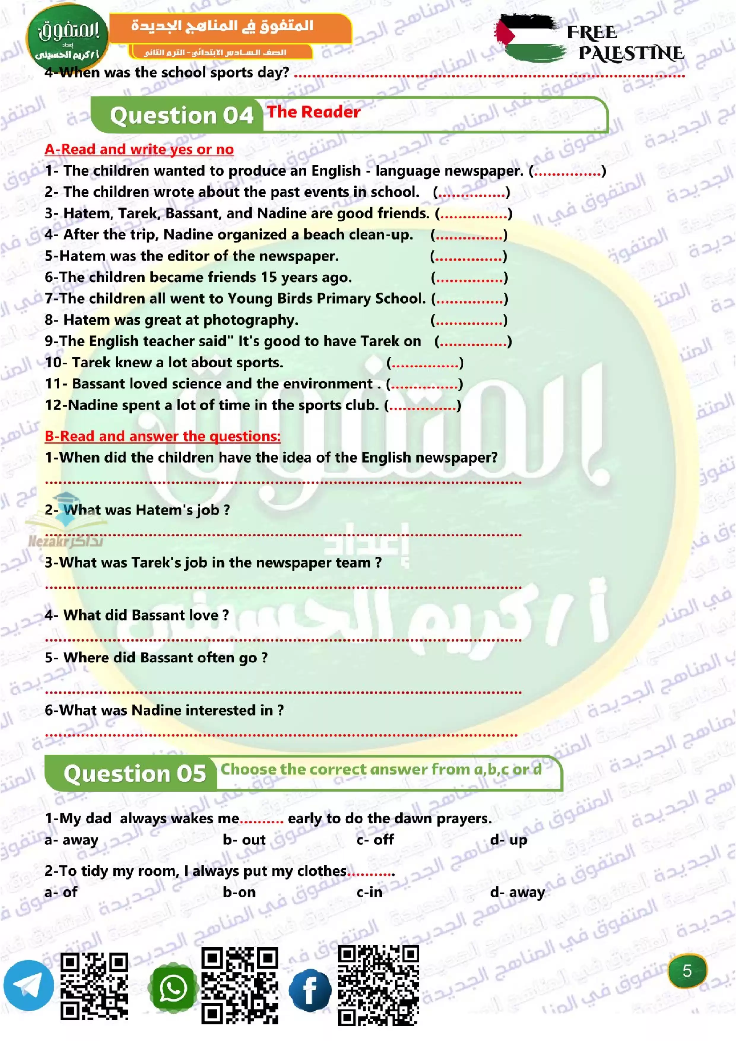 • بنك أسئلة المتفوق في الانجليزي للغات لشهر فبراير 2025 للصف السادس الابتدائي.