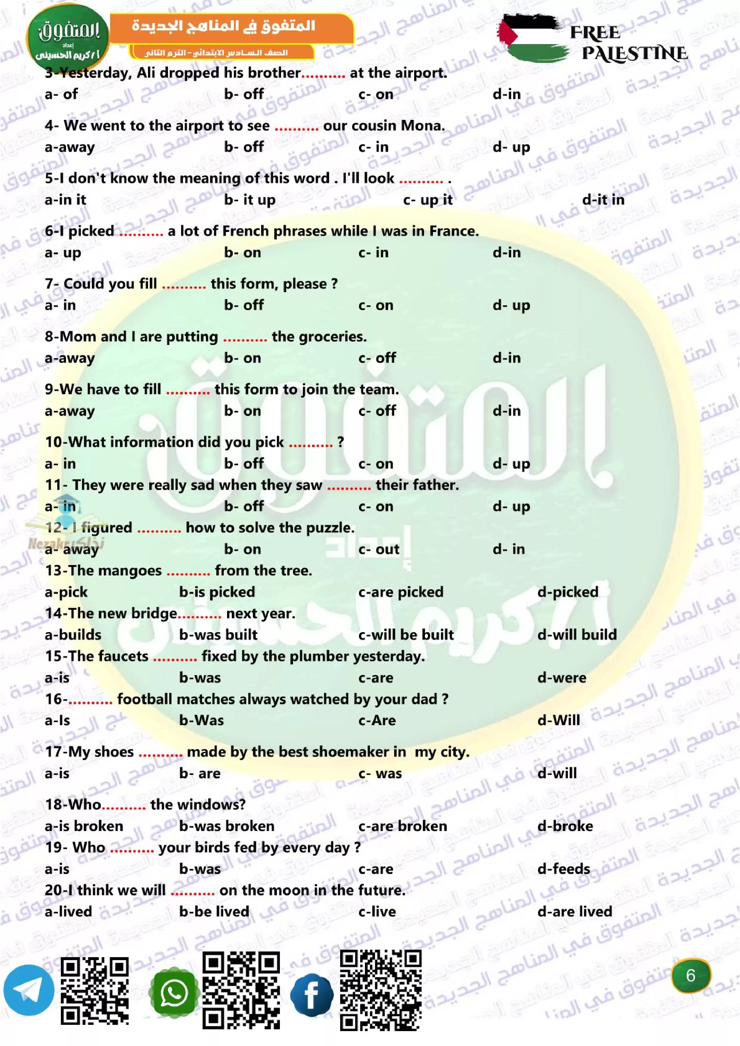 الصف السادس الإبتدائي > اللغة الإنجليزية > بالاجابات .. مراجعة شهر فبراير من المتفوق في اللغة الإنجليزية كونكت بلس 6 لسادسه ابتدائي لغات الترم الثاني 2025 بصيغة PDF