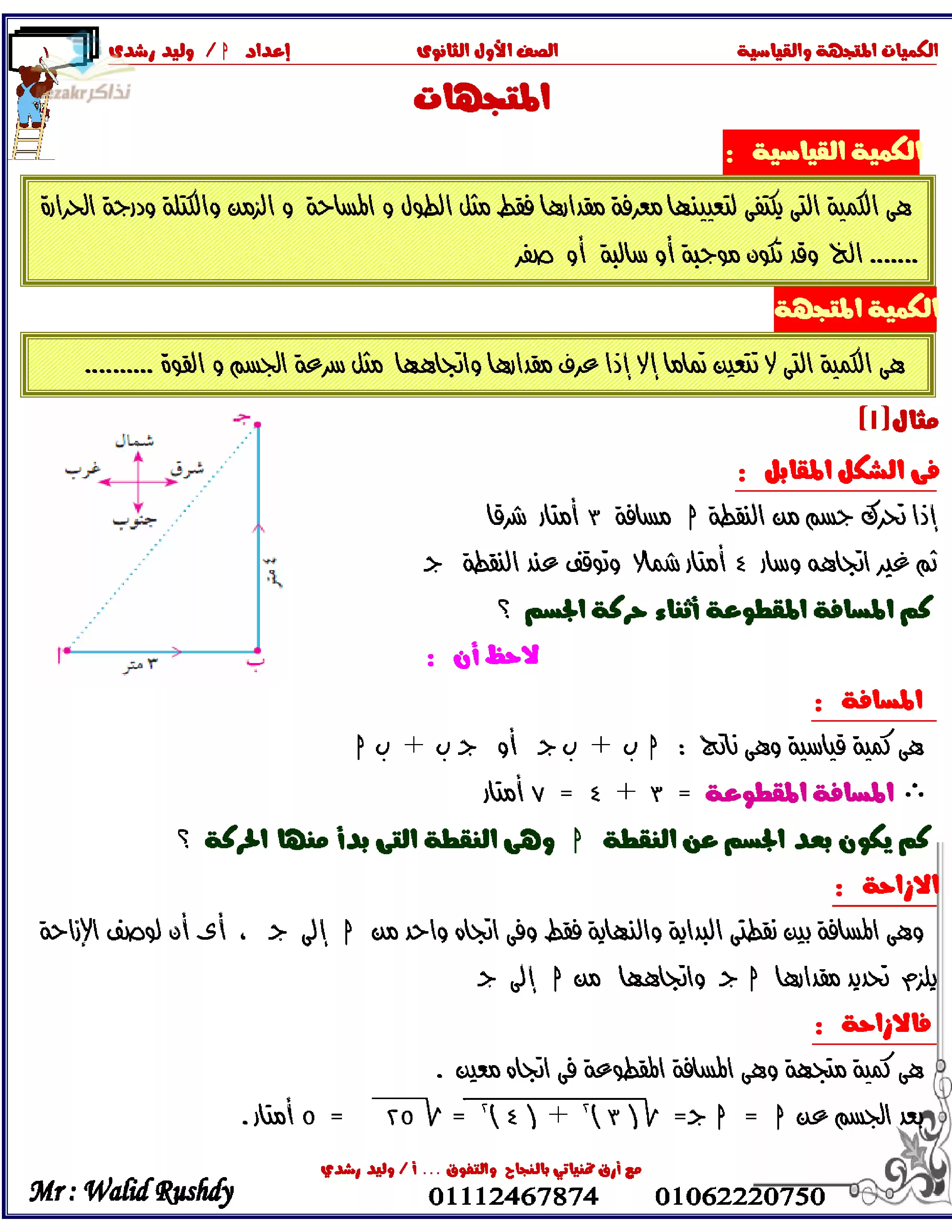 • شرح كافي ووافي لكل درس من دروس المقرر (الكميات المتجهة والقياسية).