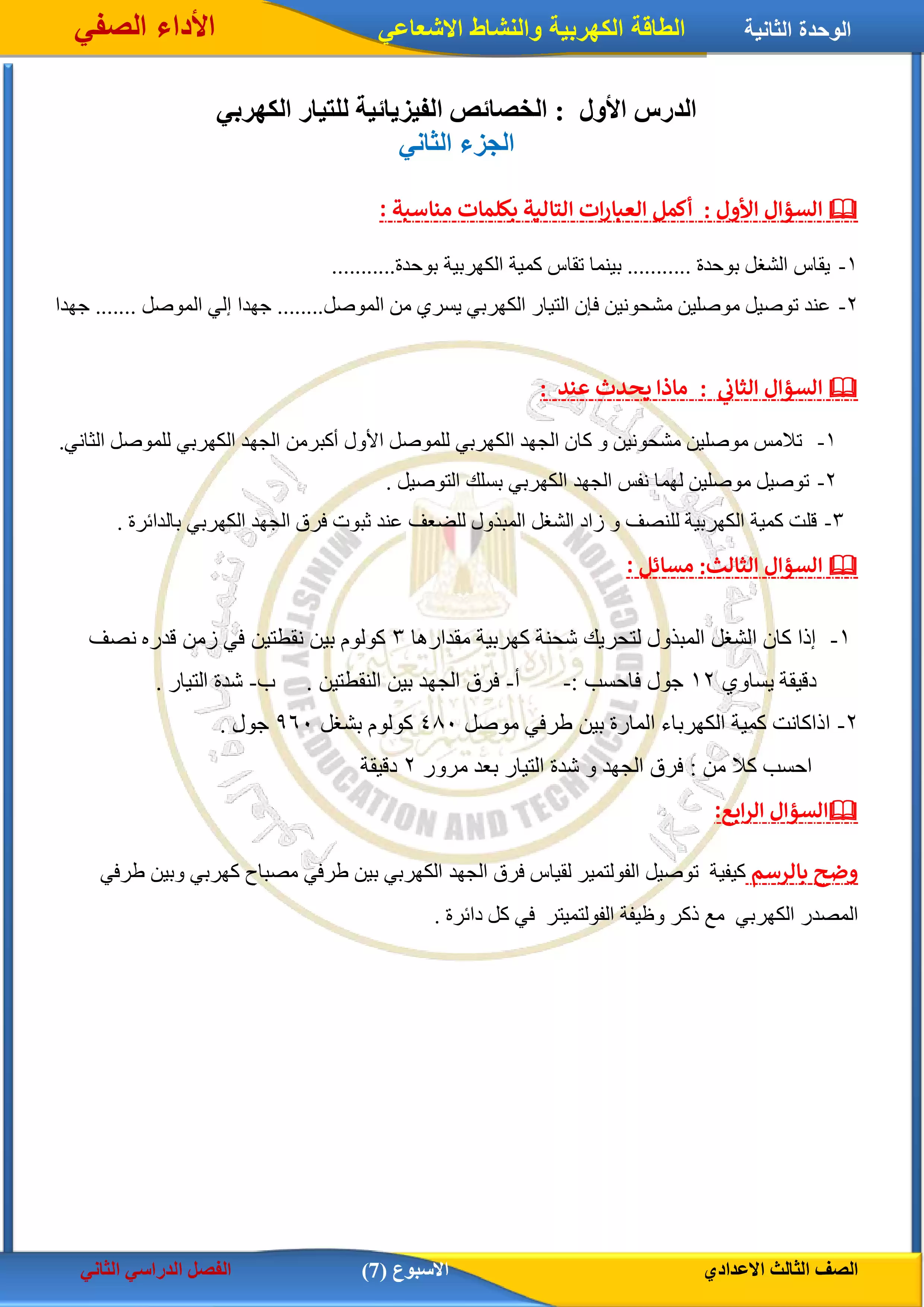 الصف الثالث الإعدادي > العلوم > الآداء الصفي في الأسبوع السابع مادة العلوم للصف الثالث الإعدادي الترم الثاني 2025 بصيغة PDF