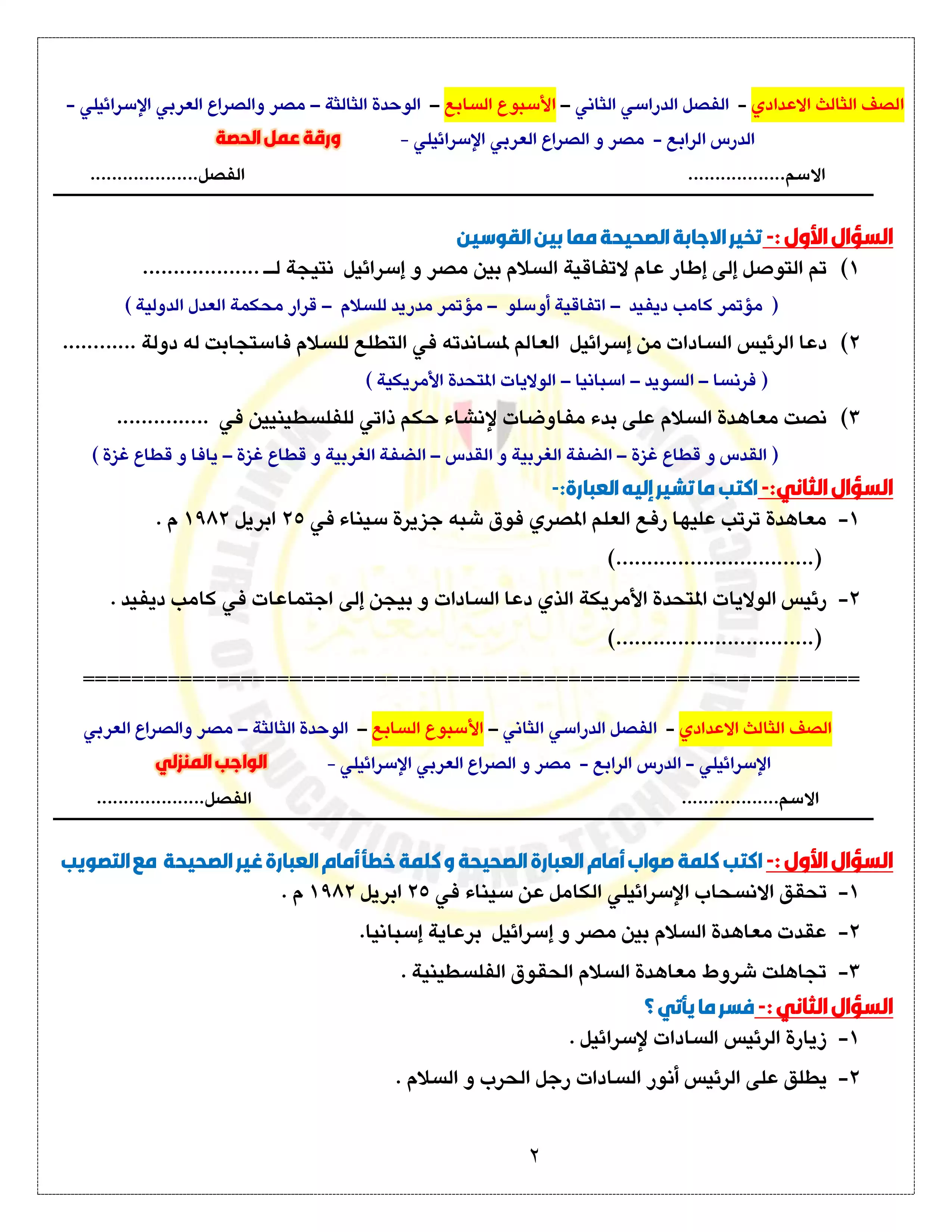 • الاداء المنزلي للاسبوع 7 في الدراسات للشهادة الإعدادية