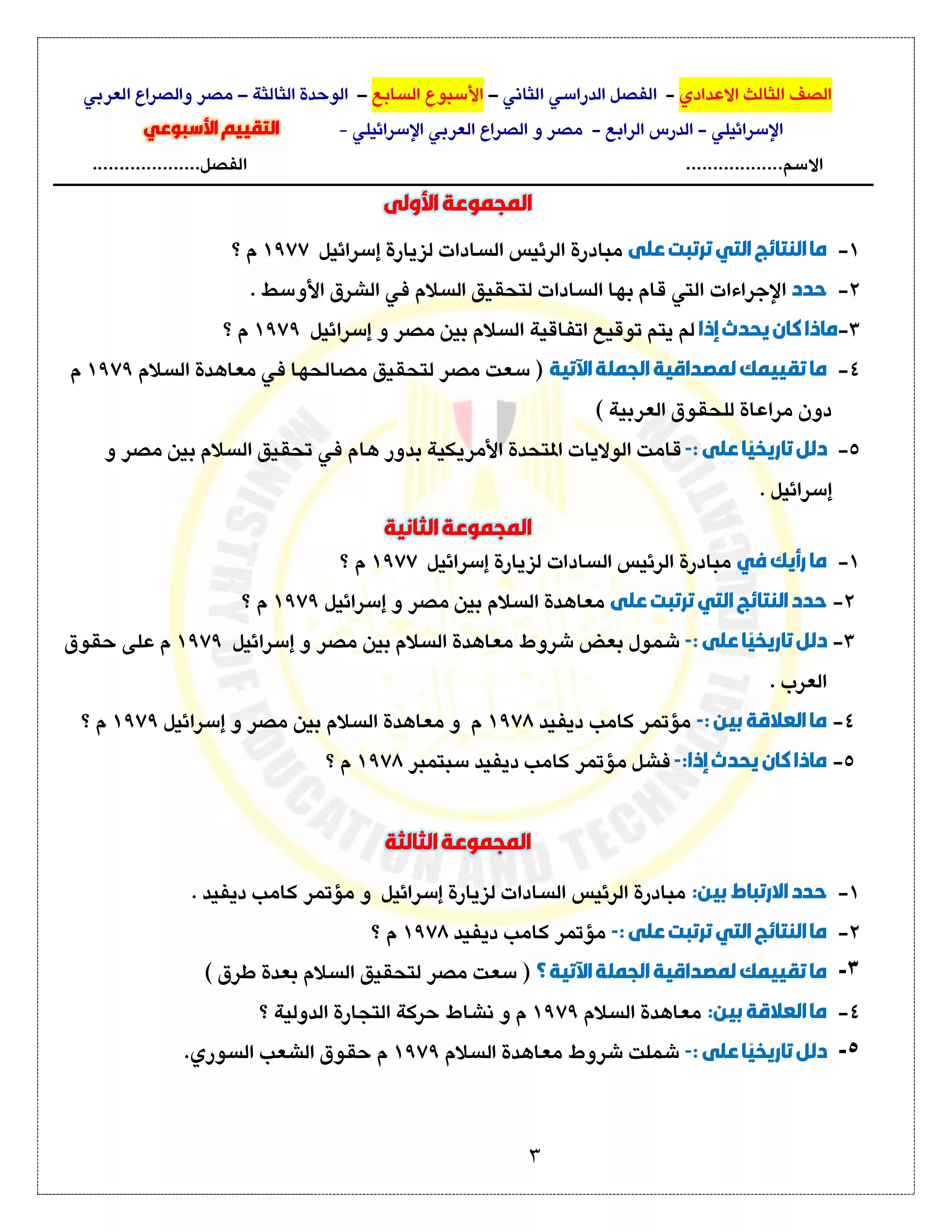 صفحة 3 من 3 صفحة من ملف: التقييمات والآداءات الصفية والمنزلية الخاصة بالأسبوع السابع في الدراسات الاجتماعية للصف الثالث الاعدادي الترم الثاني 2025 - Nezakr