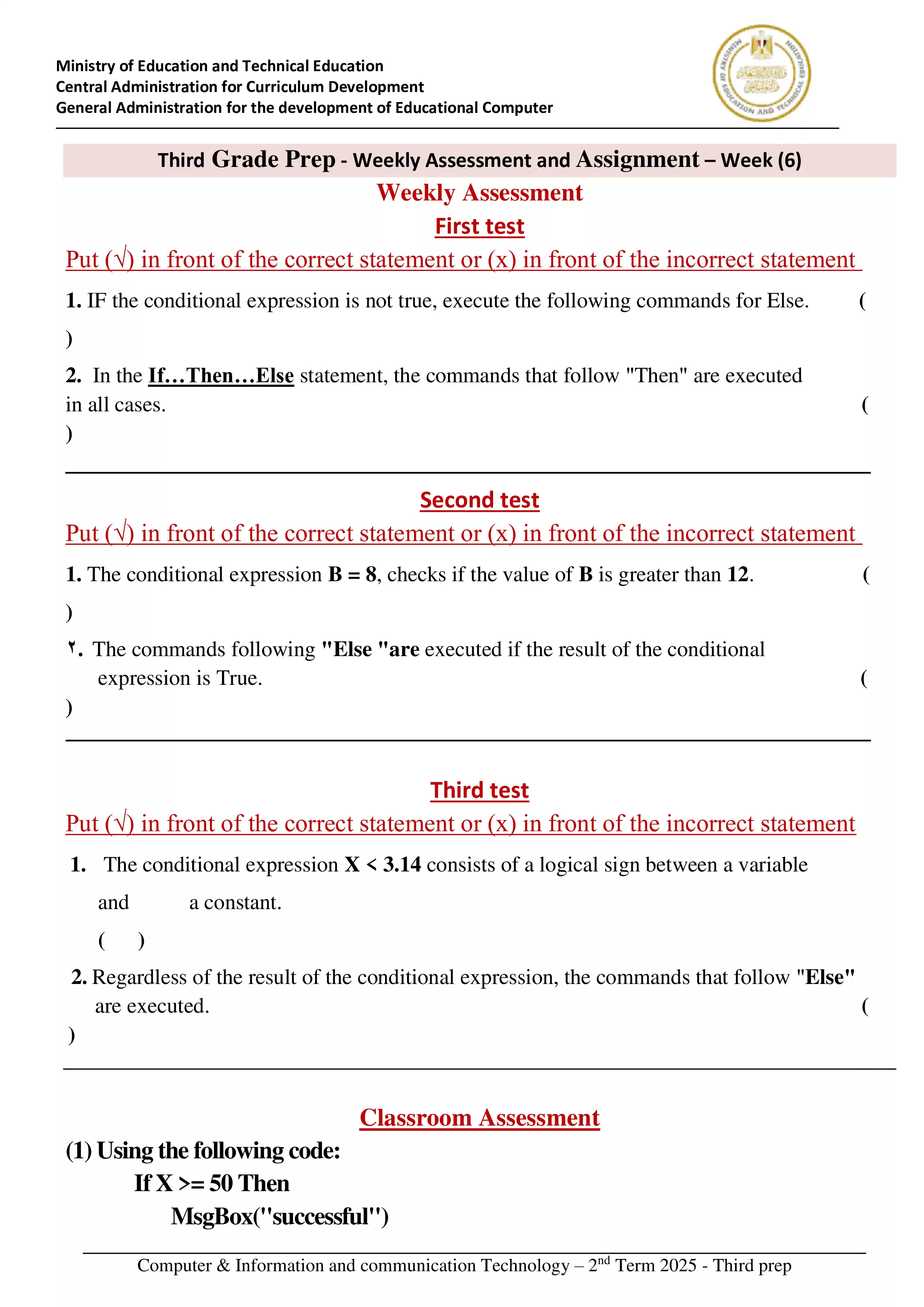 | بيانات الملف: (الآداءات الصفية للأسبوع السادس في الكمبيوتر وتكنولوجيا المعلومات للغات ICT للصف الثالث الإعدادي الترم الثاني 2025 - Nezakr) | |