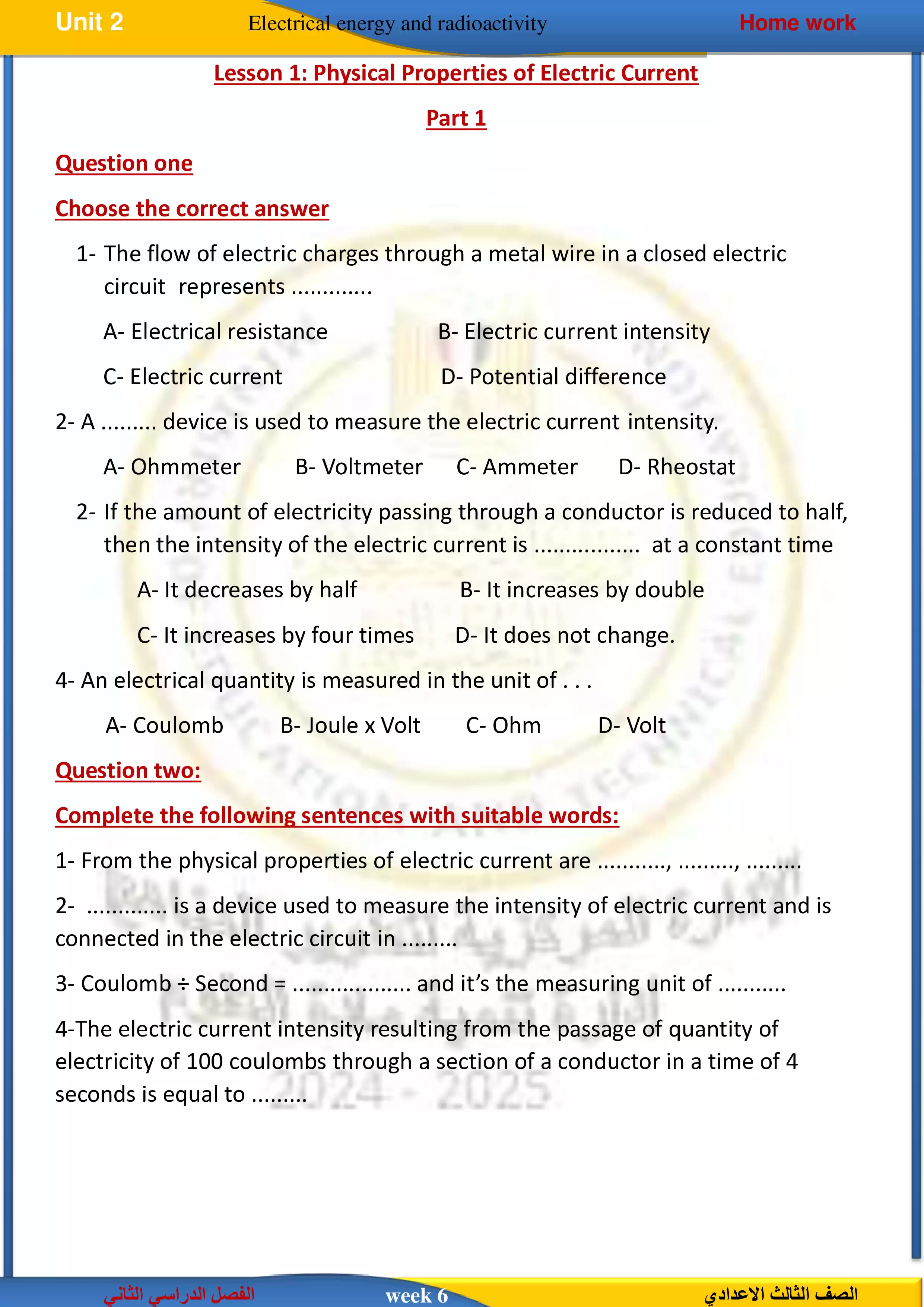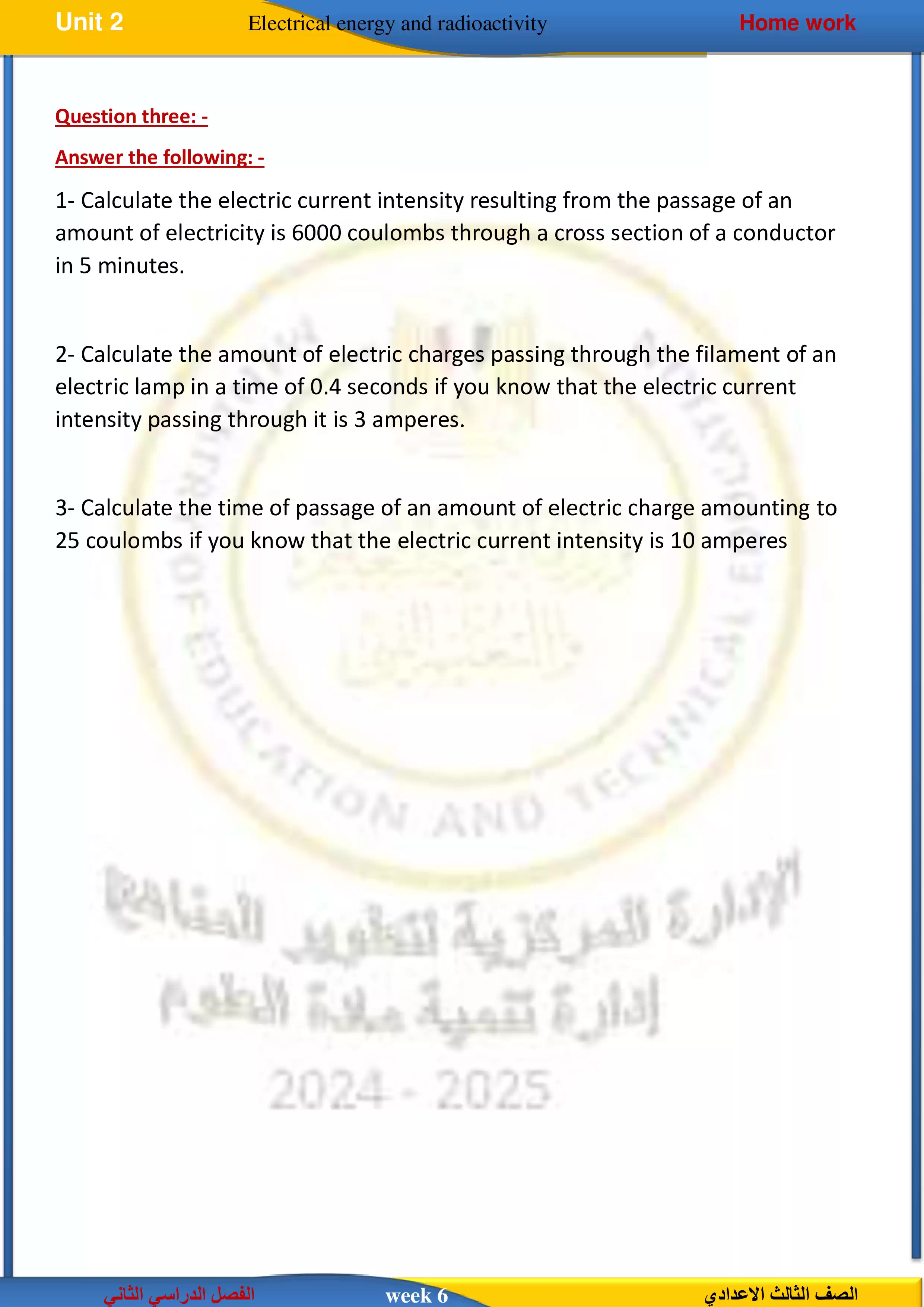 الصف الثالث الإعدادي > العلوم باللغة الإنجليزية (ساينس Science) > الأداء المنزلي في الأسبوع السادس مادة الساينس Science للصف الثالث الاعدادي الترم الثاني 2025 بصيغة PDF