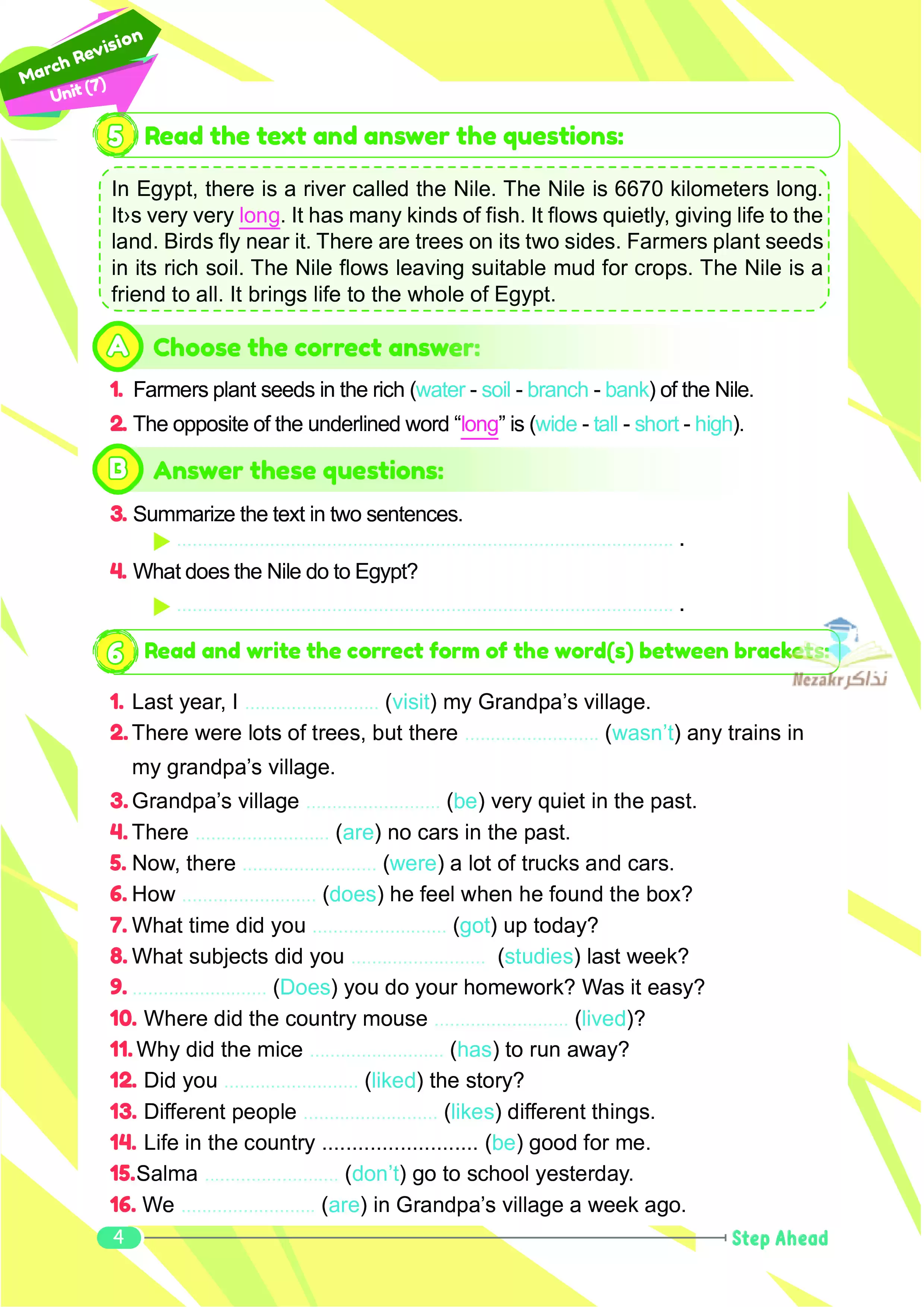 | بيانات الملف: (مراجعة كتاب Step Ahead في اللغة الإنجليزية Connect 4 على مقرر شهر مارس 2025 للصف الرابع الابتدائي الترم الثاني - Nezakr) | |