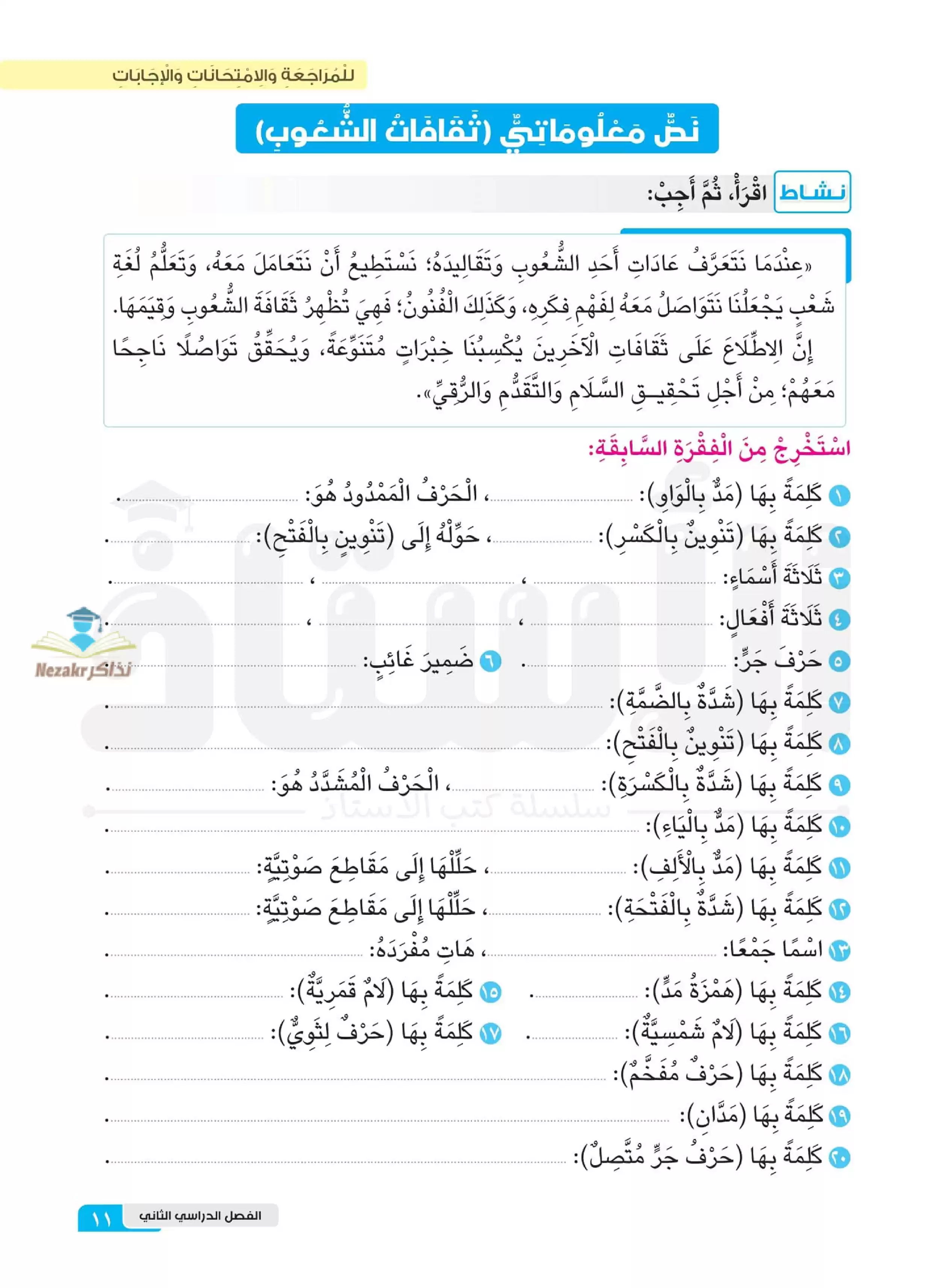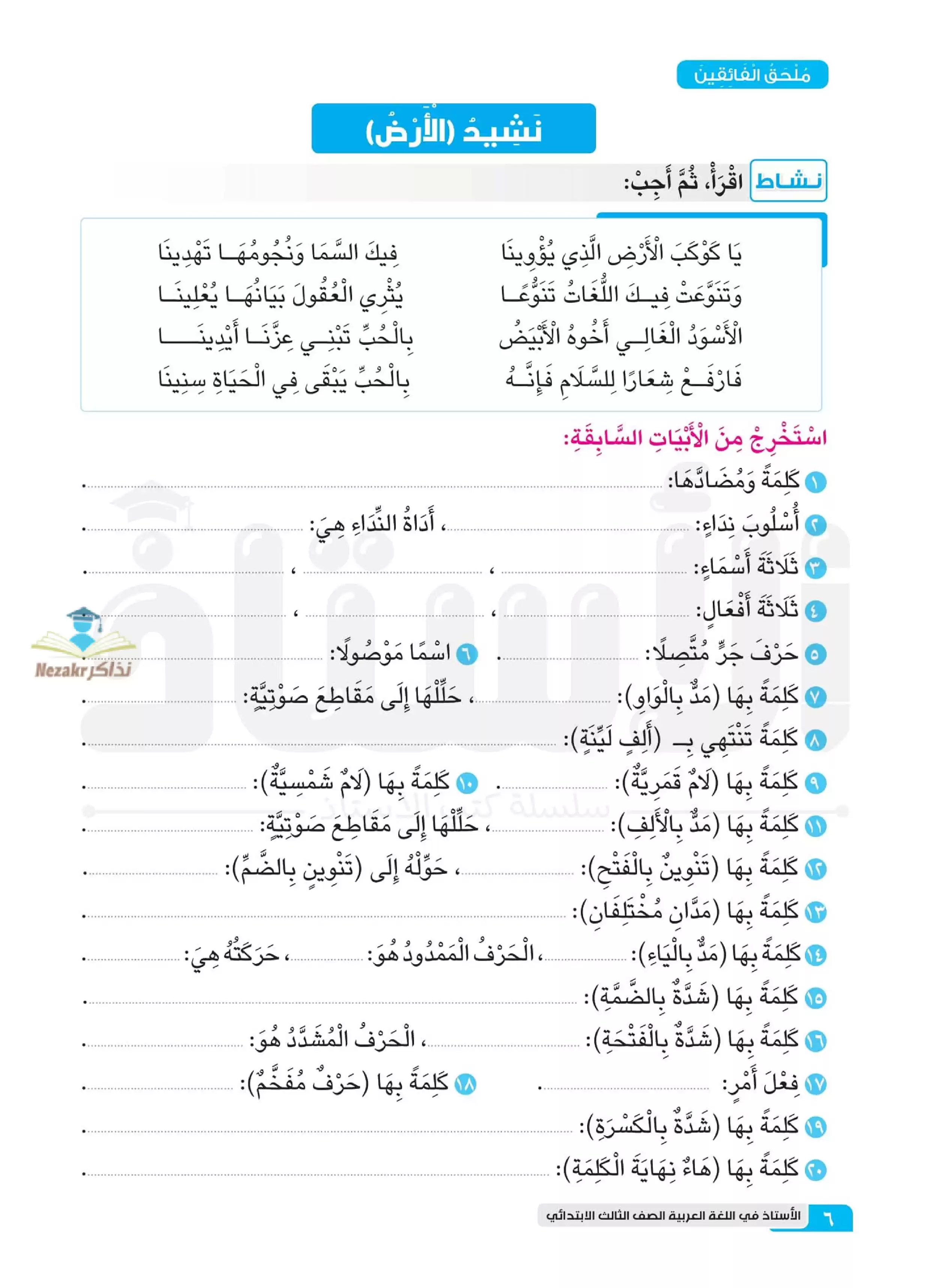 | بيانات الملف: (مراجعة وأسئلة شهر فبراير في اللغة العربية من كتاب الأستاذ ثالثة ابتدائي - Nezakr) | |