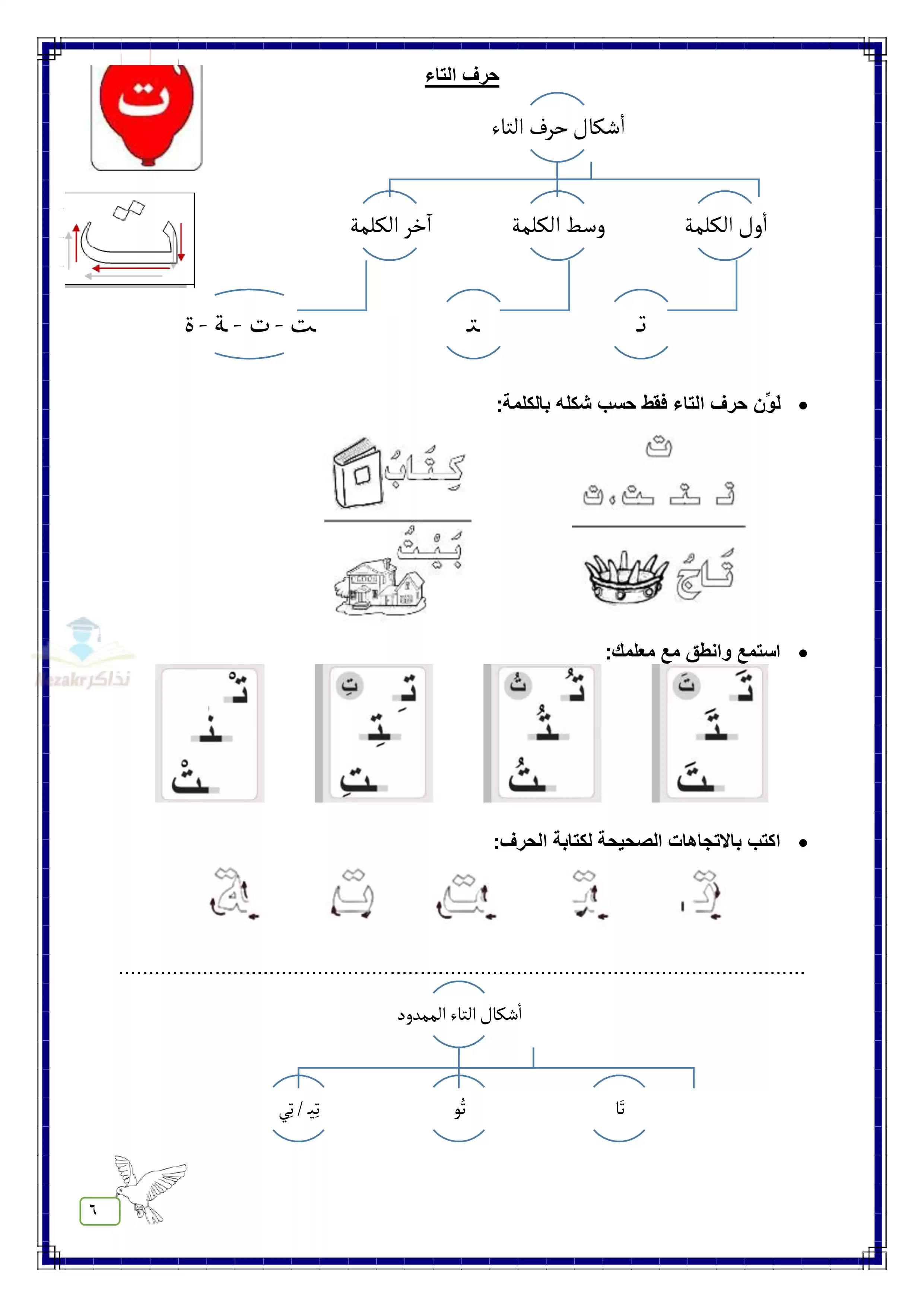 - استمع وانطق مع مدرسك كل حرف من الحروف الهجائية داخل كلمات
