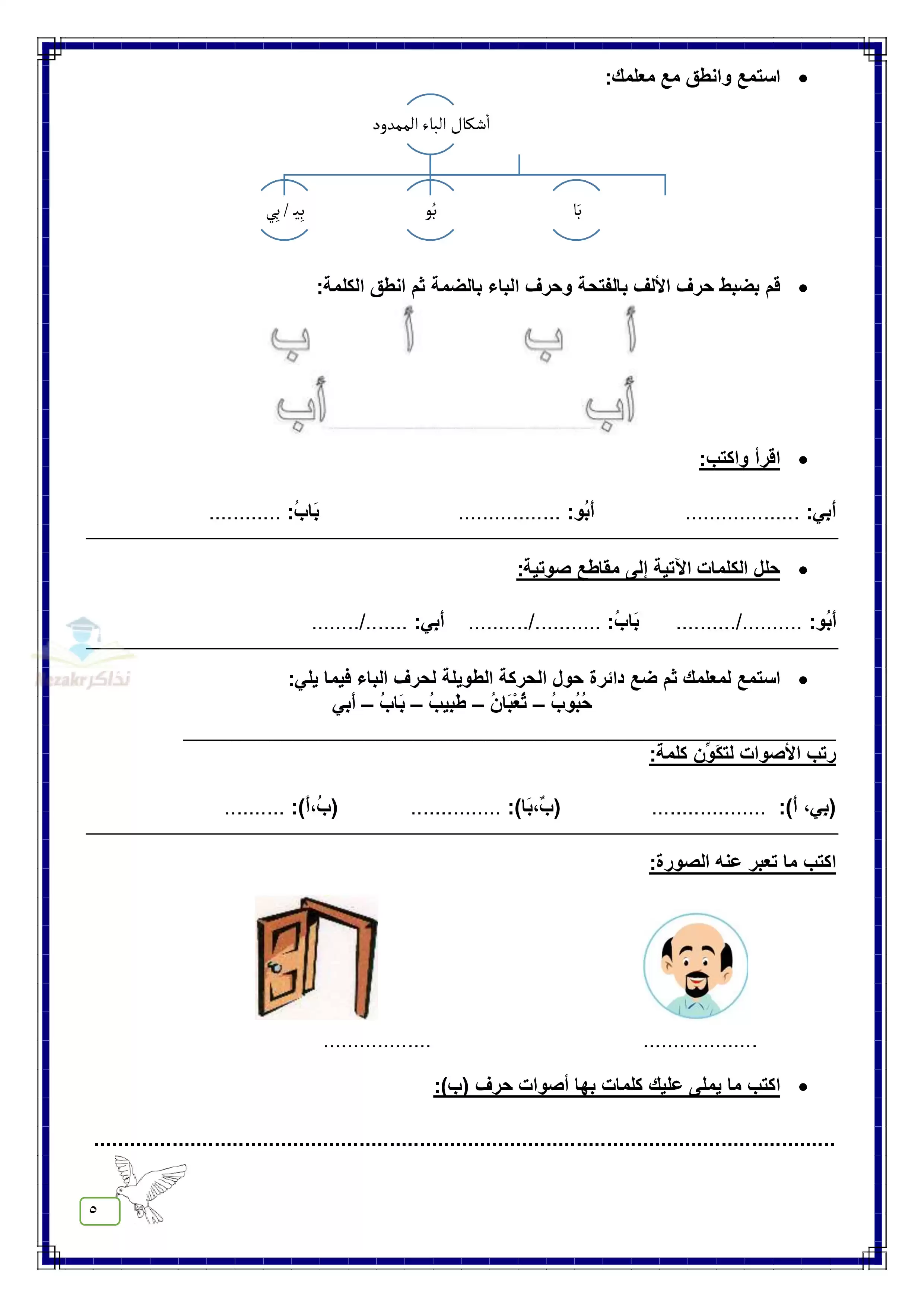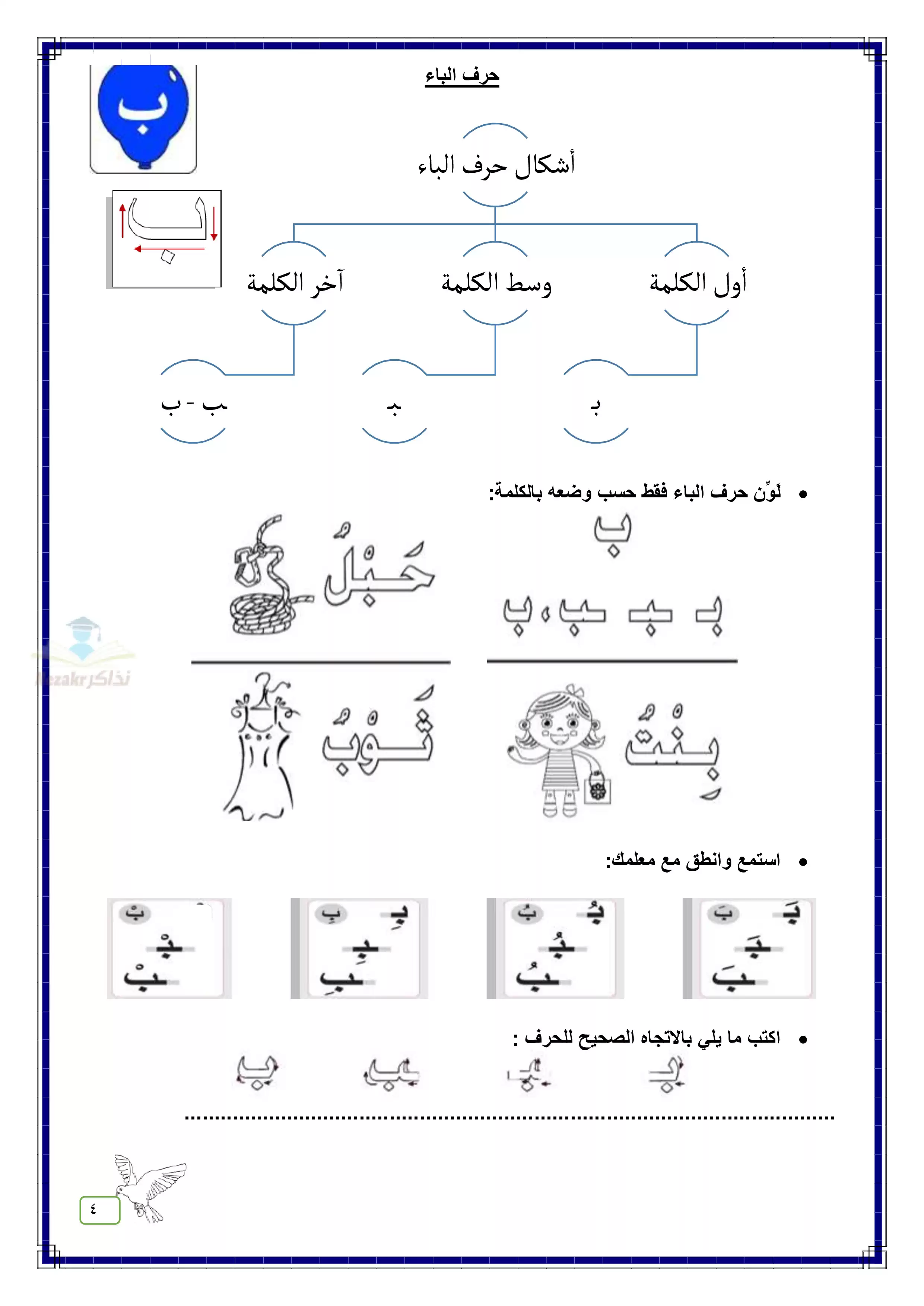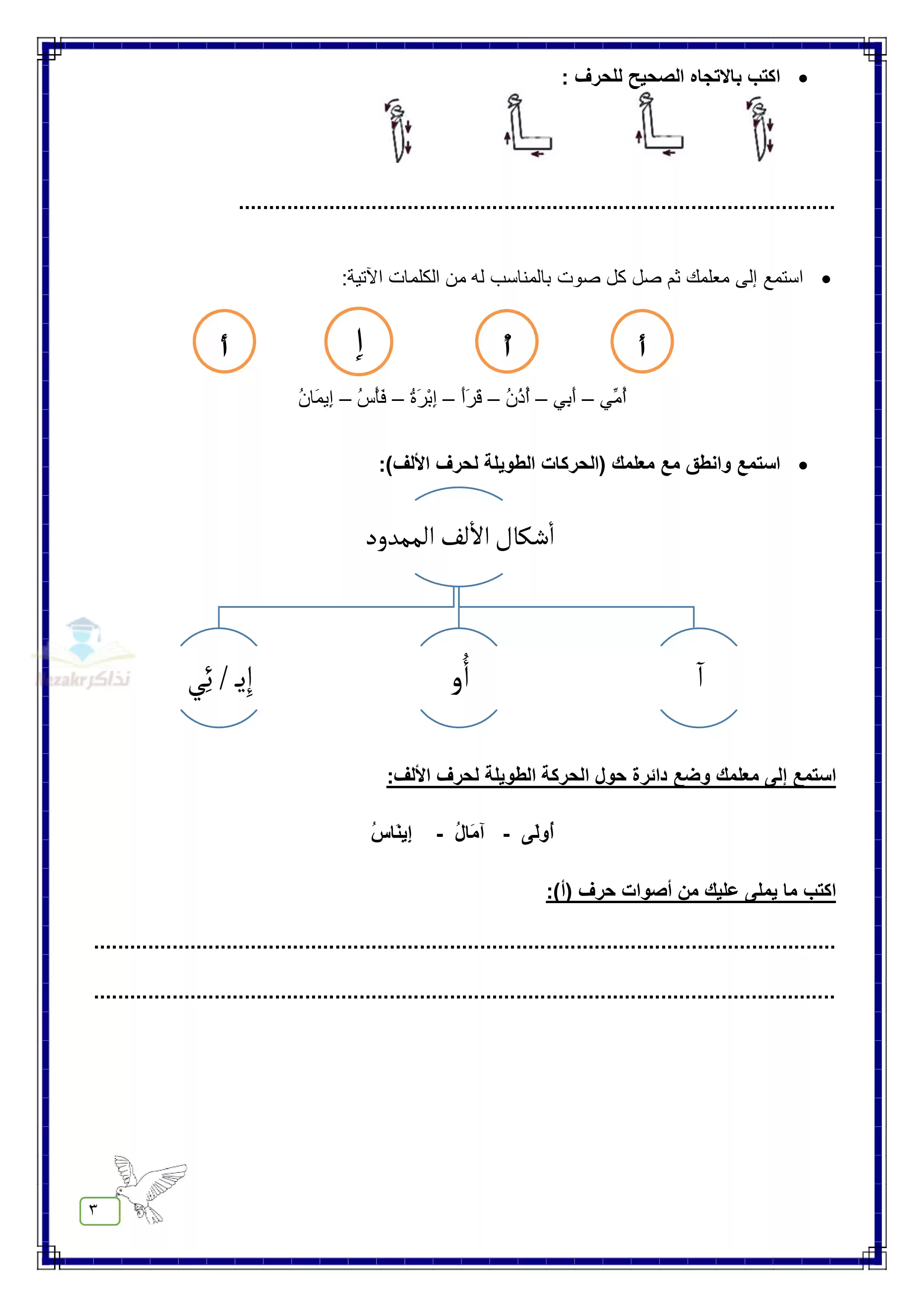 - استمع وانطق مع مدرسك كل حرف من الحروف الهجائية داخل كلمات