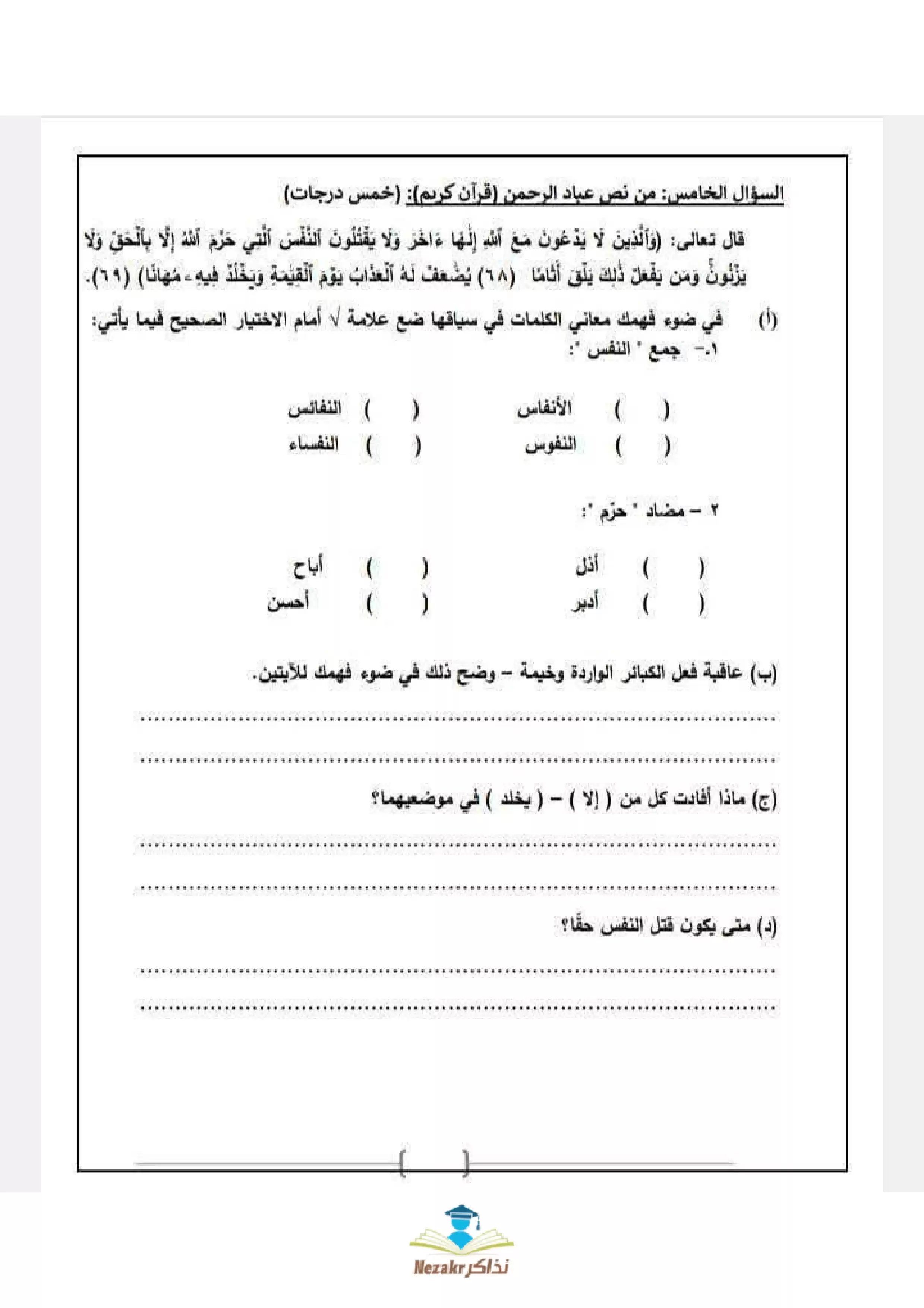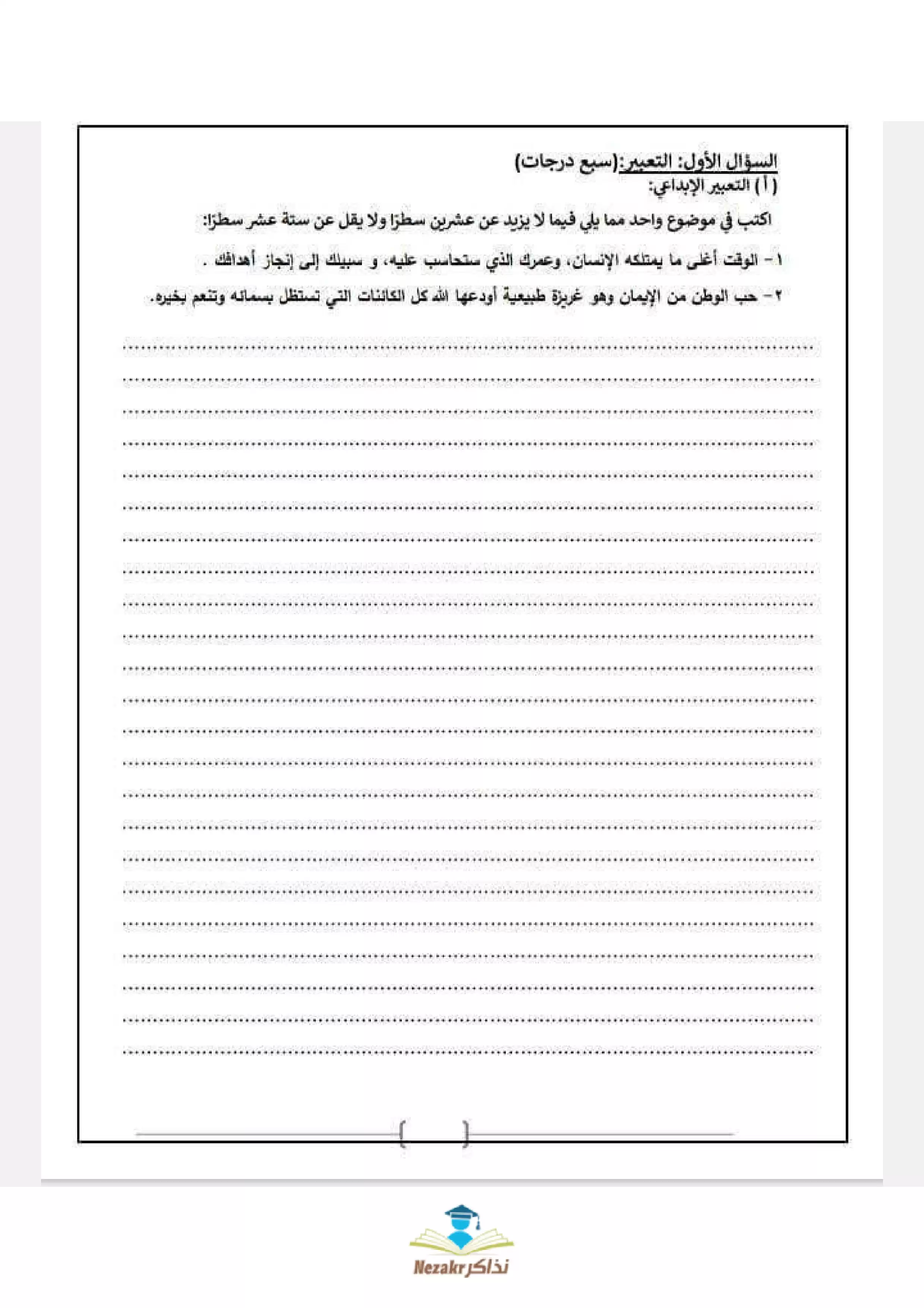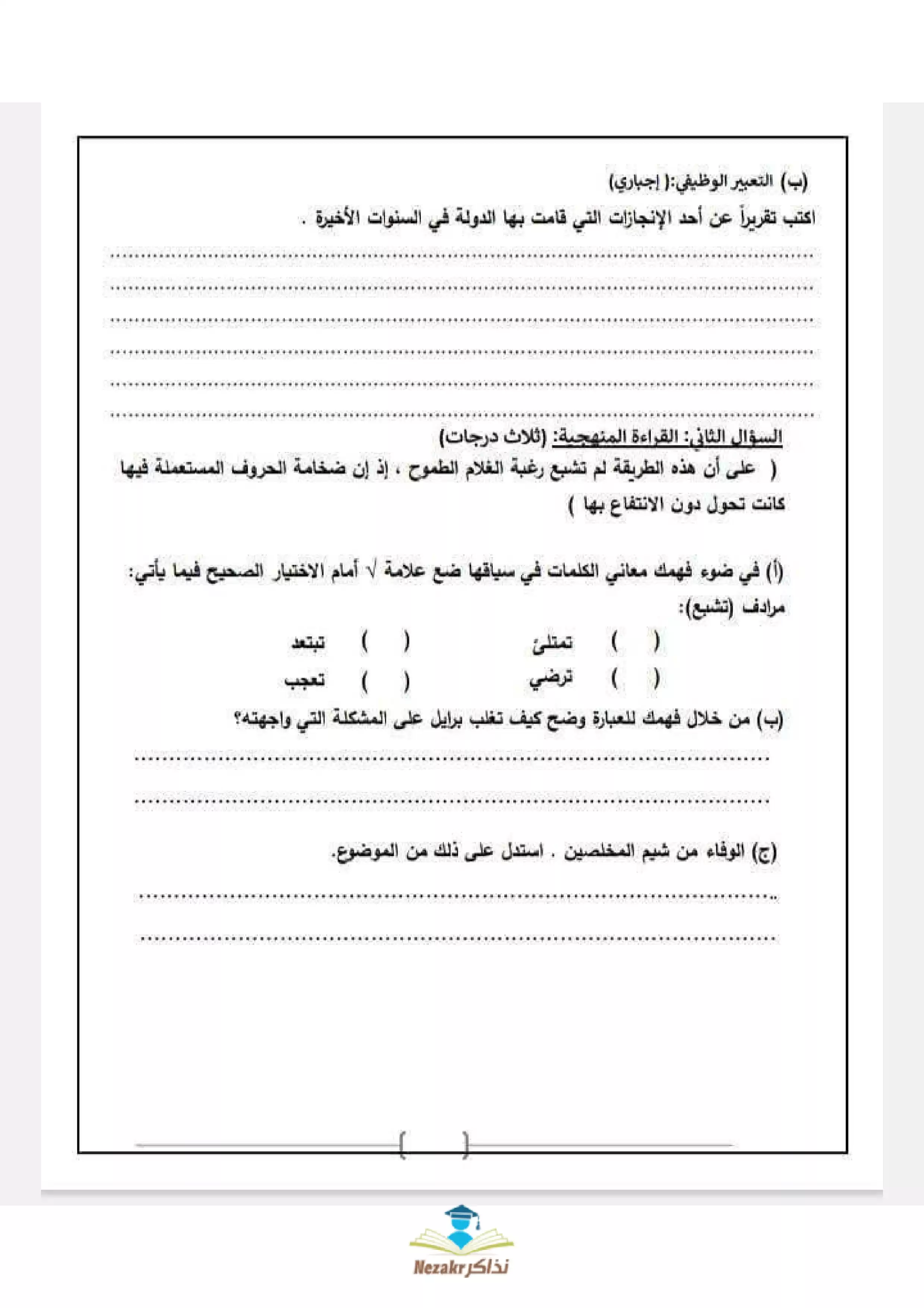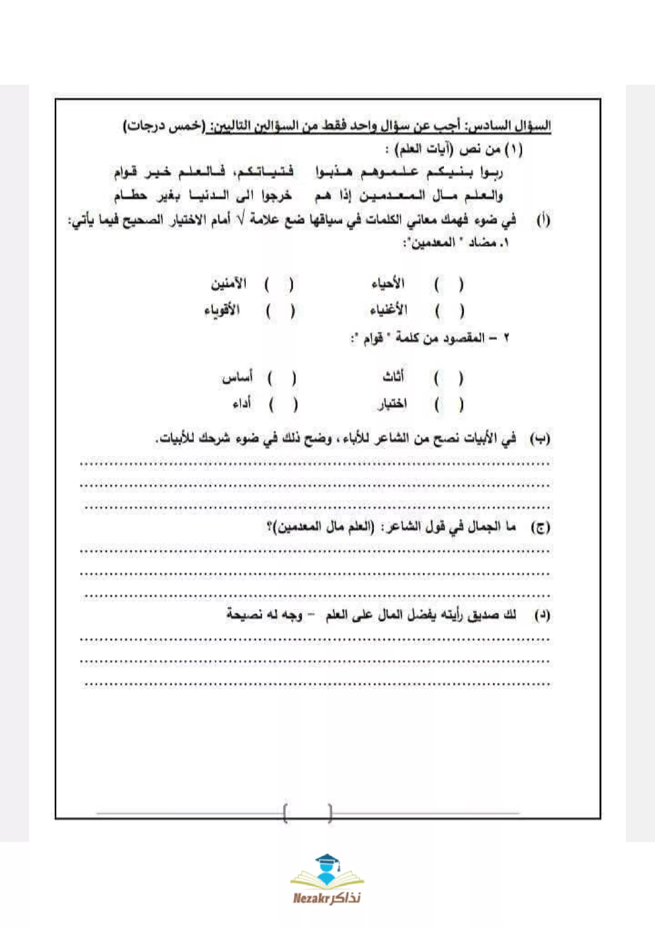 | بيانات الملف: (امتحان لغة عربية للشهادة الإعدادية بنظام البوكليت الجديد للامتحانات 2025 - Nezakr) | |