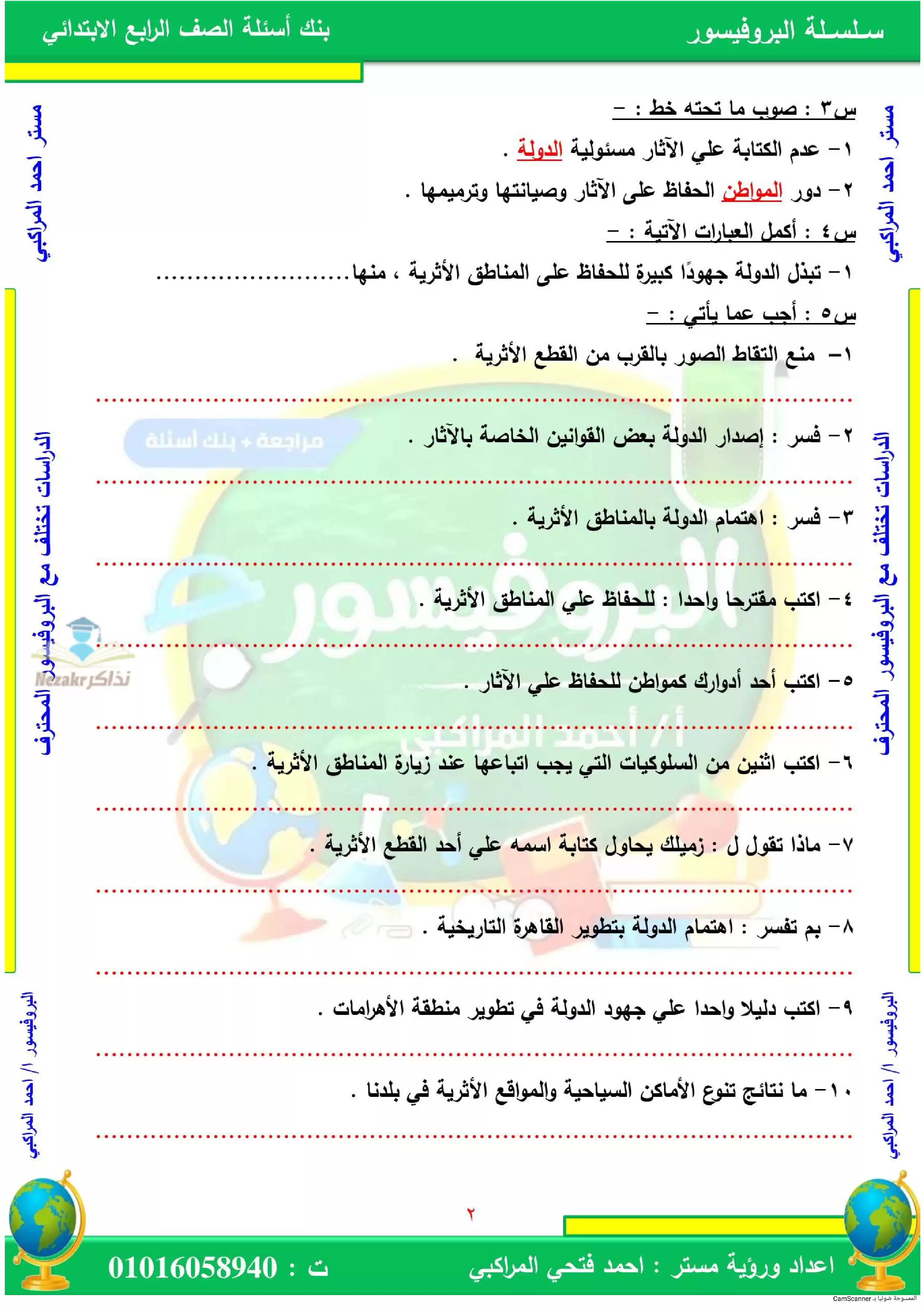 الصف الرابع الإبتدائي > الدراسات الإجتماعية > بنك اسئلة درس مسئوليتنا نحو تراث بلدنا مادة الدراسات الاجتماعية لرابعة ابتدائي بصيغة PDF