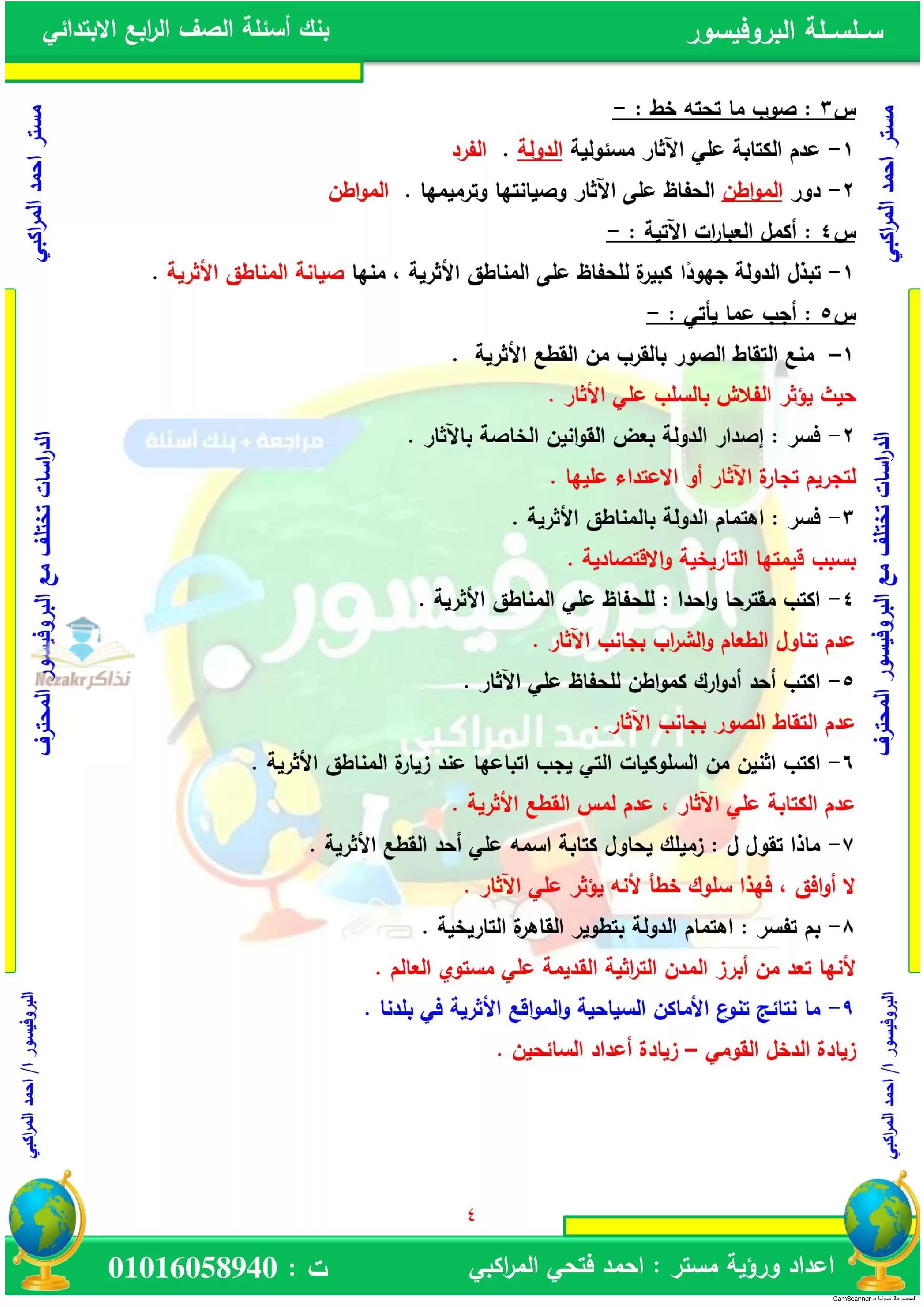 صفحة 4 من 4 صفحة من ملف: بنك أسئلة على درس مسئوليتنا نحو تراث بلدنا لرابعة ابتدائي - Nezakr