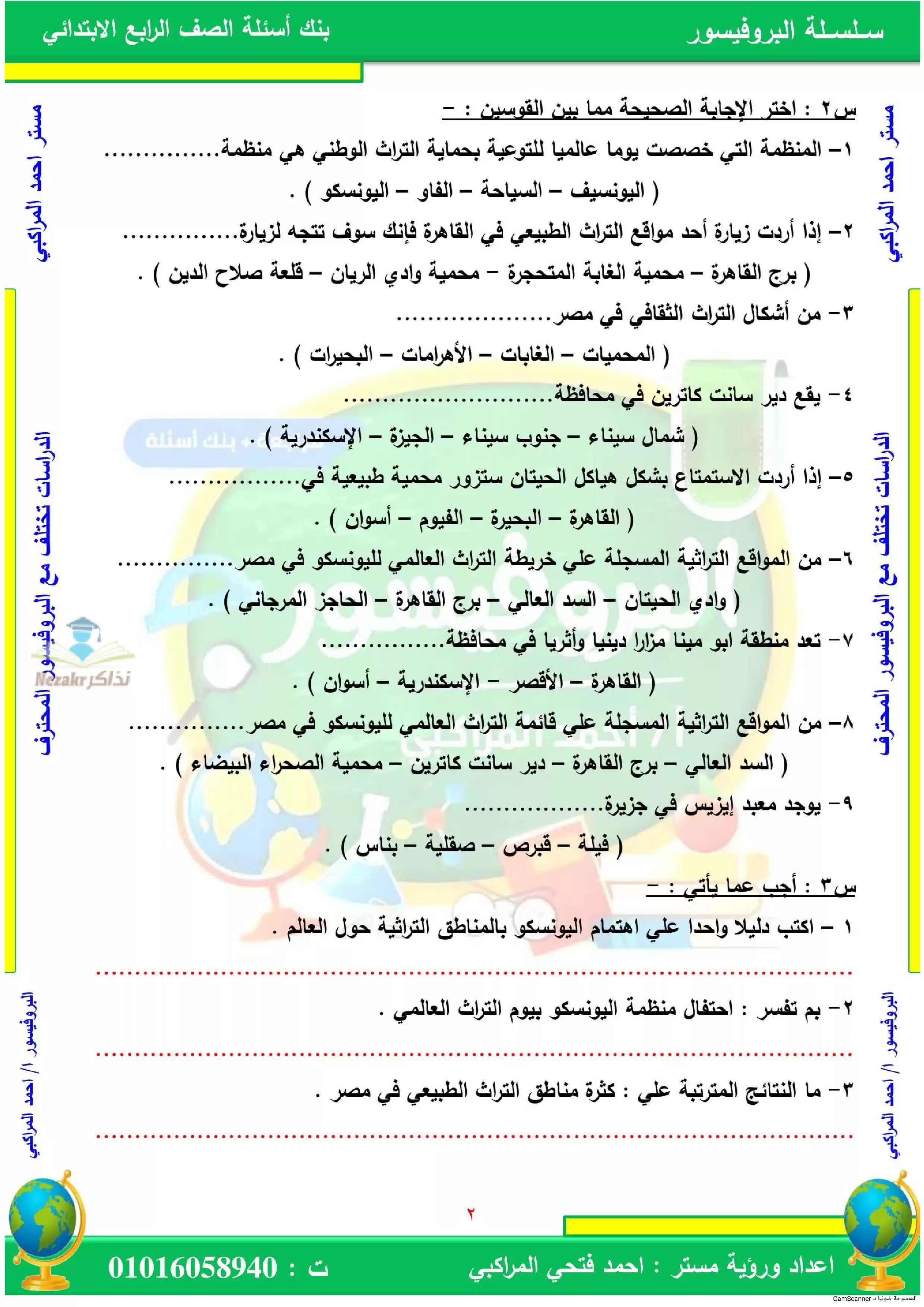 صفحة 2 من 8 صفحة من ملف: بنك أسئلة على درس المواقع التراثية في بلدنا لرابعة ابتدائي - Nezakr