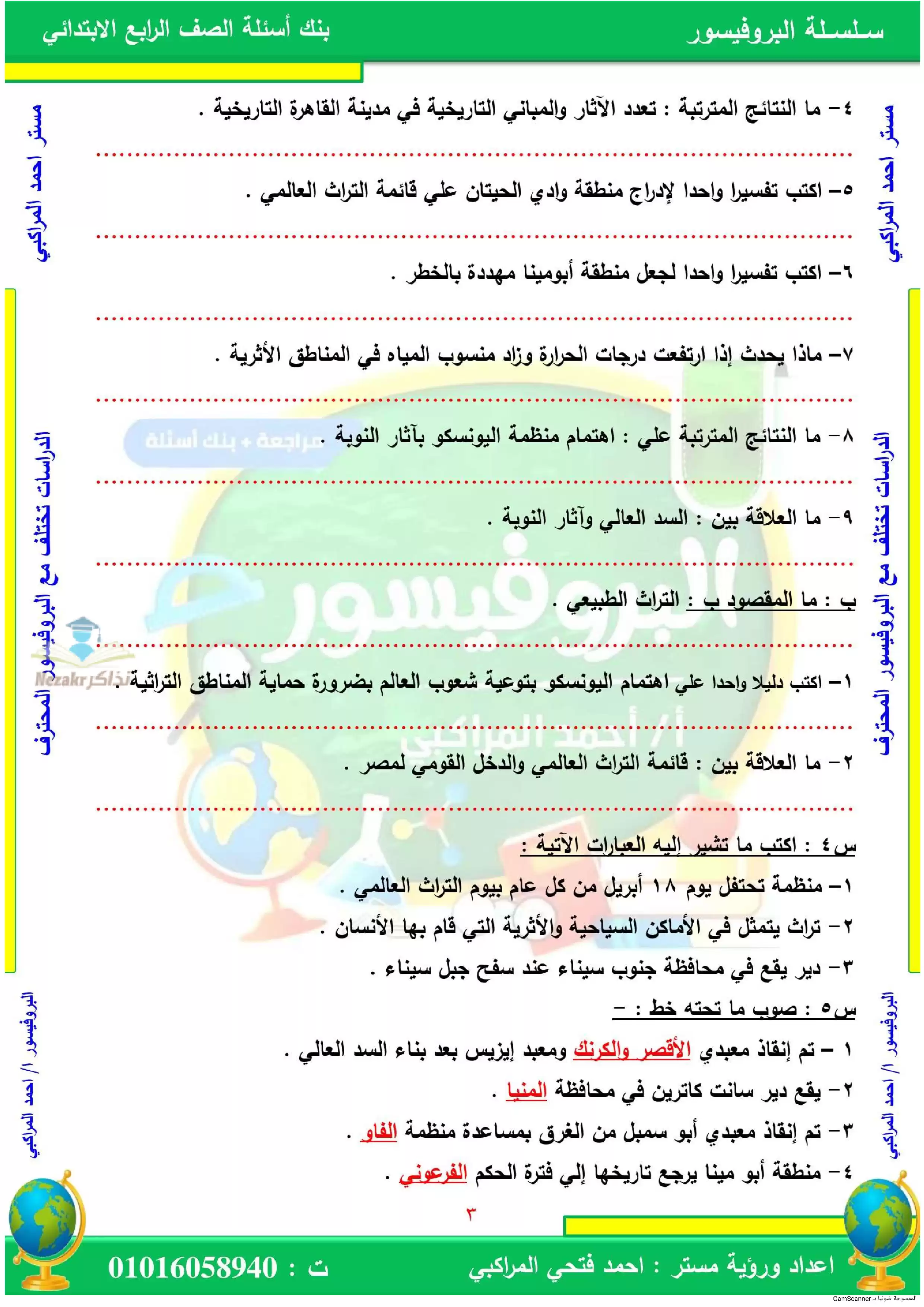 صفحة 3 من 8 صفحة من ملف: بنك أسئلة على درس المواقع التراثية في بلدنا لرابعة ابتدائي - Nezakr