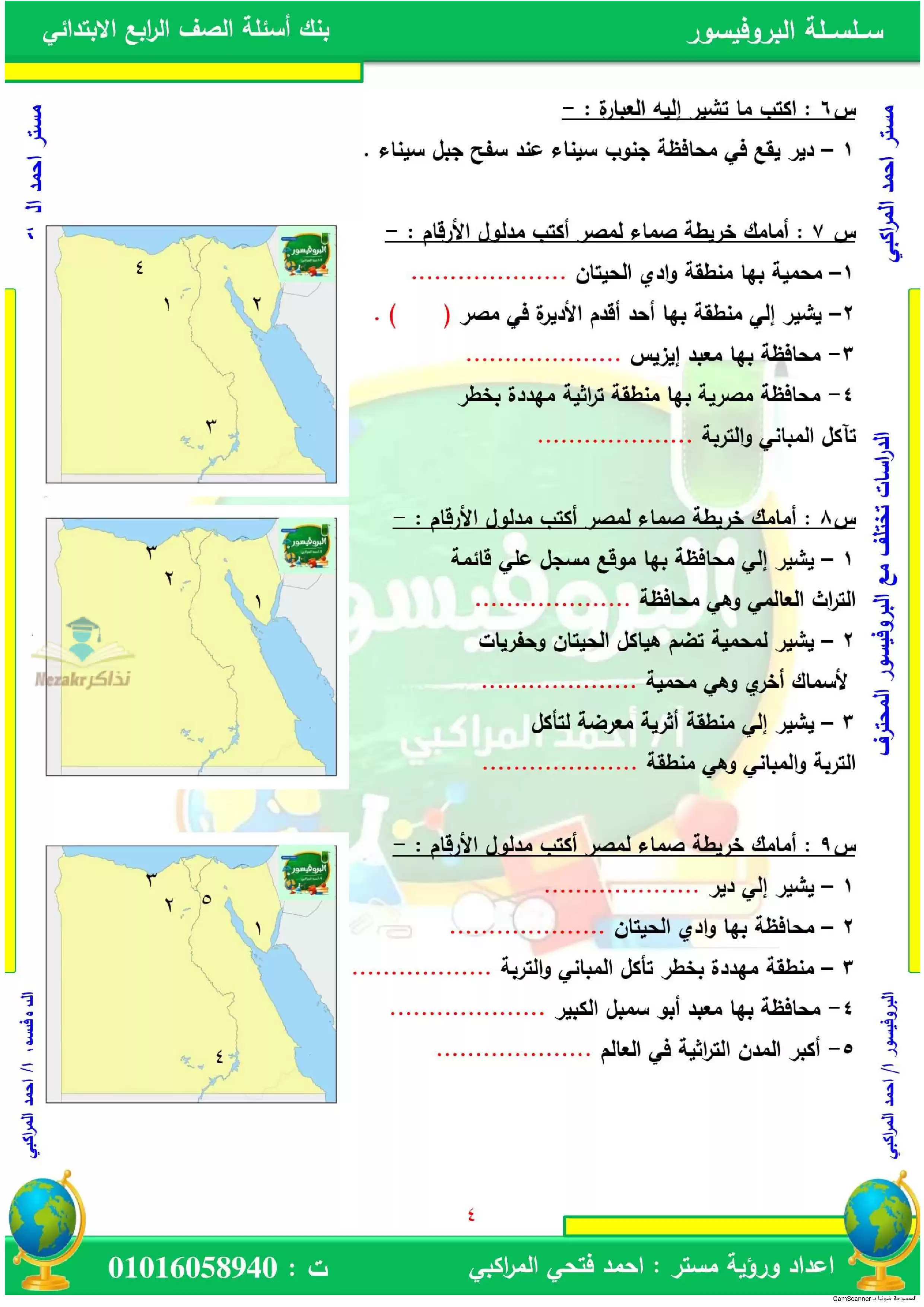 صفحة 4 من 8 صفحة من ملف: بنك أسئلة على درس المواقع التراثية في بلدنا لرابعة ابتدائي - Nezakr