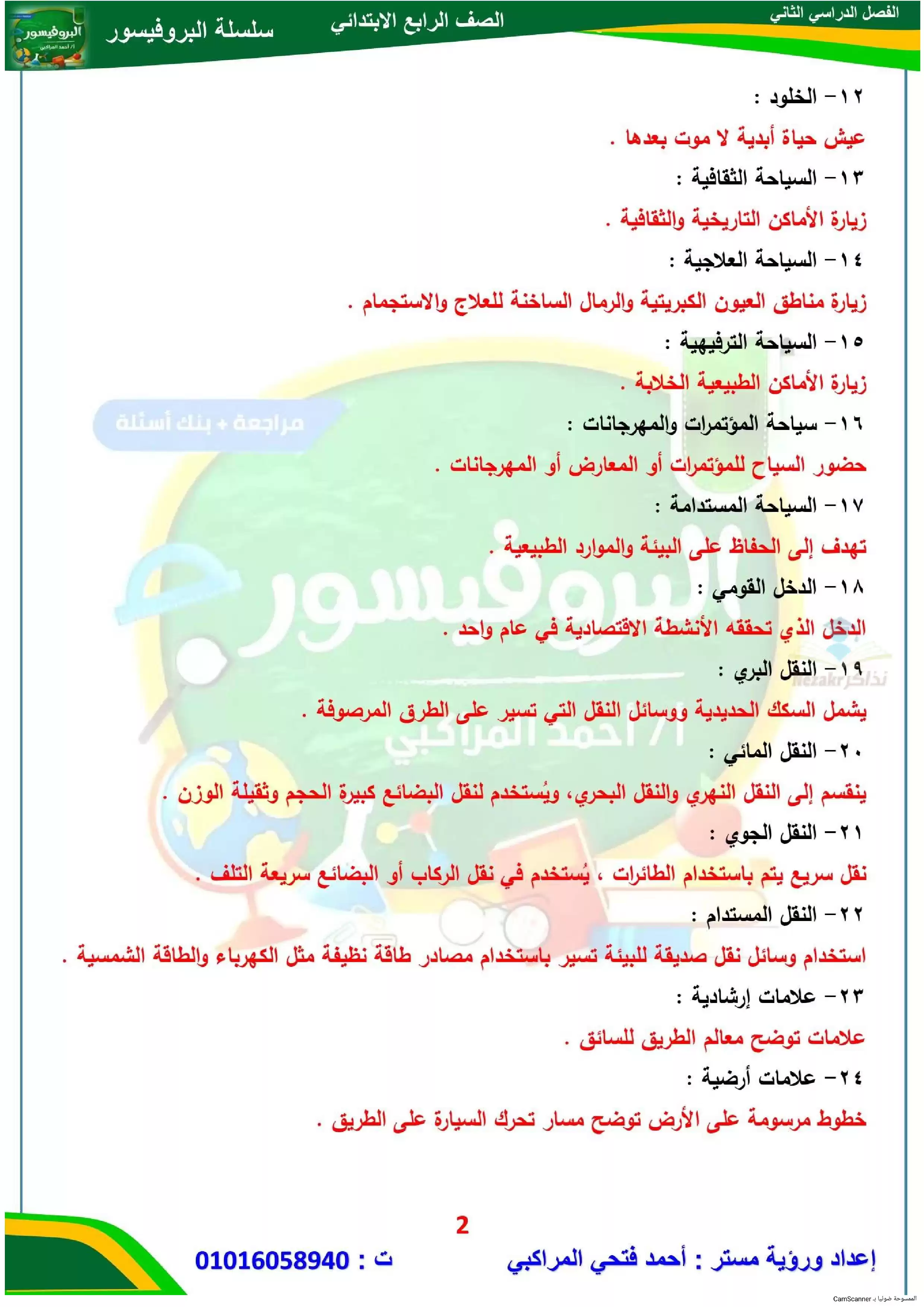 يُعتبر الملف المرفق هو أفضل مذكرة لمراجعة ليلة الامتحان دراسات اجتماعية لرابعة ابتدائي الفصل الدراسي الثاني، وتتكون المذكرة من 11 صفحة فقط والتي تحتوي على ملخص المنهج لمادة الدراسات رابعة ابتدائي في صورة سؤال وجواب، حيث يمكن للطالب أن يقوم من خلالها بالتالي:
