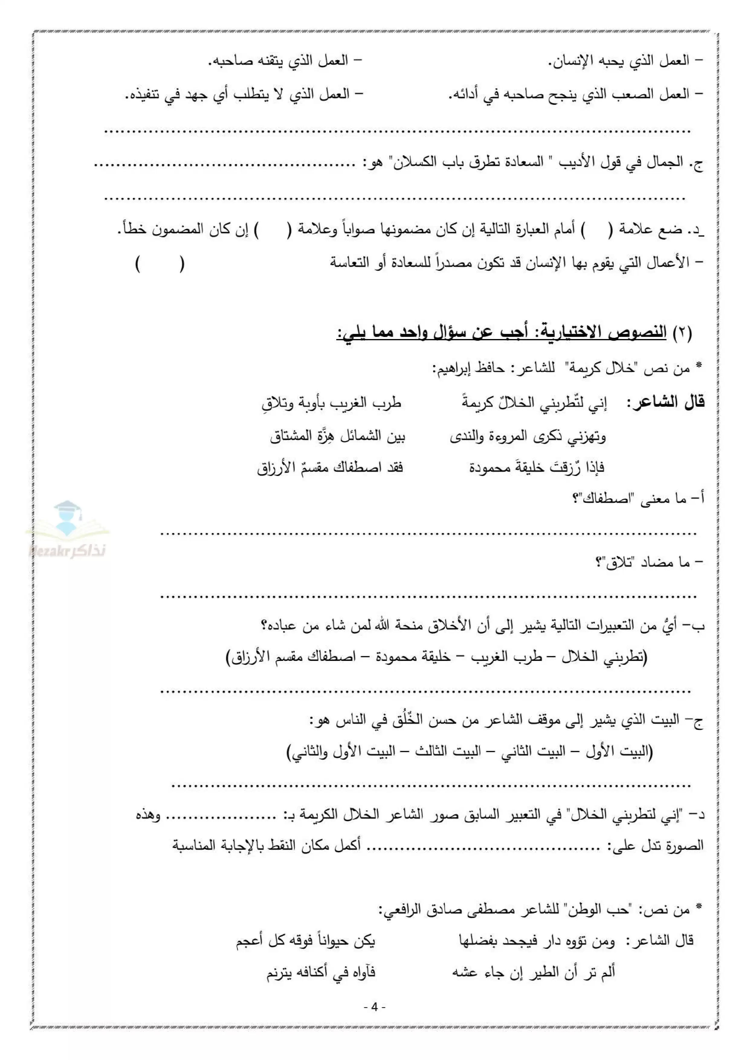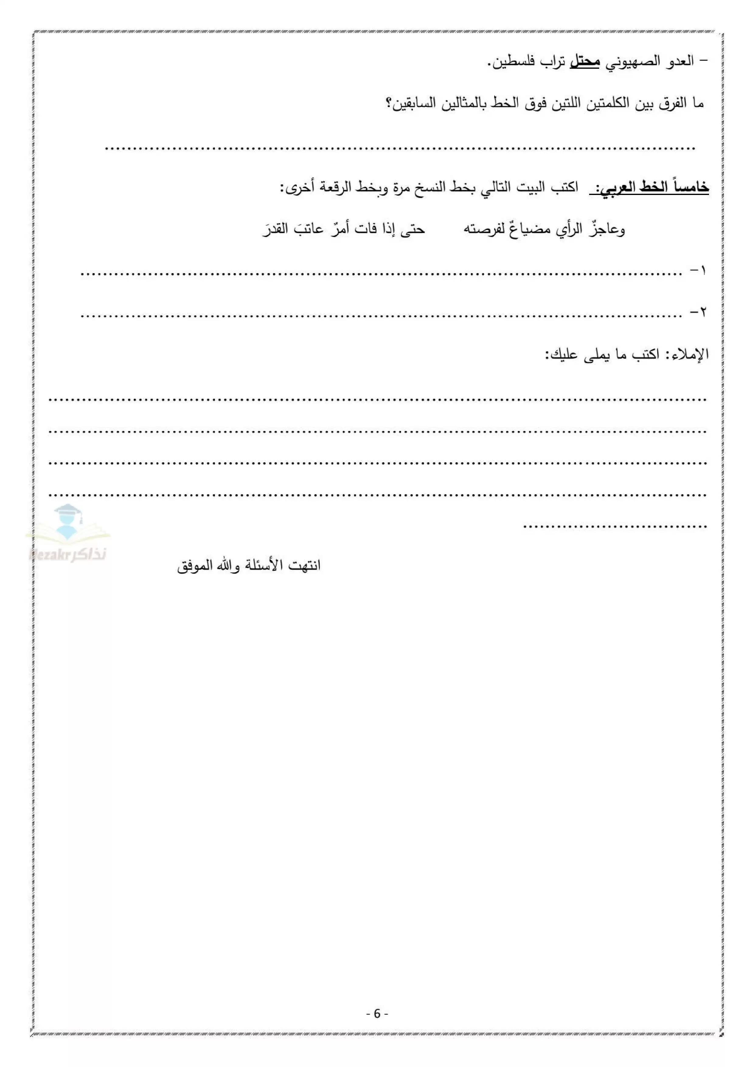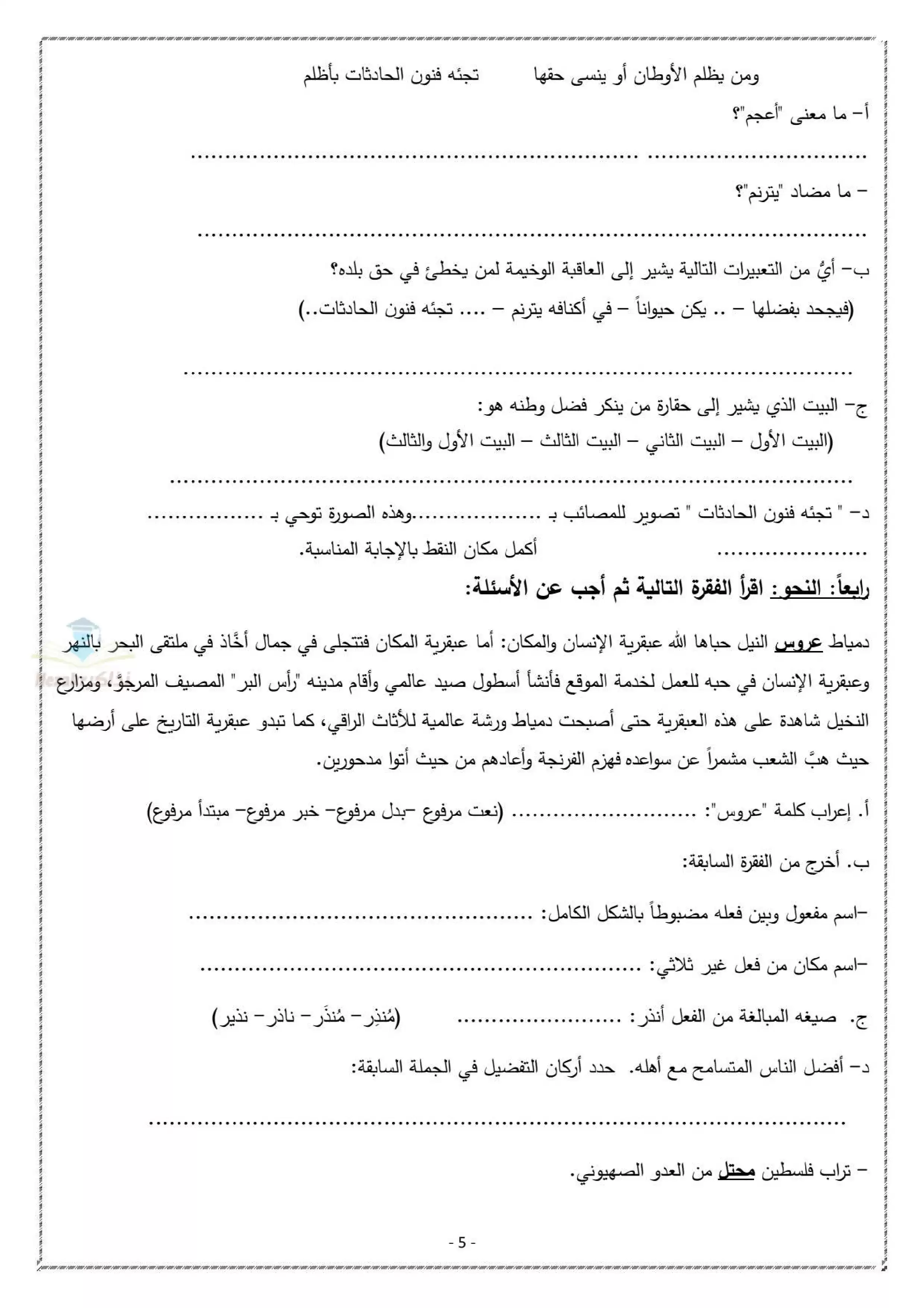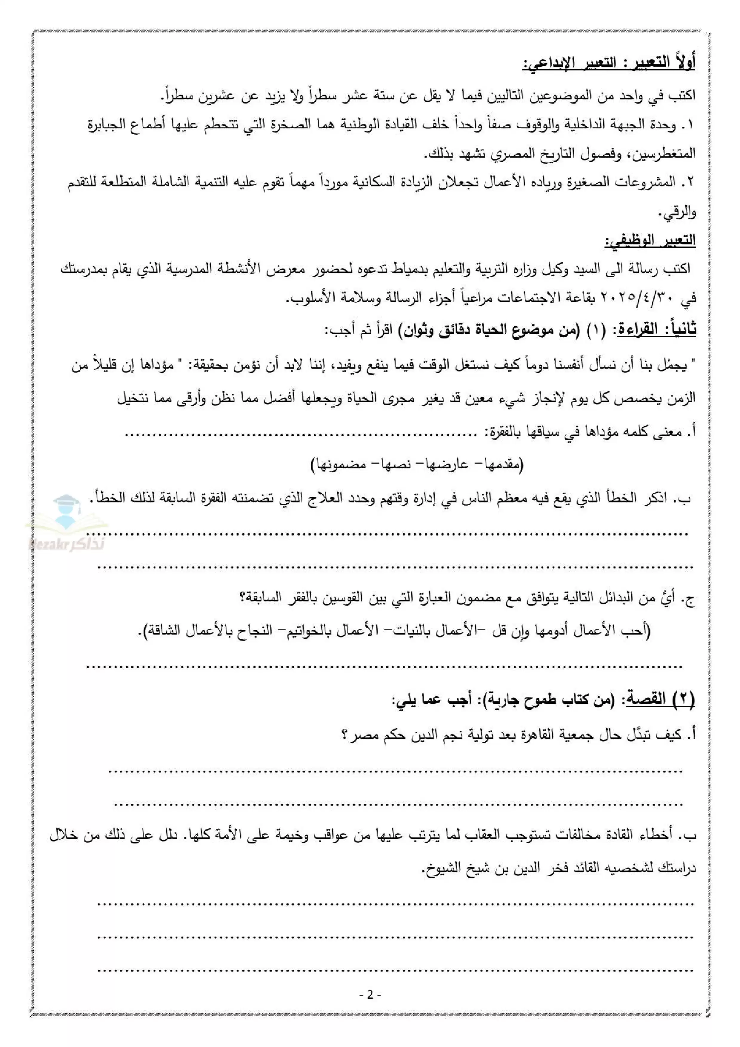 | بيانات الملف: (نموذج بوكلت عربي ثالثة اعدادي محافظة دمياط ترم ثاني 2025 - Nezakr) | |