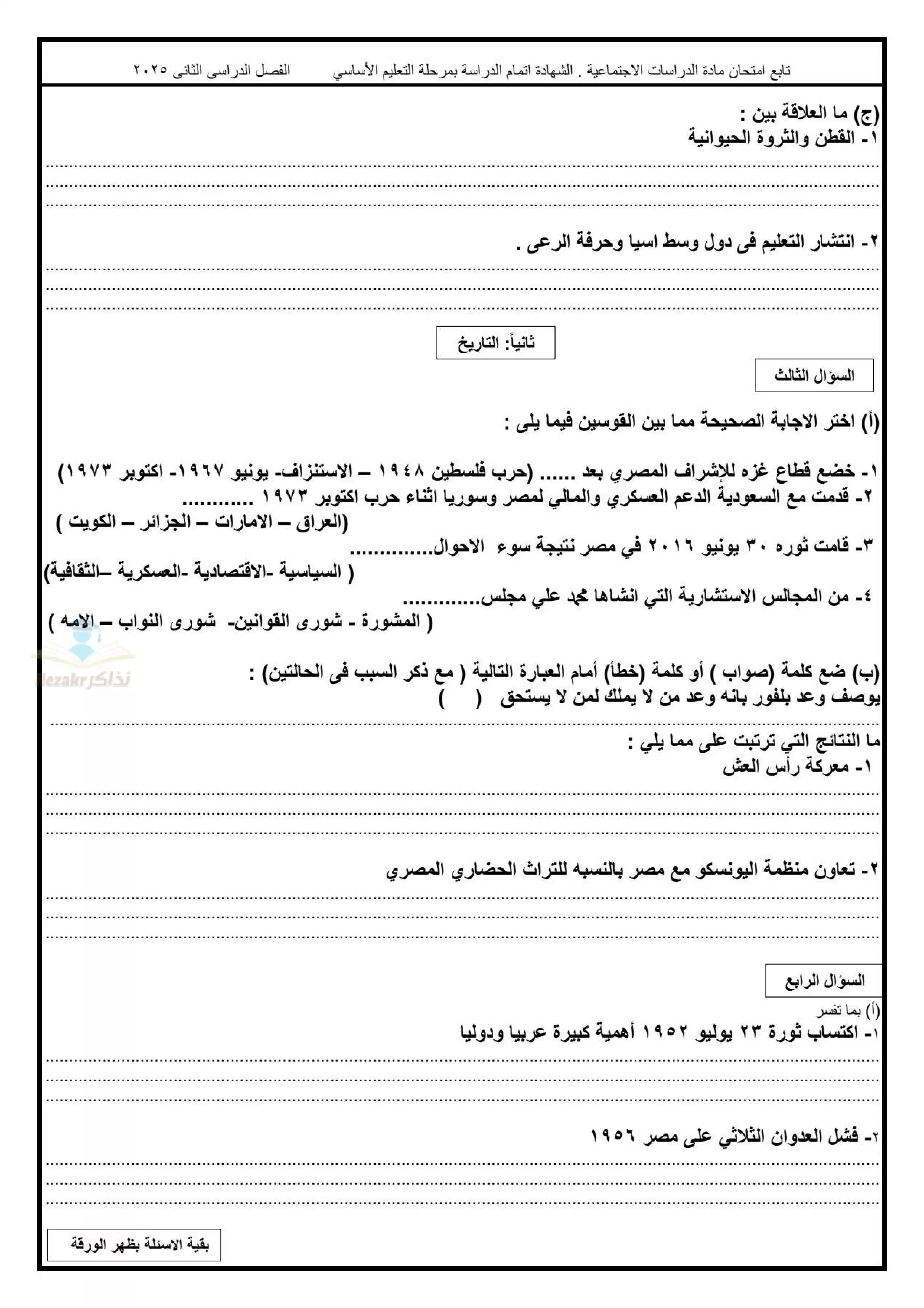 | بيانات الملف: (نموذج بوكلت دراسات ثالثة اعدادي محافظة دمياط ترم ثاني 2025 - Nezakr) | |