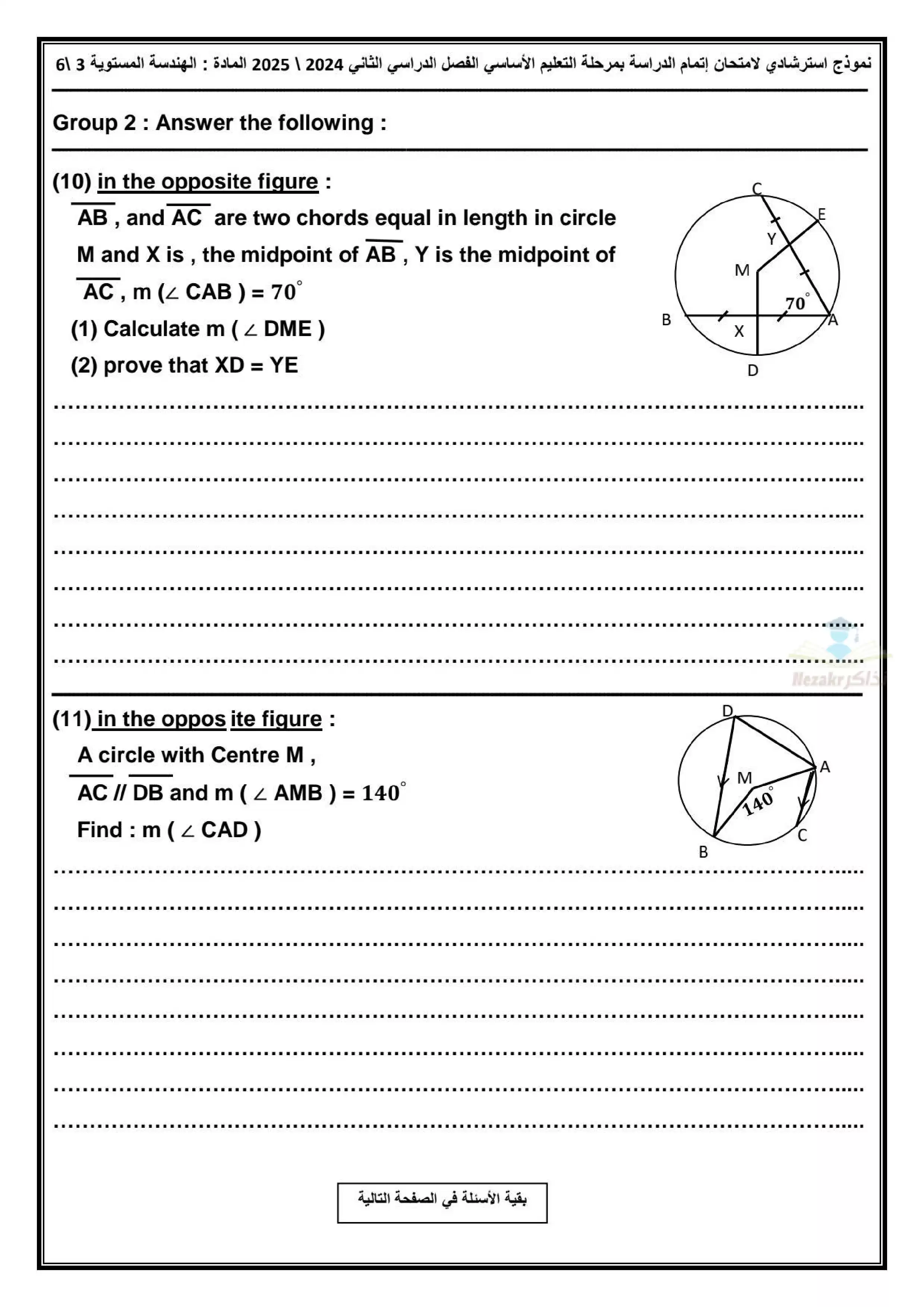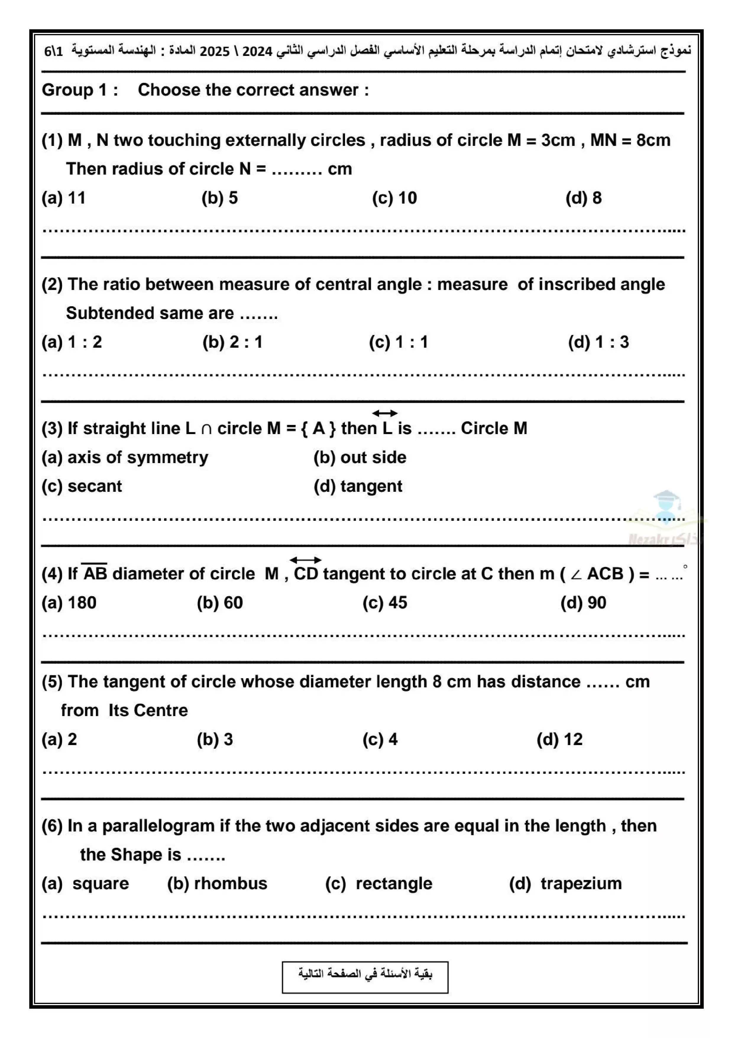 صفحة 6 من 7 صفحة من ملف: نموذج بوكلت Geometry لثالثة اعدادي محافظة دمياط ترم ثاني 2025 - Nezakr