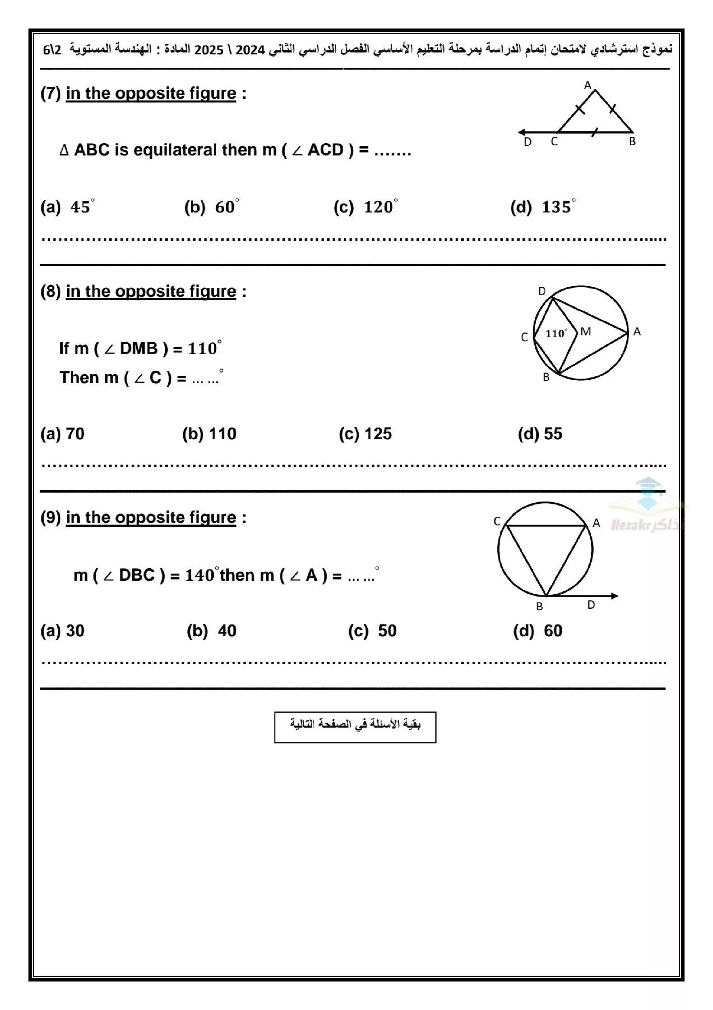 صفحة 2 من 7 صفحة من ملف: نموذج بوكلت Geometry لثالثة اعدادي محافظة دمياط ترم ثاني 2025 - Nezakr