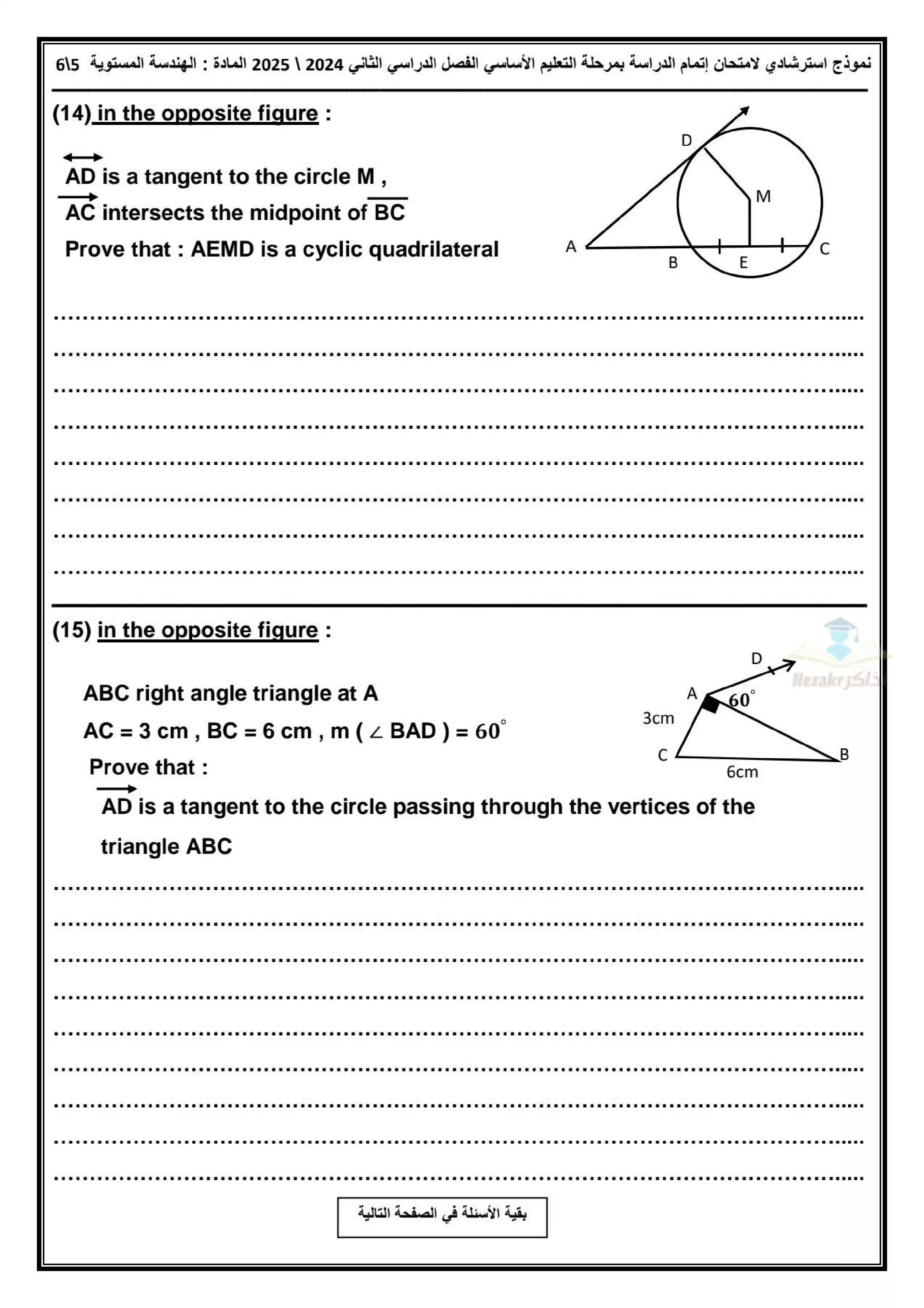 صفحة 3 من 7 صفحة من ملف: نموذج بوكلت Geometry لثالثة اعدادي محافظة دمياط ترم ثاني 2025 - Nezakr