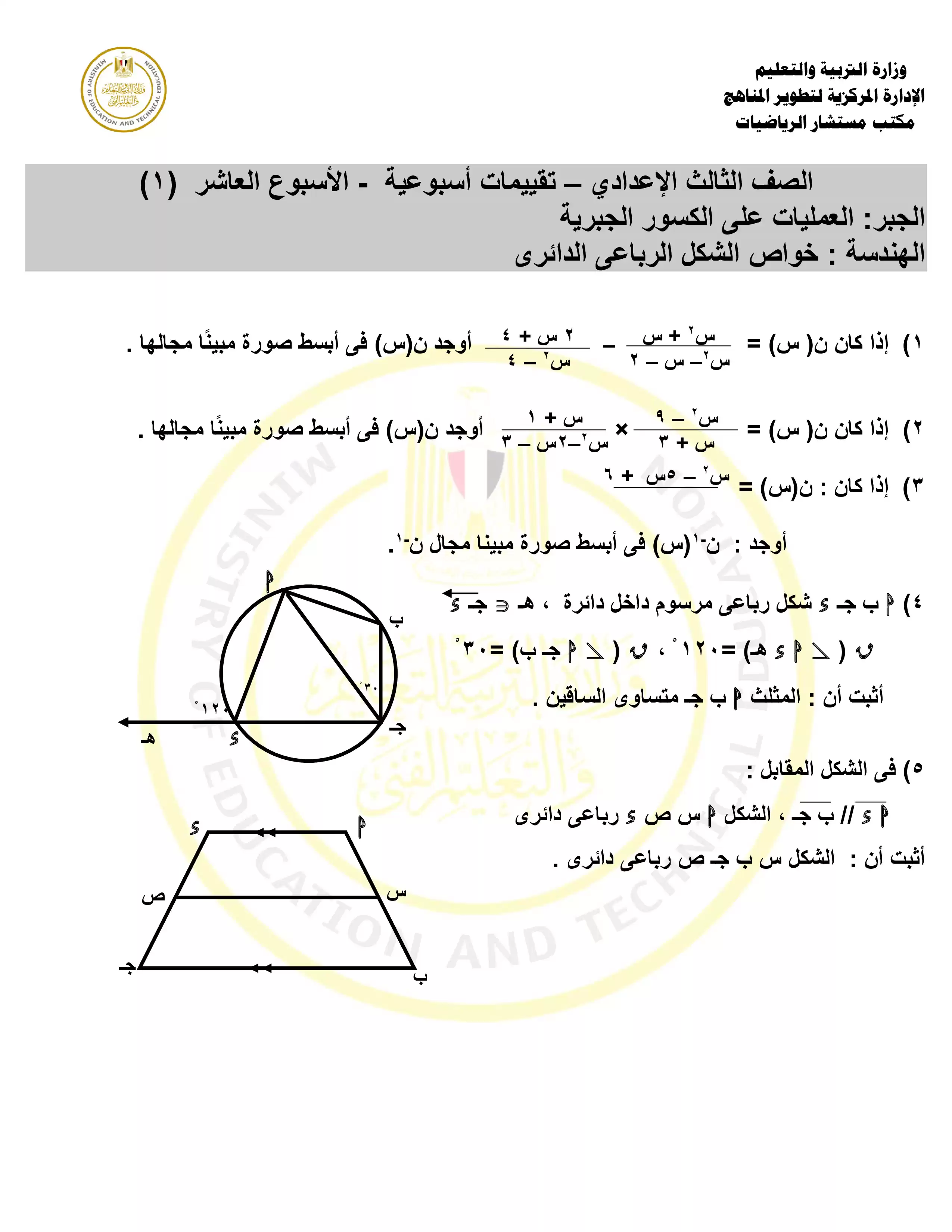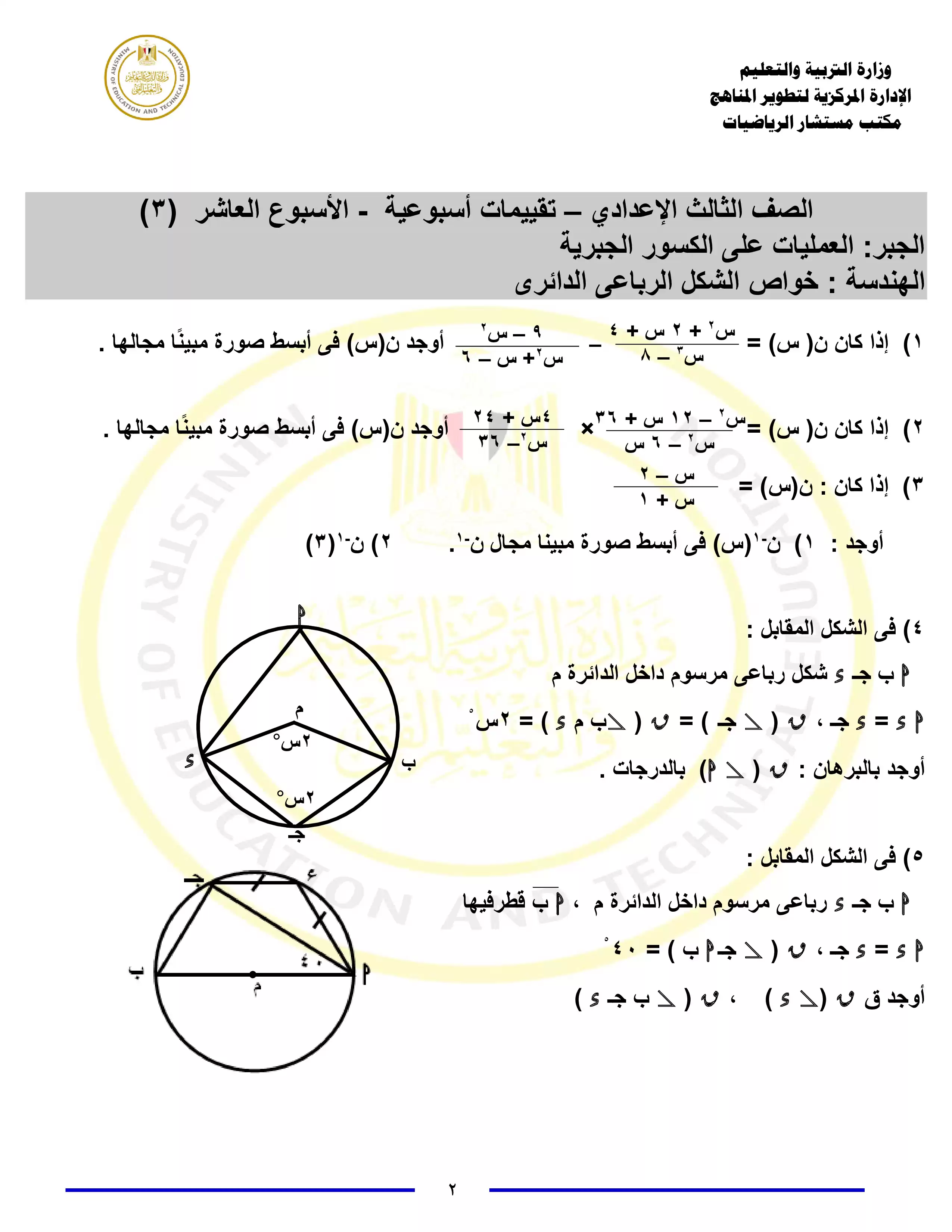 | بيانات الملف: (التقييمات الخاصة بالأسبوع العاشر في الرياضيات للصف الثالث الاعدادي الترم الثاني 2025 - Nezakr) | |