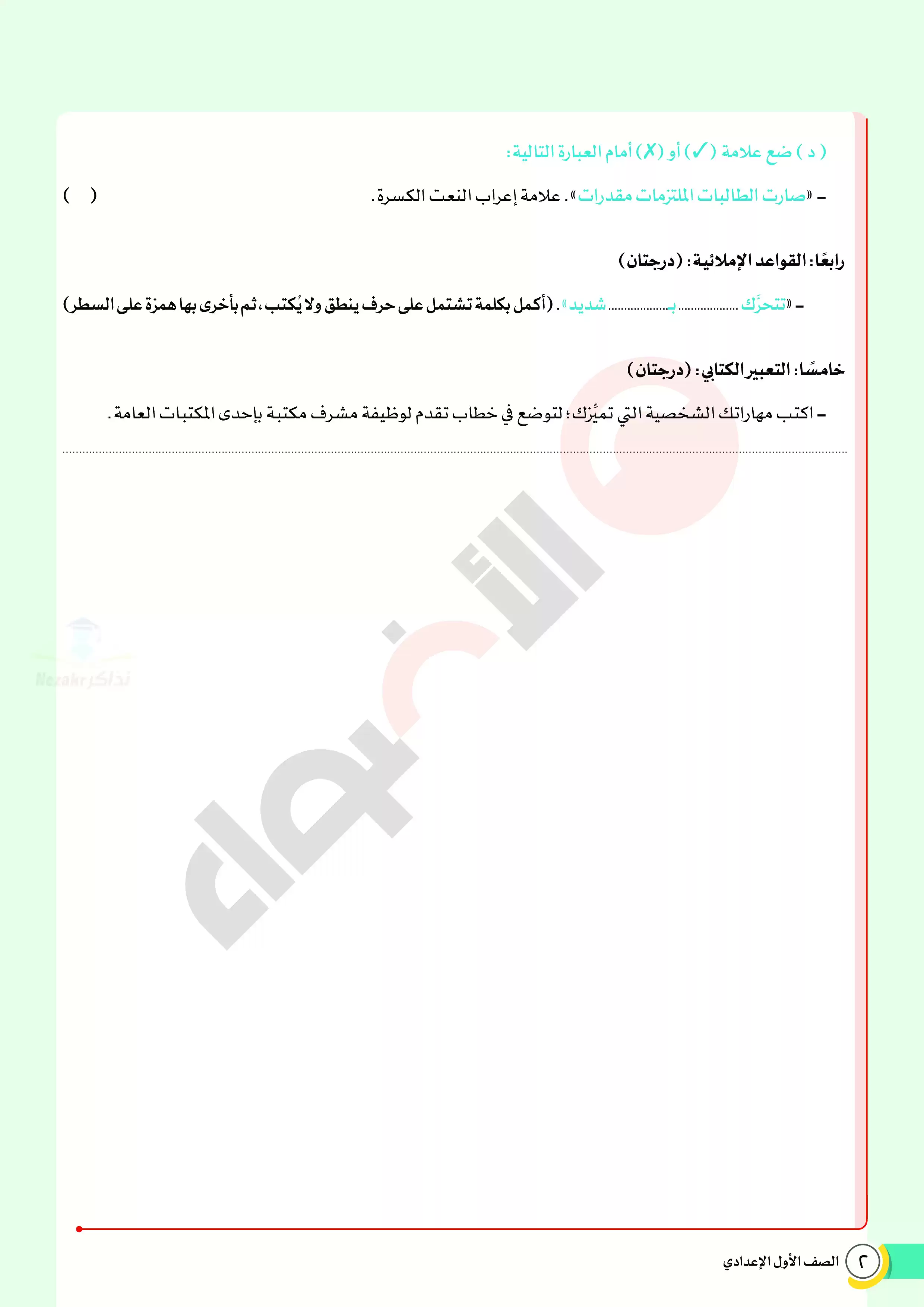 صفحة 2 من 14 صفحة من ملف: اختبارات الأضواء الاسترشادية في العربي للصف الاول الاعدادي مقرر أبريل 2025 بالاجابات - Nezakr