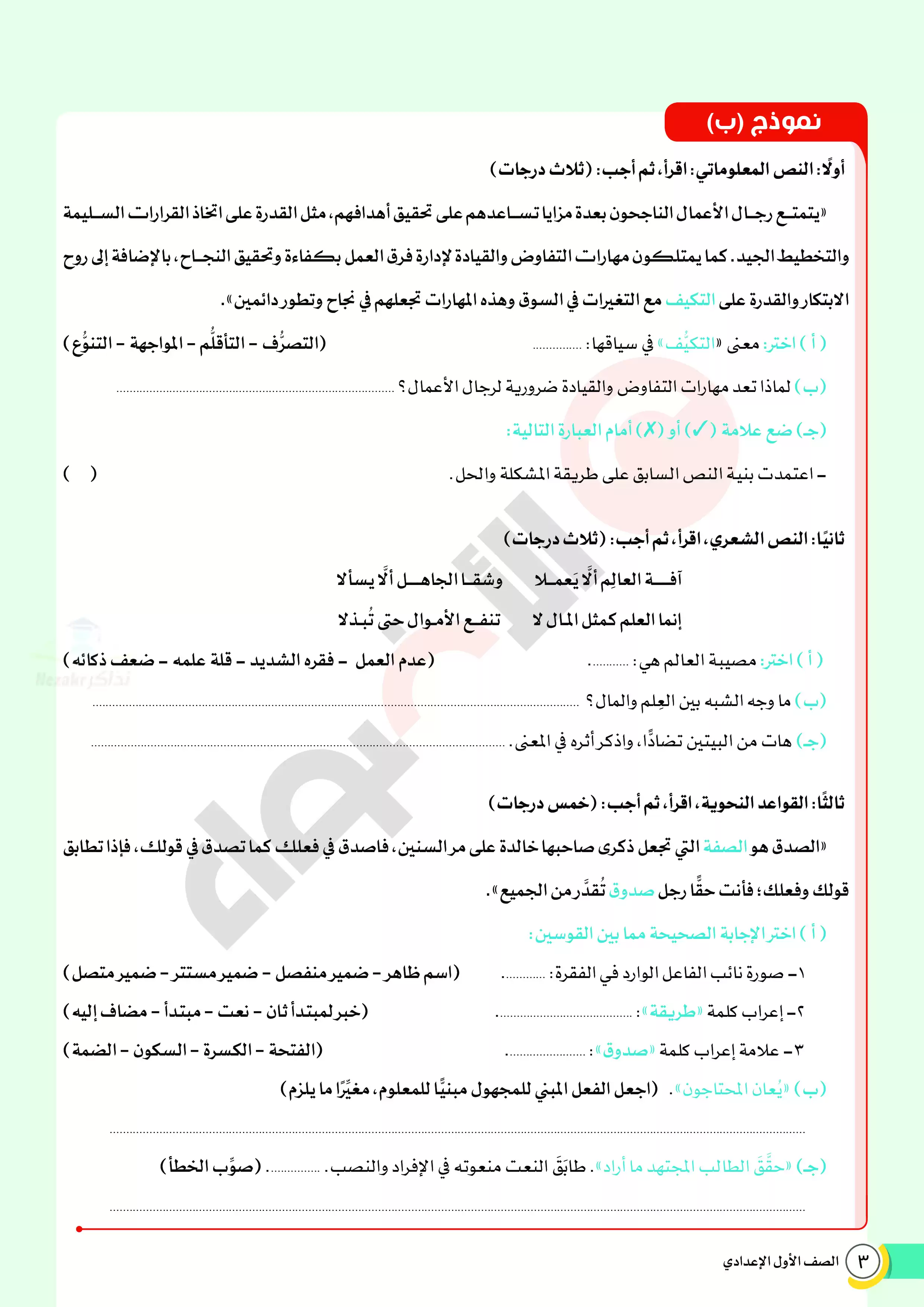 صفحة 3 من 14 صفحة من ملف: اختبارات الأضواء الاسترشادية في العربي للصف الاول الاعدادي مقرر أبريل 2025 بالاجابات - Nezakr