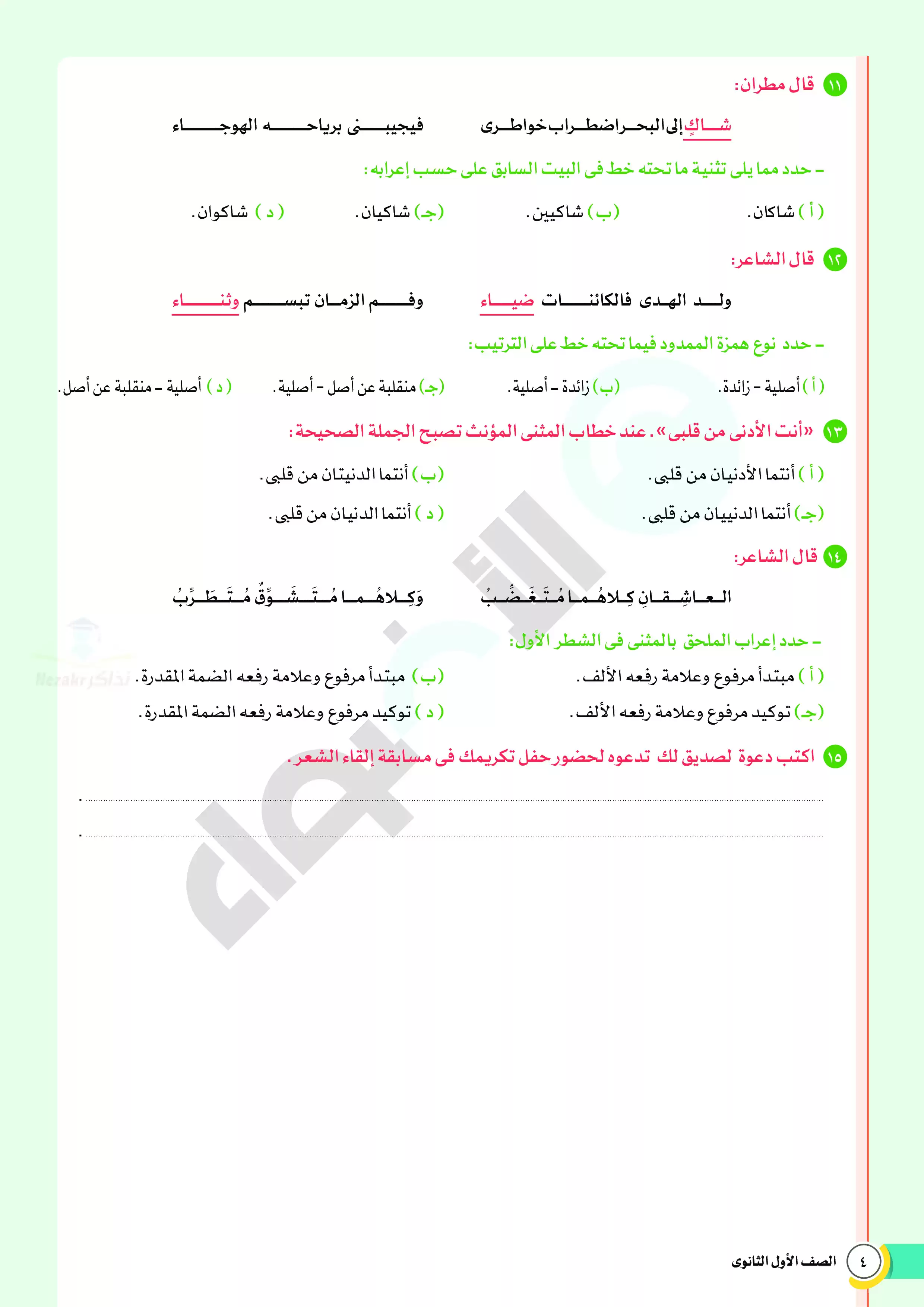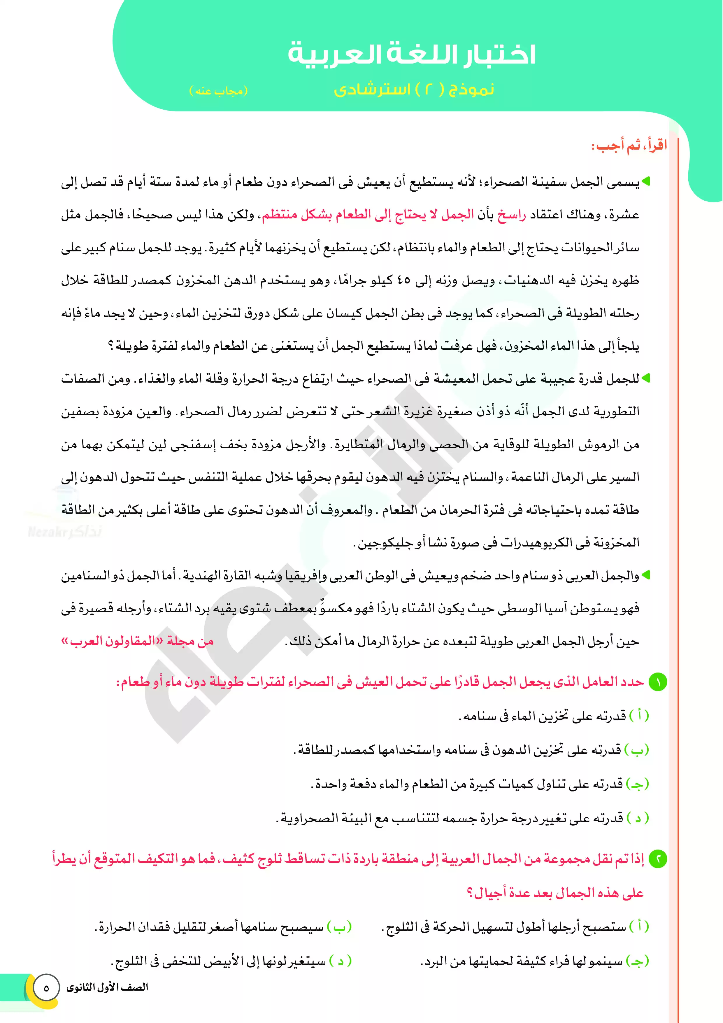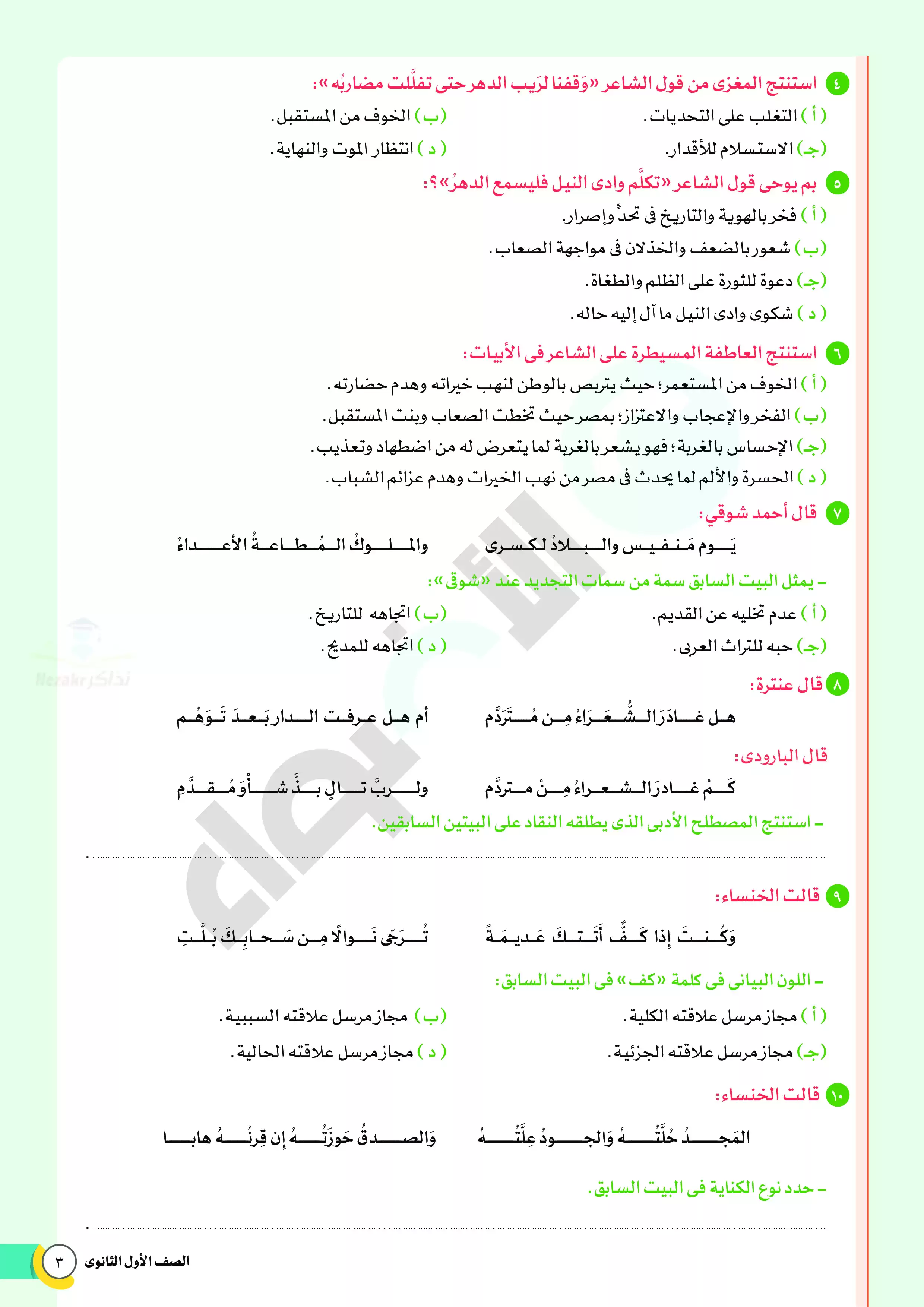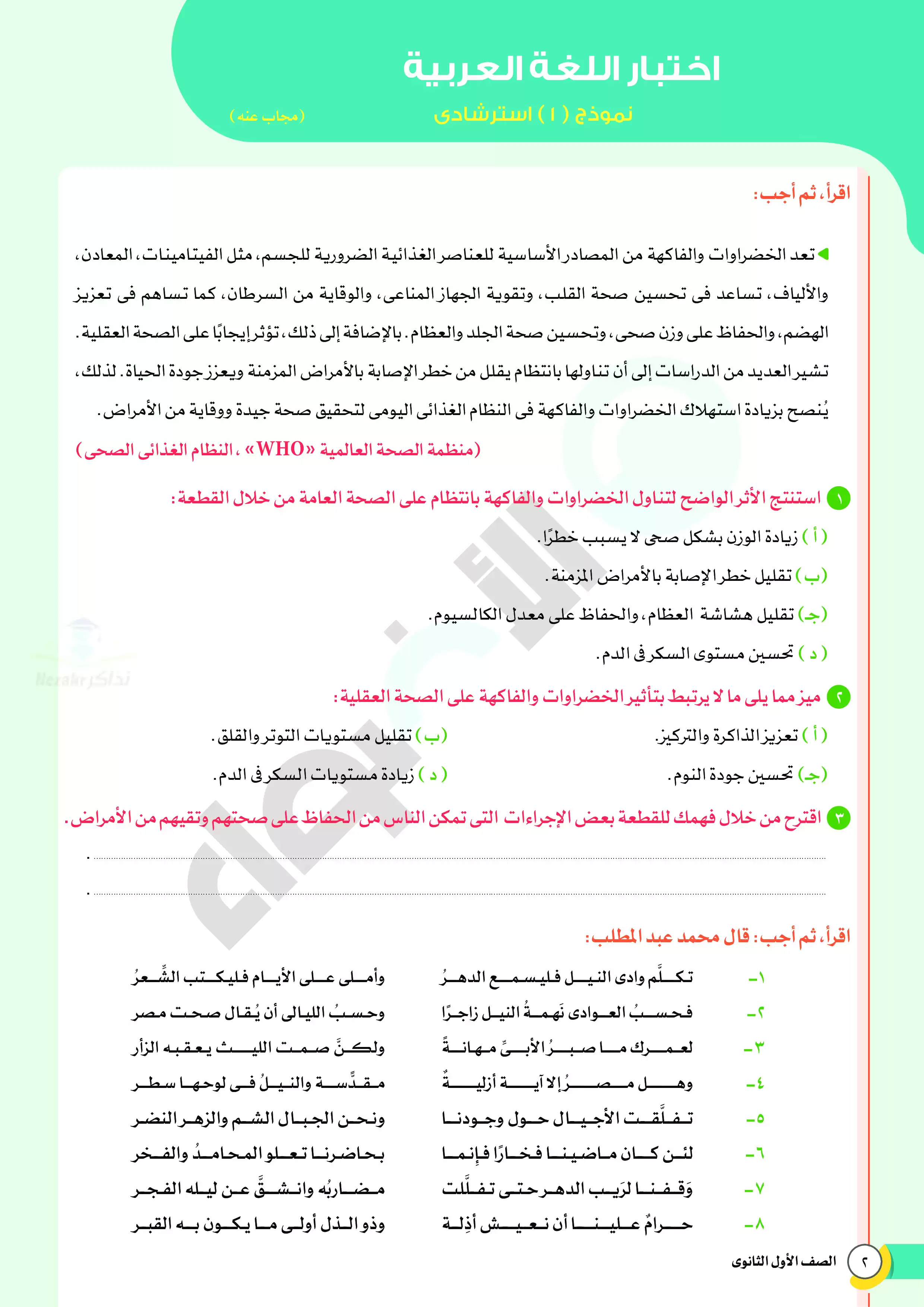 | بيانات الملف: (اختبارات الأضواء الاسترشادية في العربي للصف الاول الثانوي مقرر أبريل 2025 بالاجابات - Nezakr) | |