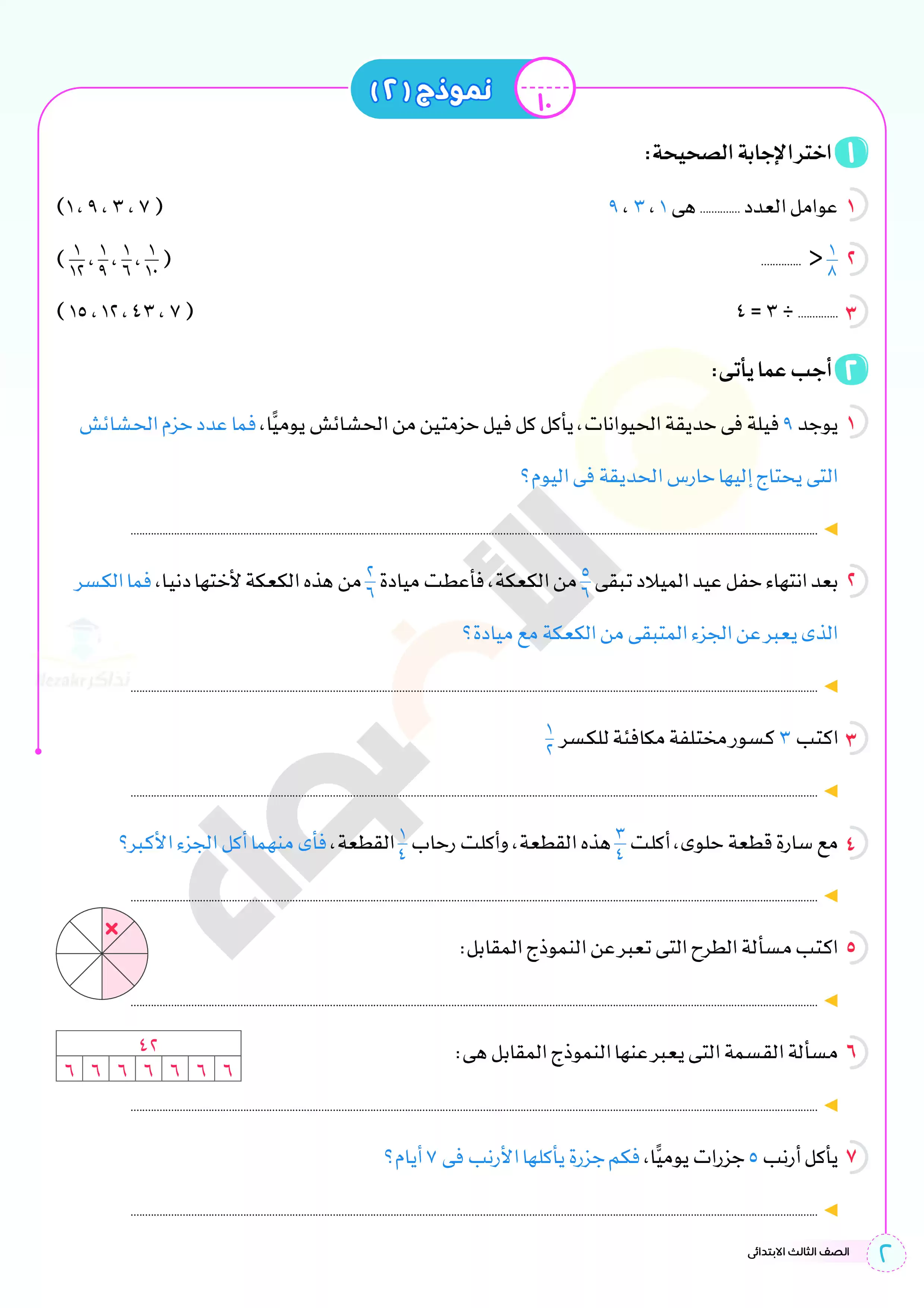صفحة 2 من 12 صفحة من ملف: اختبارات الأضواء الاسترشادية في الحساب للصف الثالث الابتدائي مقرر أبريل 2025 بالاجابات - Nezakr