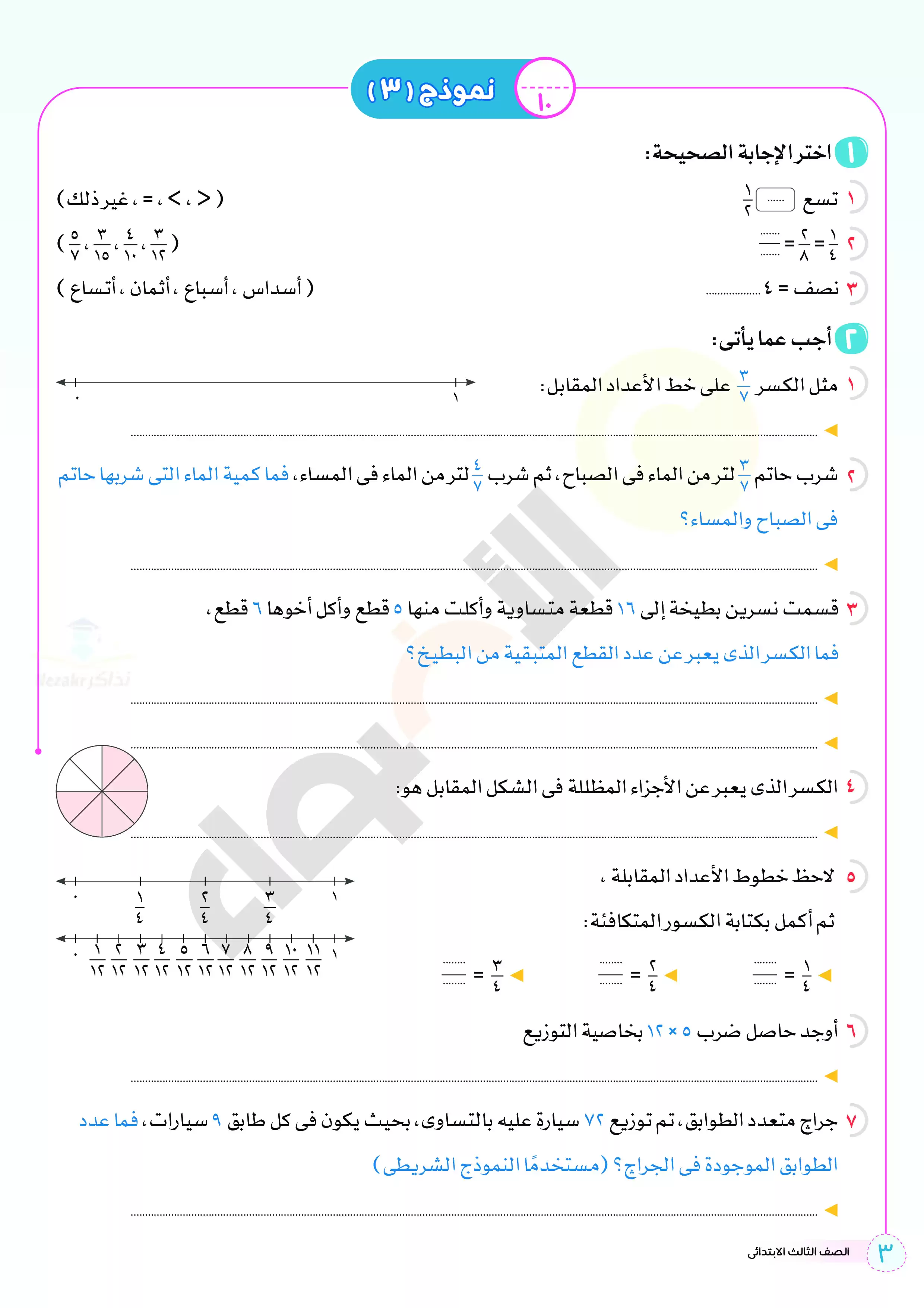 صفحة 3 من 12 صفحة من ملف: اختبارات الأضواء الاسترشادية في الحساب للصف الثالث الابتدائي مقرر أبريل 2025 بالاجابات - Nezakr