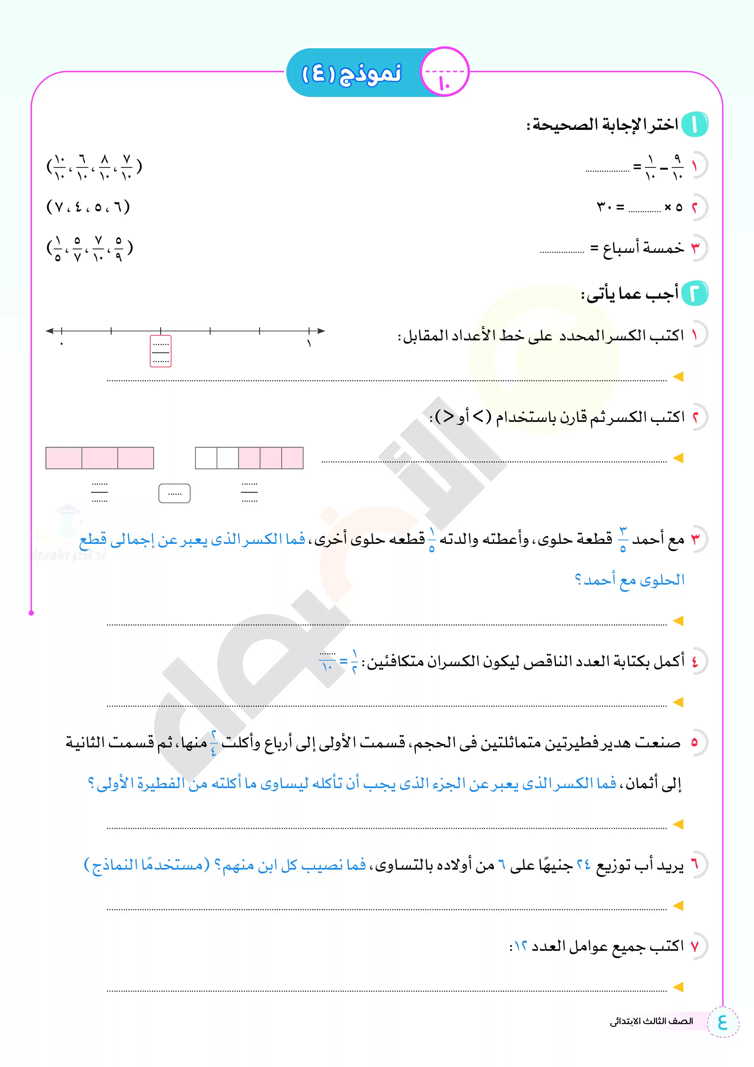 صفحة 4 من 12 صفحة من ملف: اختبارات الأضواء الاسترشادية في الحساب للصف الثالث الابتدائي مقرر أبريل 2025 بالاجابات - Nezakr