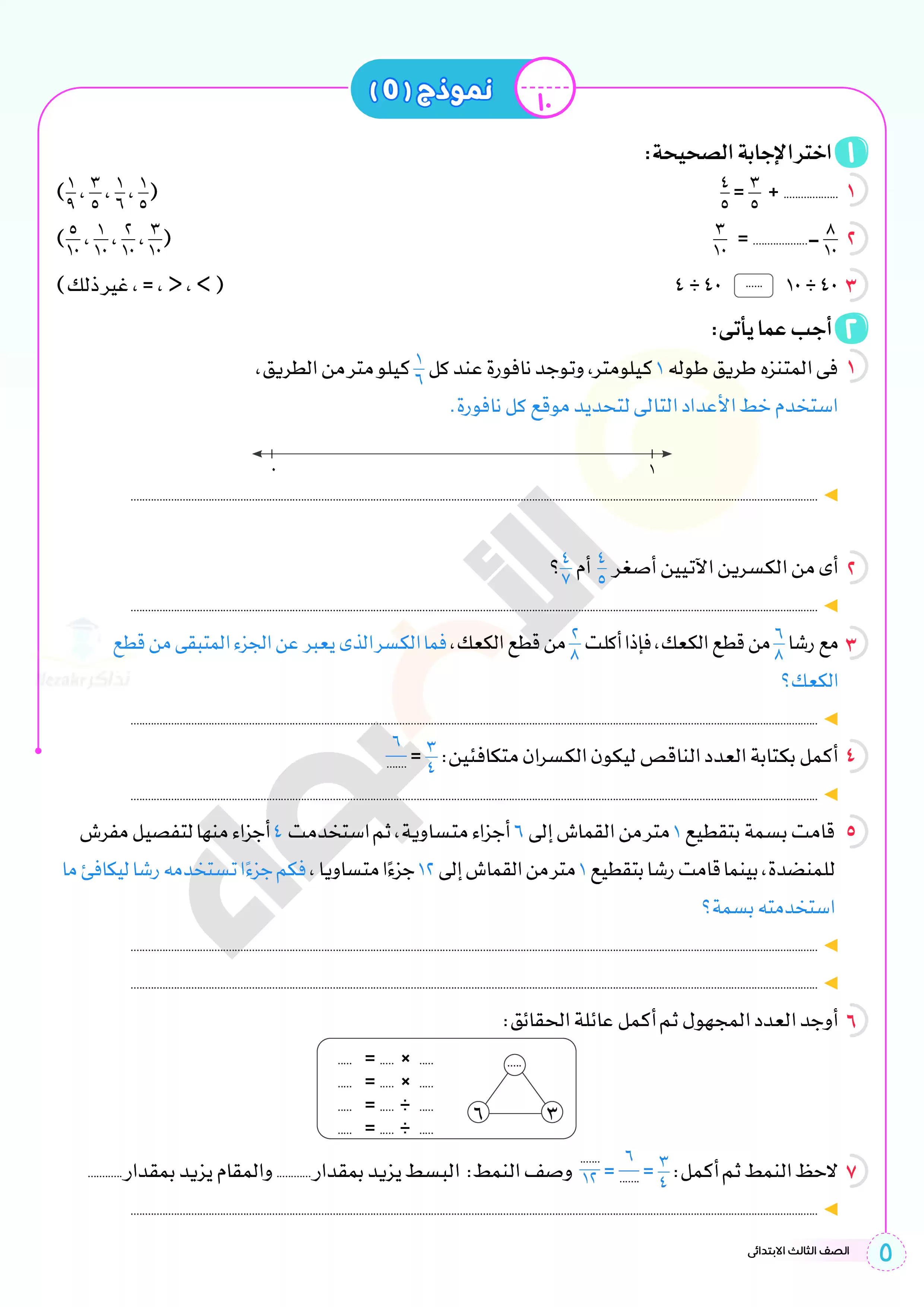 صفحة 5 من 12 صفحة من ملف: اختبارات الأضواء الاسترشادية في الحساب للصف الثالث الابتدائي مقرر أبريل 2025 بالاجابات - Nezakr