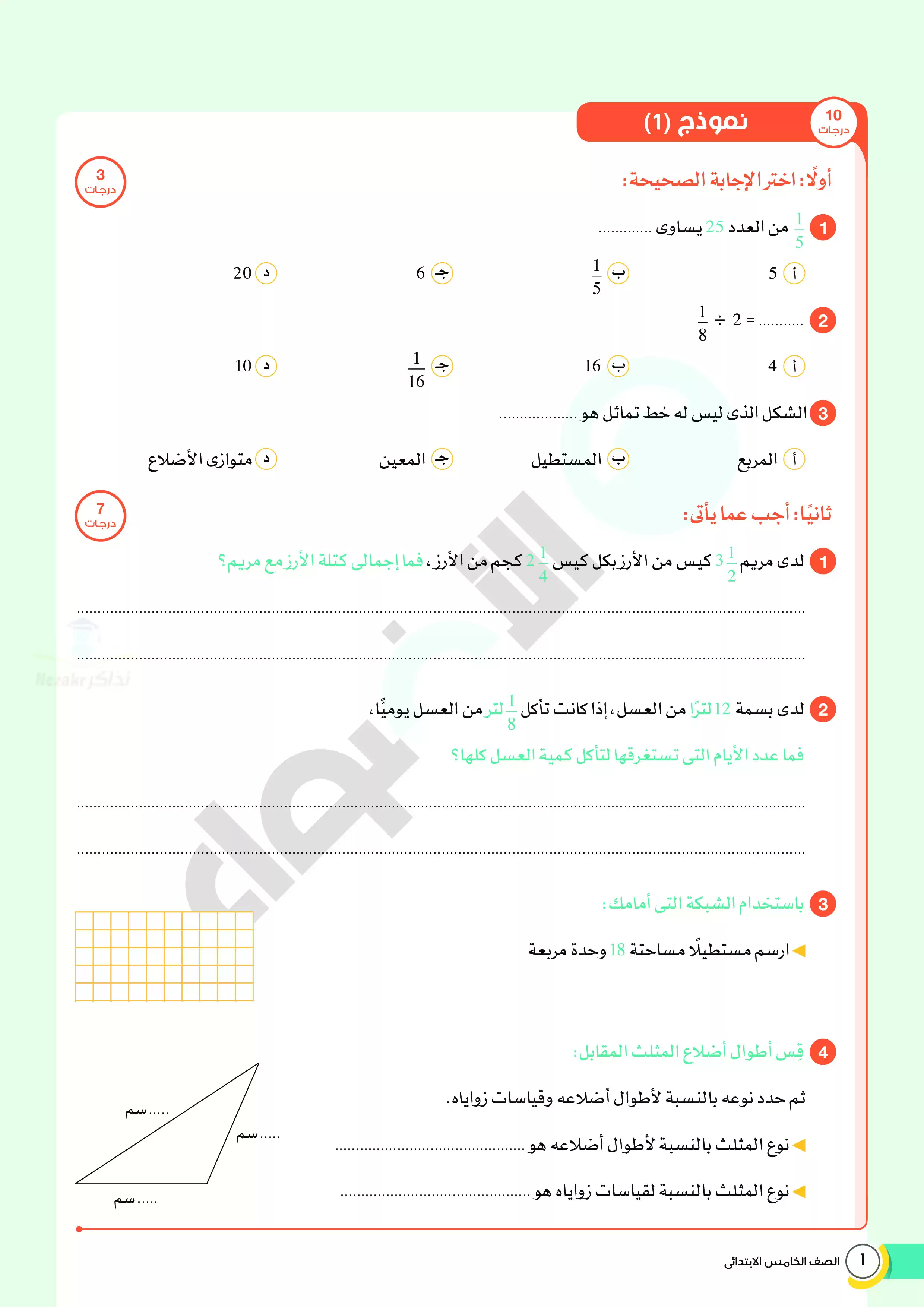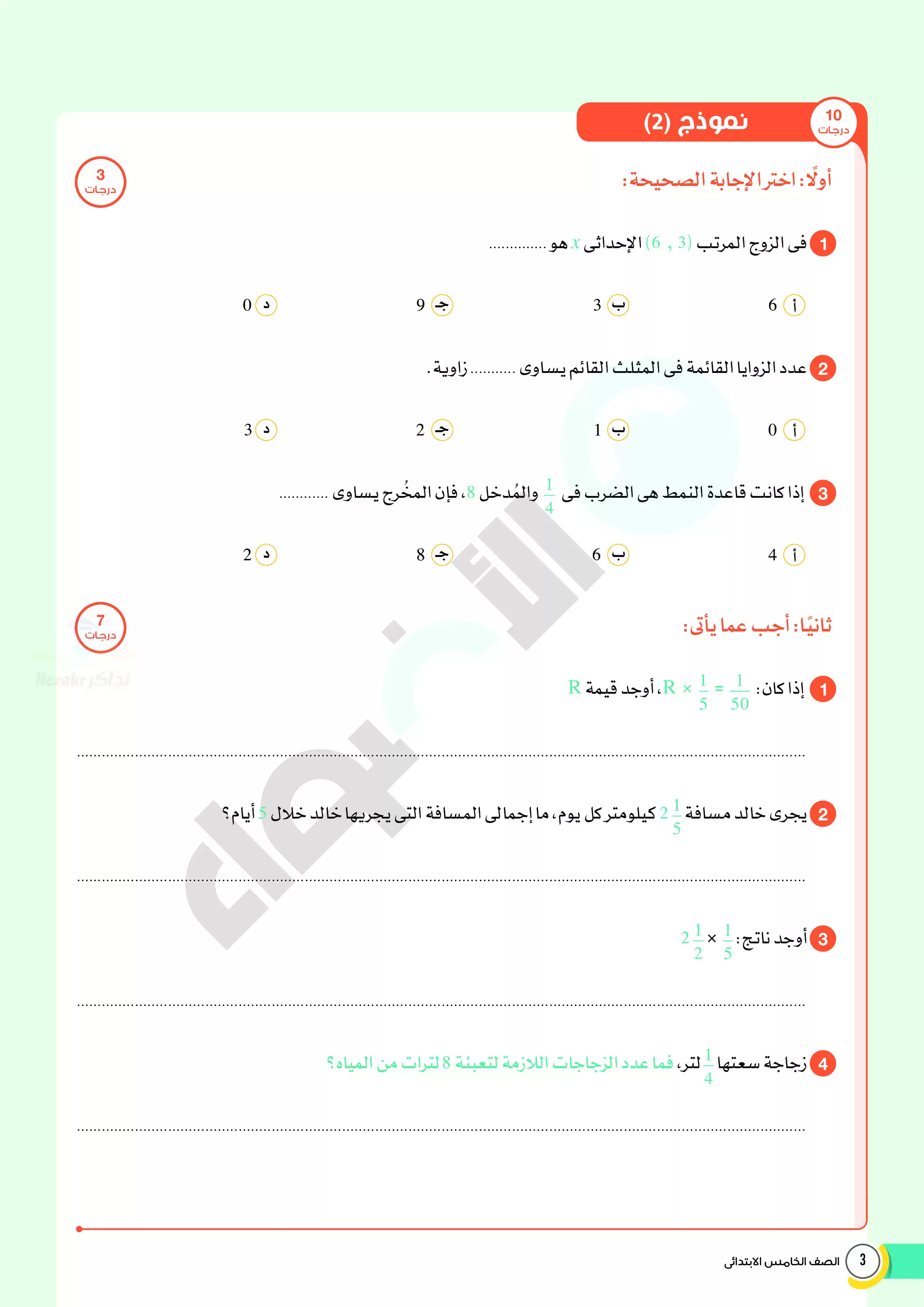 الصف الخامس الإبتدائي > الرياضيات > اختبارات الأضواء الاسترشادية في الرياضيات لخامسة ابتدائي على مقرر شهر ابريل 2025 بصيغة PDF بالاجابات