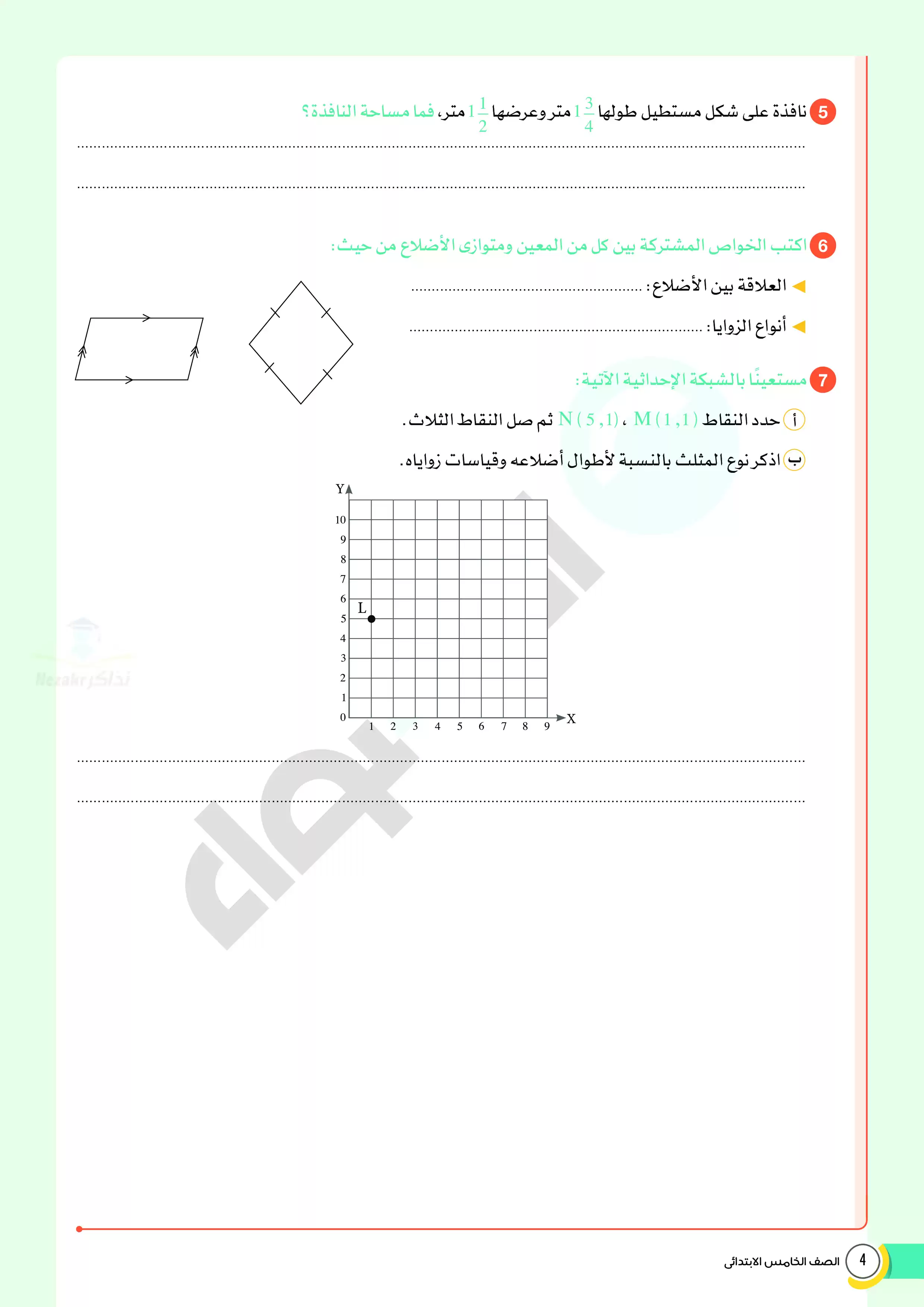 صفحة 4 من 14 صفحة من ملف: اختبارات الأضواء الاسترشادية في الحساب للصف الخامس الابتدائي مقرر أبريل 2025 بالاجابات - Nezakr