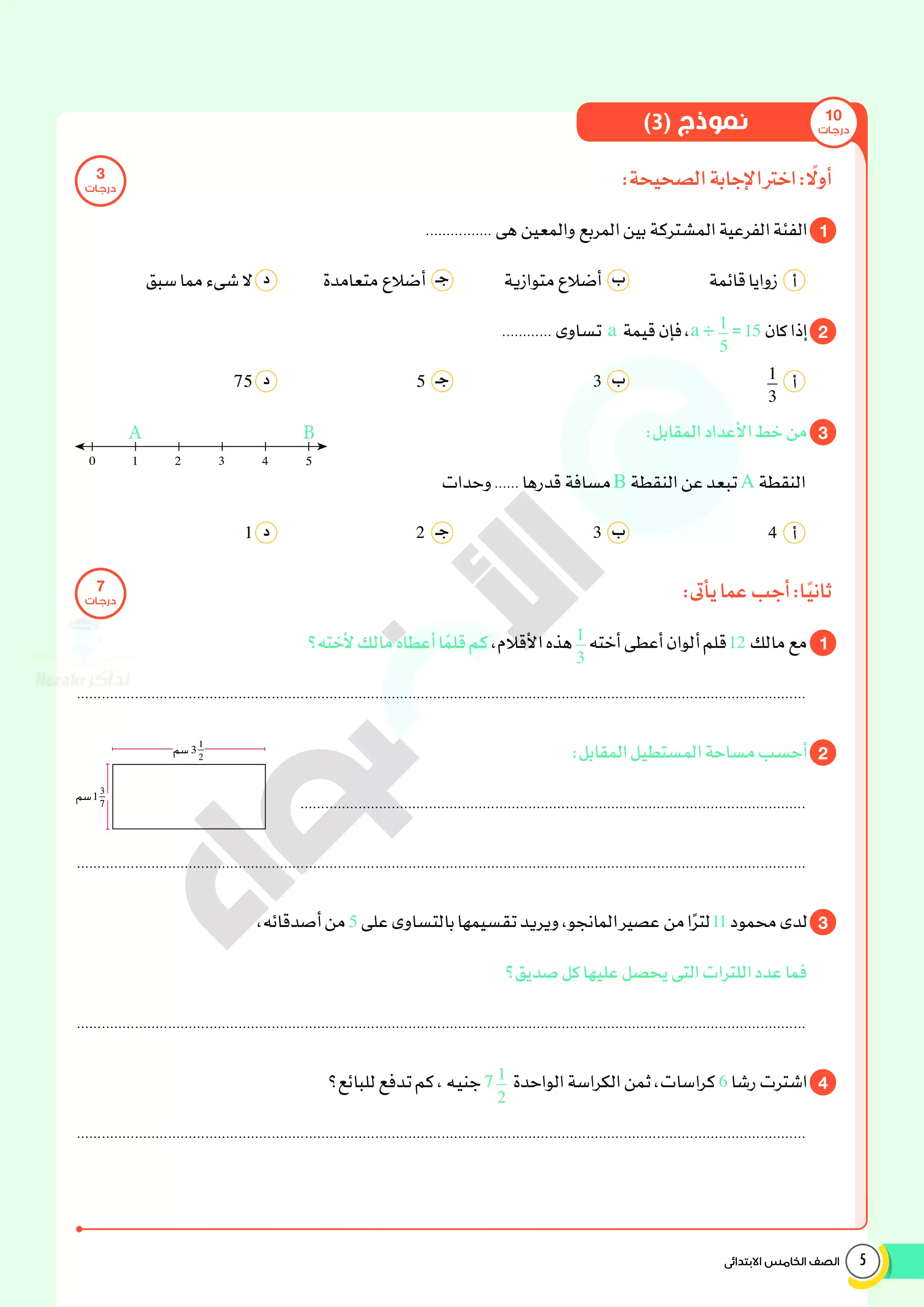 صفحة 3 من 14 صفحة من ملف: اختبارات الأضواء الاسترشادية في الحساب للصف الخامس الابتدائي مقرر أبريل 2025 بالاجابات - Nezakr
