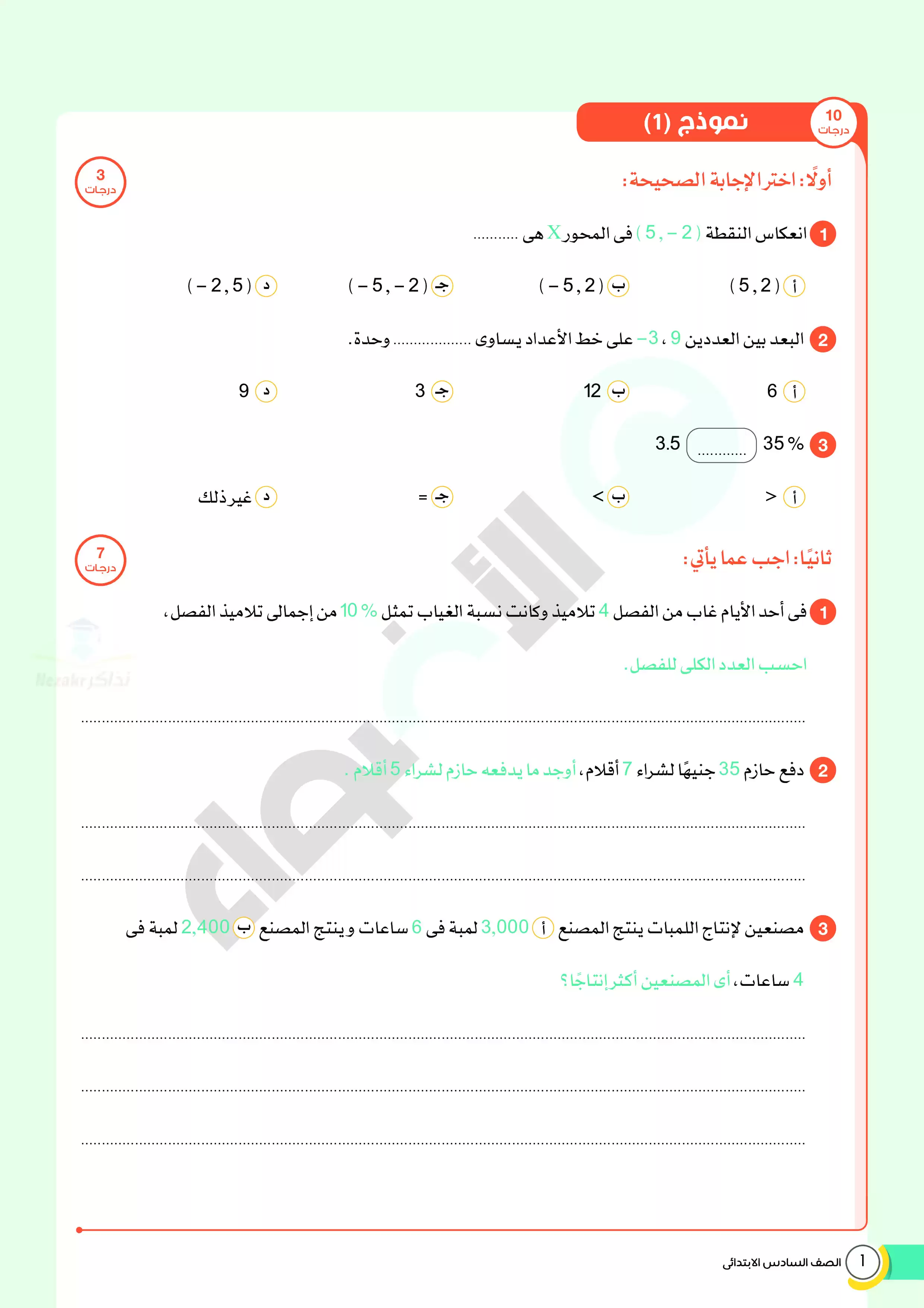 الصف السادس الإبتدائي > الرياضيات > اختبارات الأضواء الاسترشادية في الرياضيات لسادسه ابتدائي على مقرر شهر ابريل 2025 بصيغة PDF بالاجابات