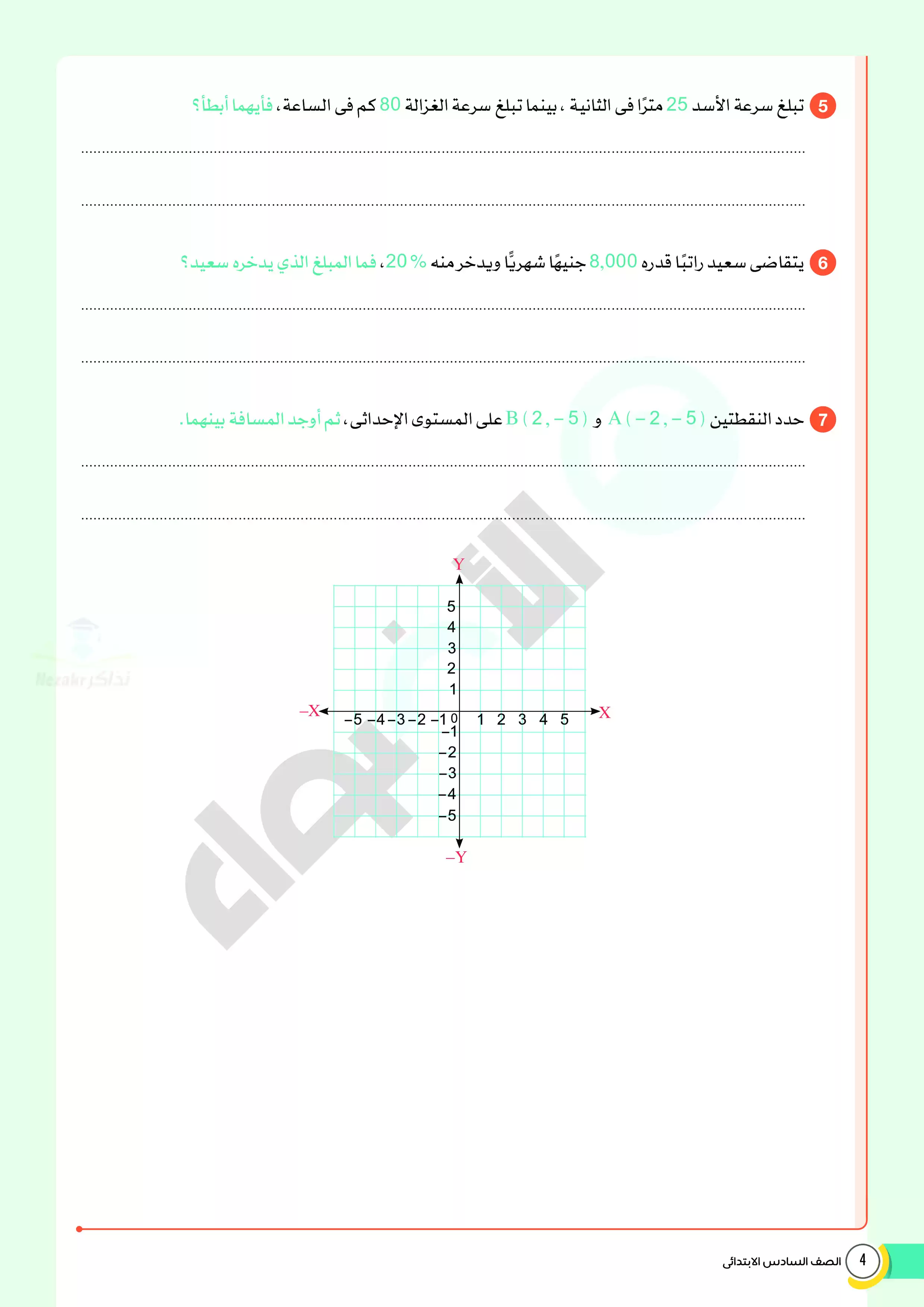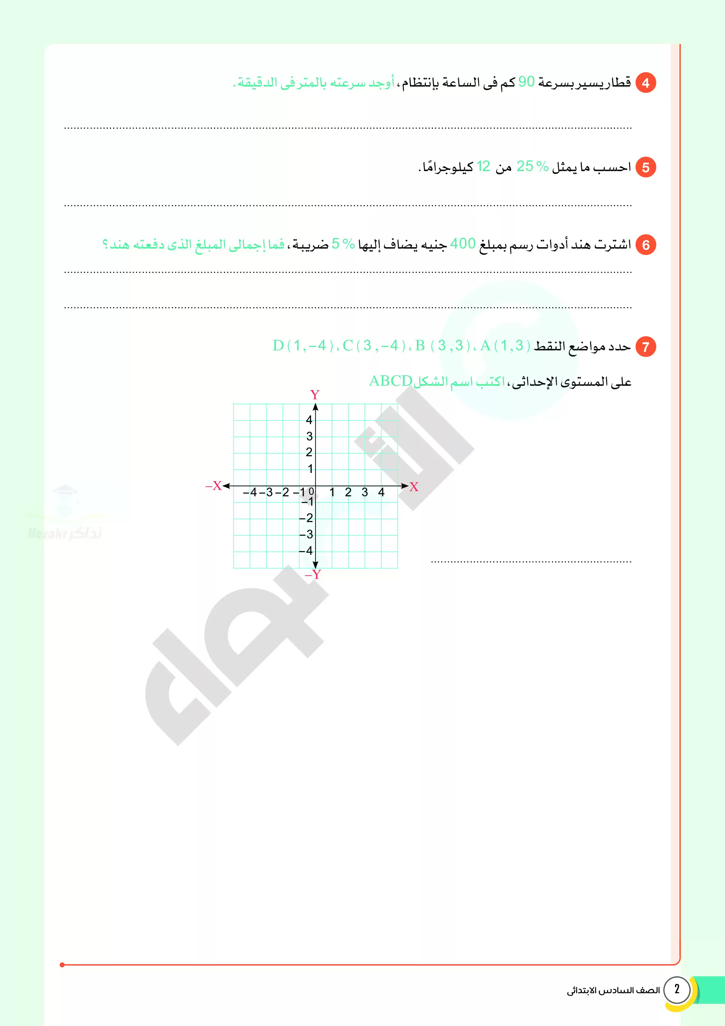 صفحة 4 من 14 صفحة من ملف: اختبارات الأضواء الاسترشادية في الرياضيات للصف السادس الابتدائي مقرر أبريل 2025 بالاجابات - Nezakr
