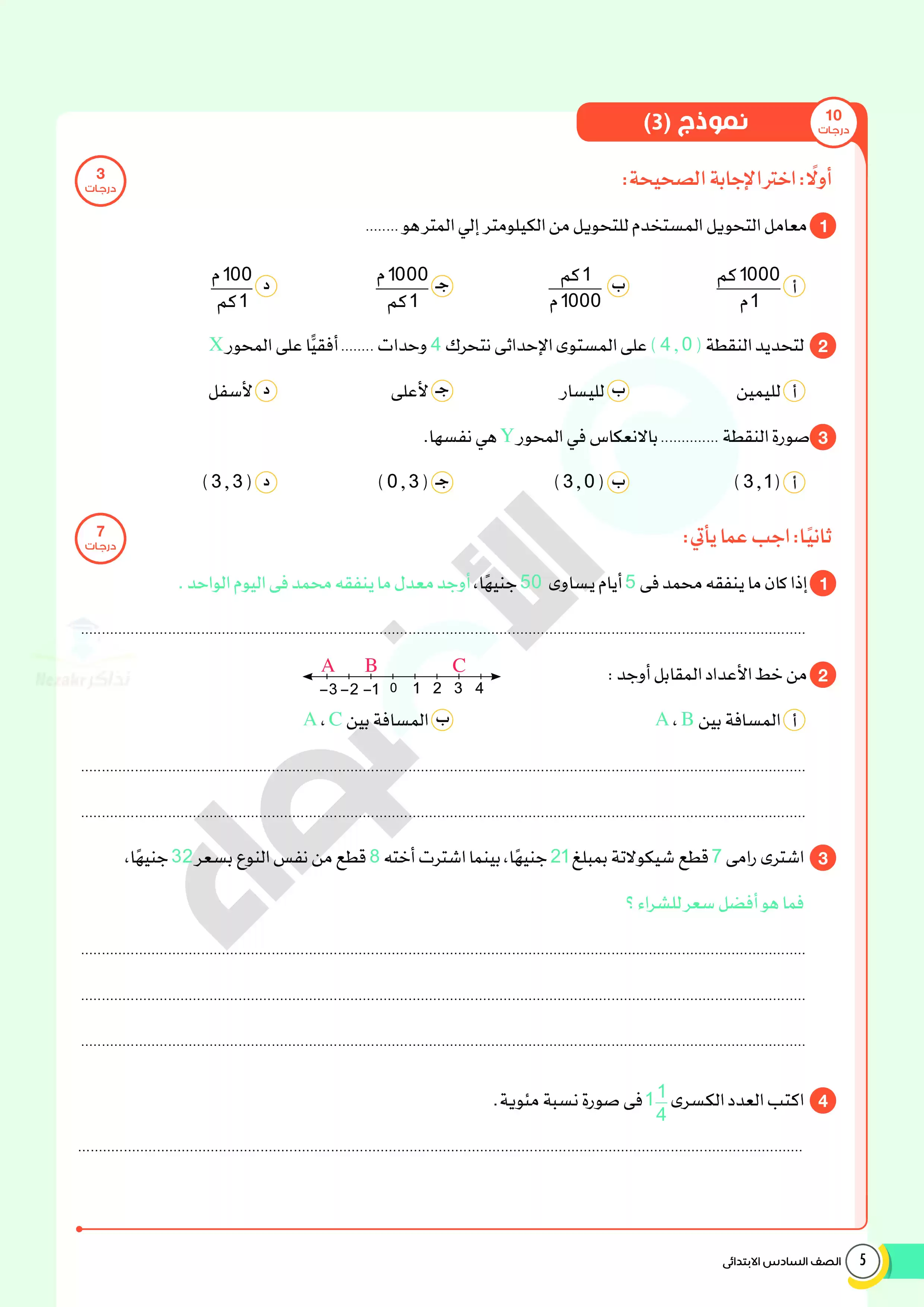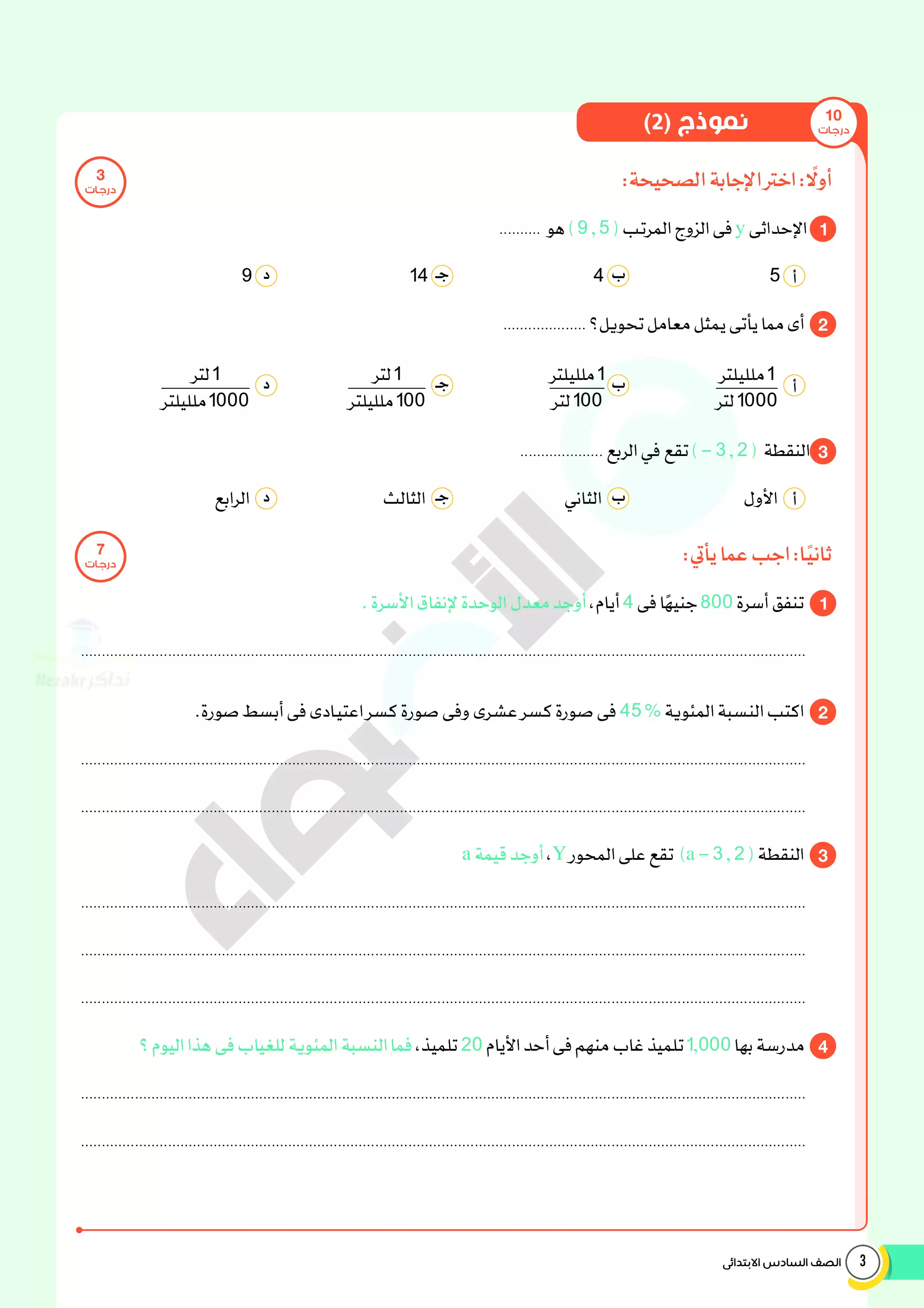 صفحة 3 من 14 صفحة من ملف: اختبارات الأضواء الاسترشادية في الرياضيات للصف السادس الابتدائي مقرر أبريل 2025 بالاجابات - Nezakr