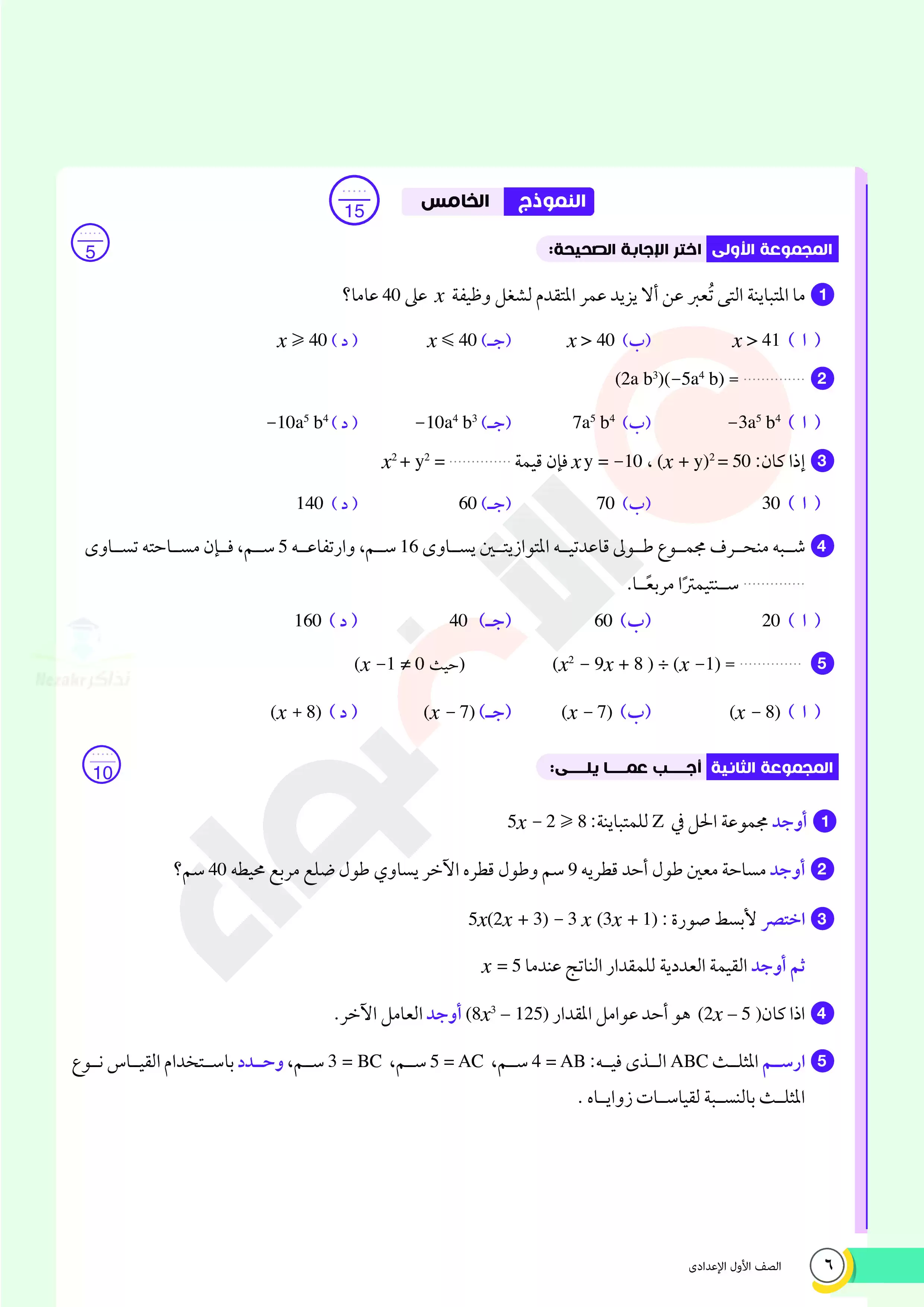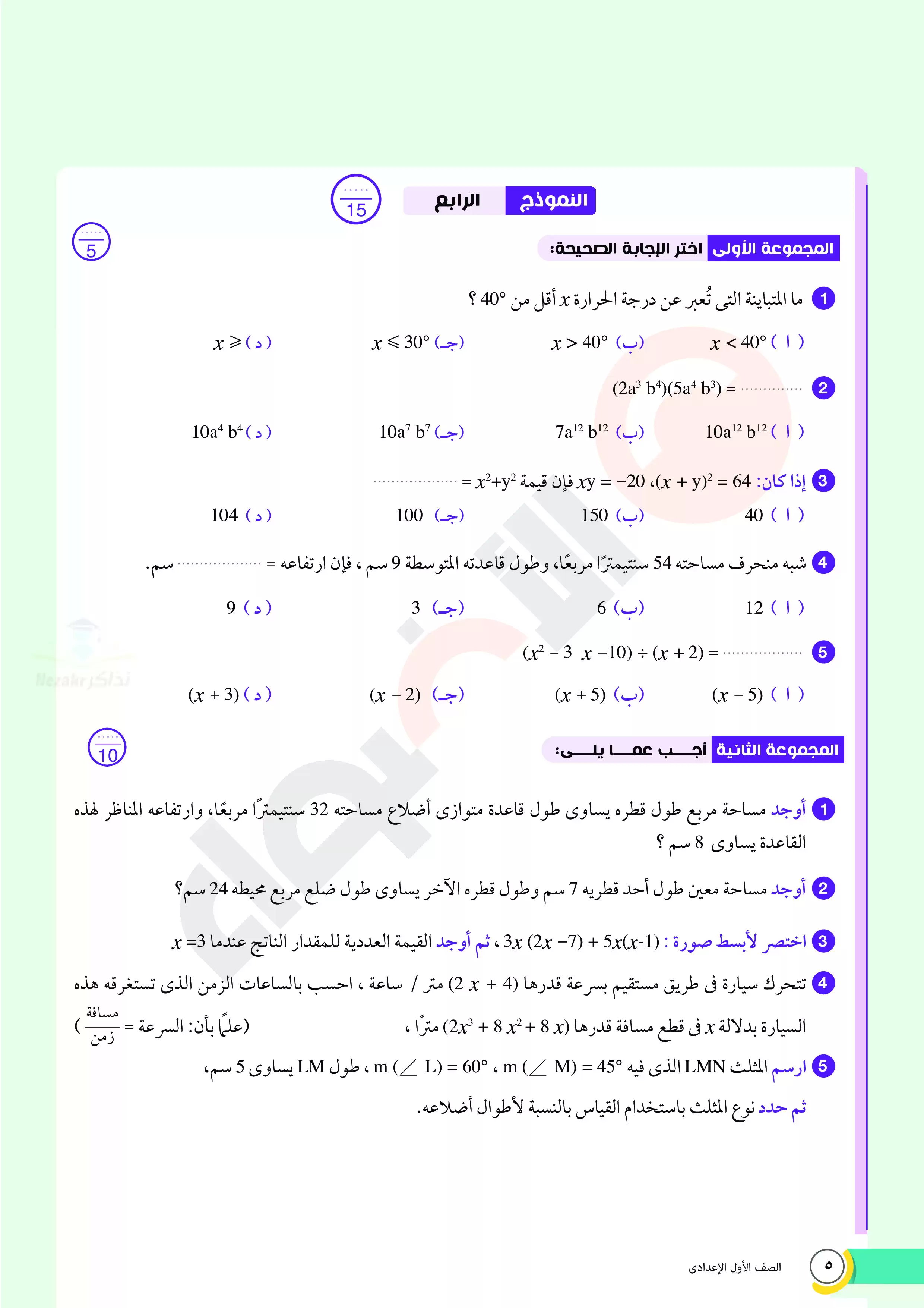 | بيانات الملف: (اختبارات الأضواء الاسترشادية في الرياضيات للصف الأول الاعدادي مقرر أبريل 2025 بالاجابات - Nezakr) | |