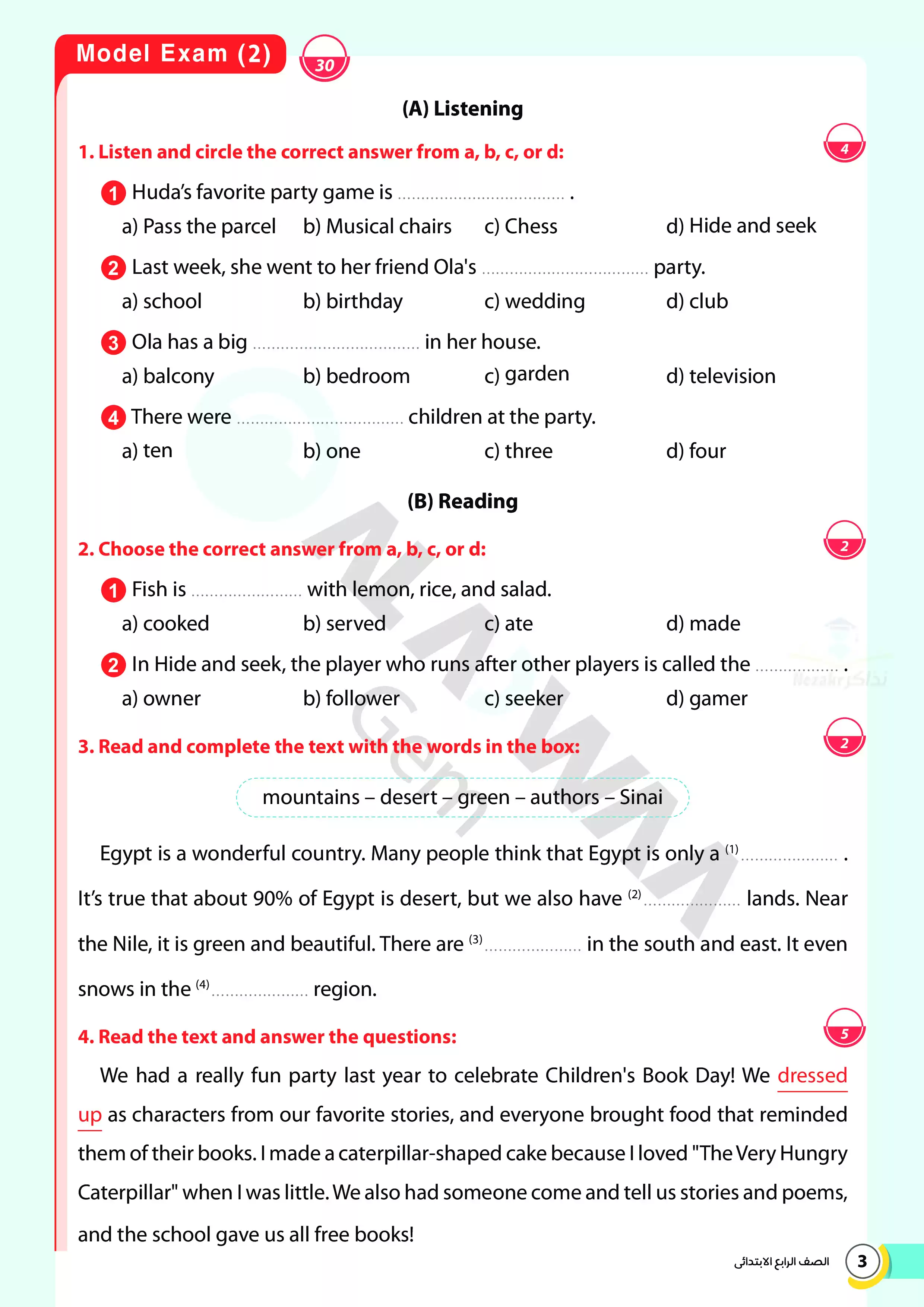 صفحة 3 من 22 صفحة من ملف: اختبارات الأضواء GEM الاسترشادية في الانجليزي للصف الرابع الابتدائي مقرر أبريل 2025 بالاجابات - Nezakr
