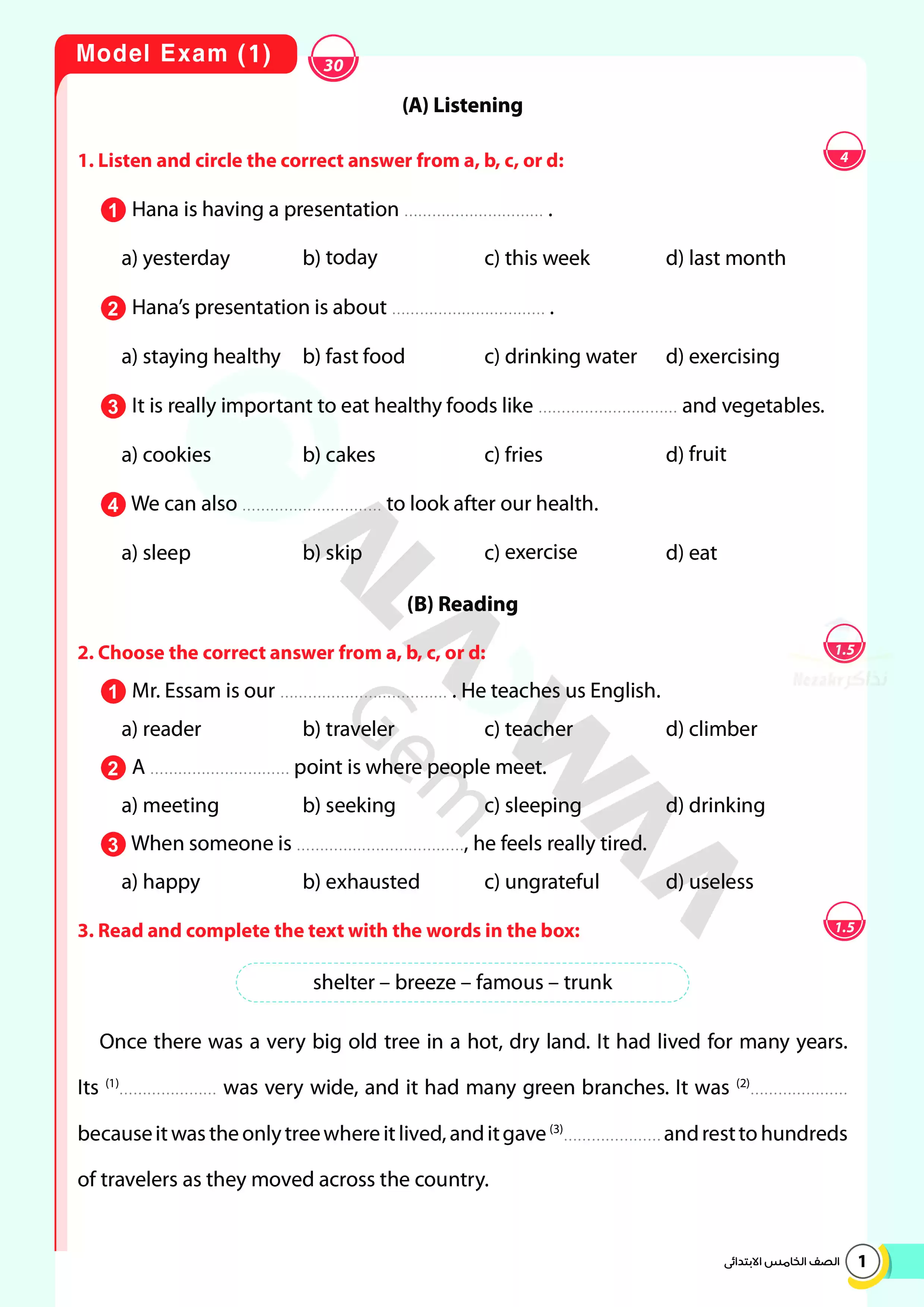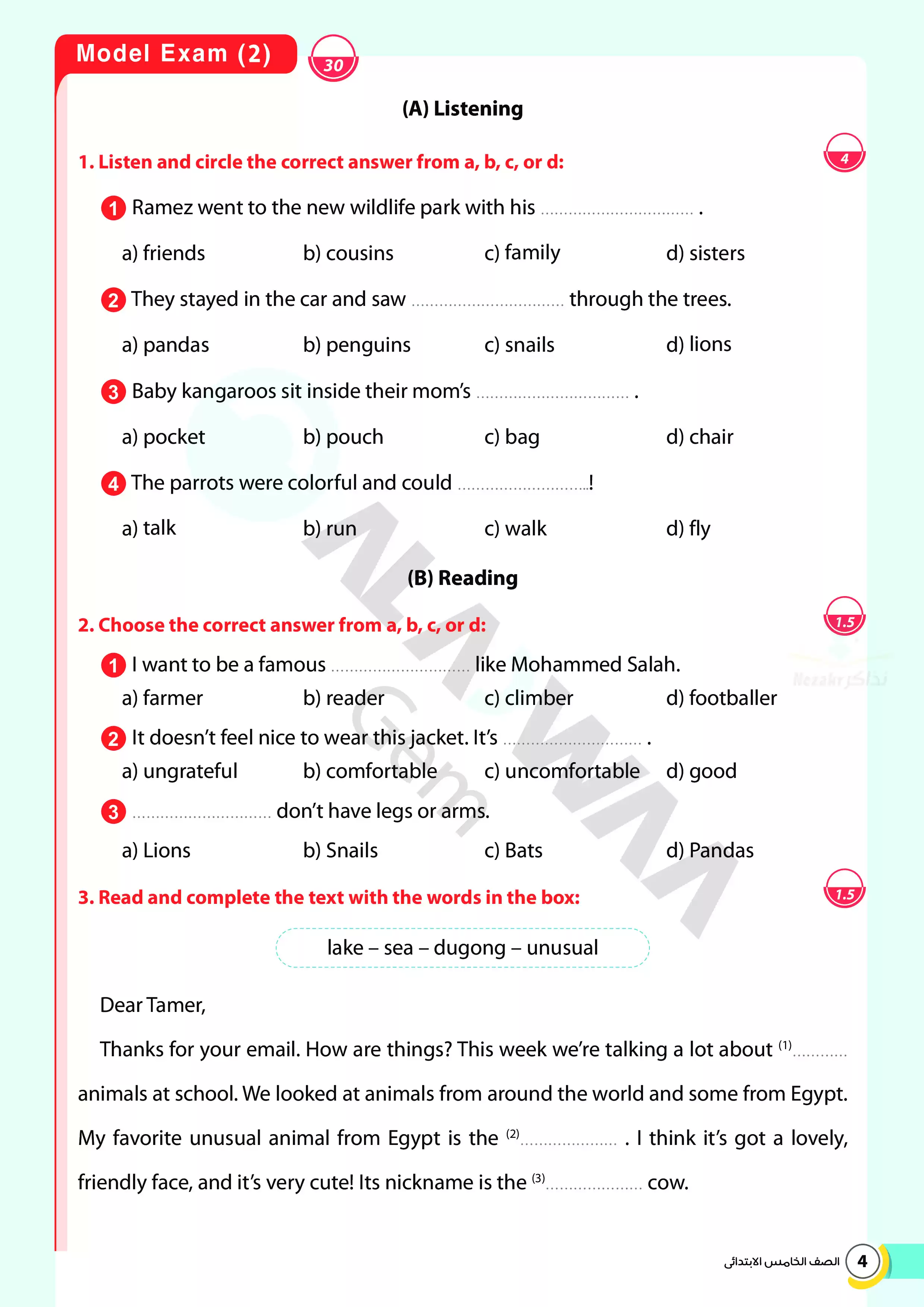 | بيانات الملف: (اختبارات الأضواء GEM الاسترشادية في الانجليزي للصف الخامس الابتدائي مقرر أبريل 2025 بالاجابات - Nezakr) | |