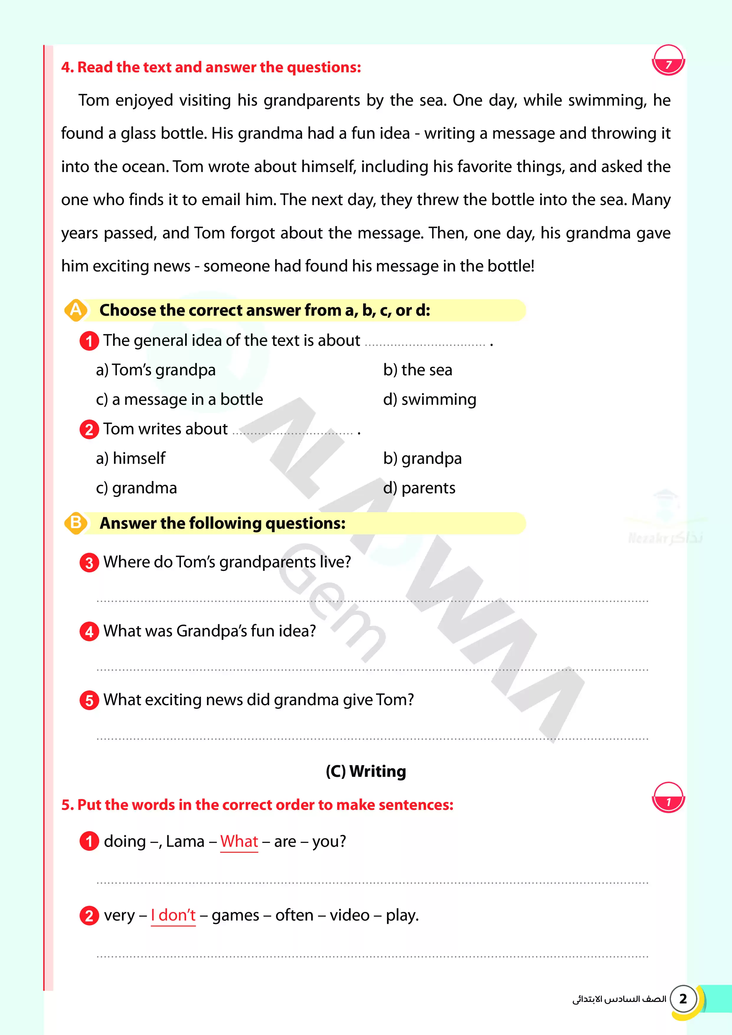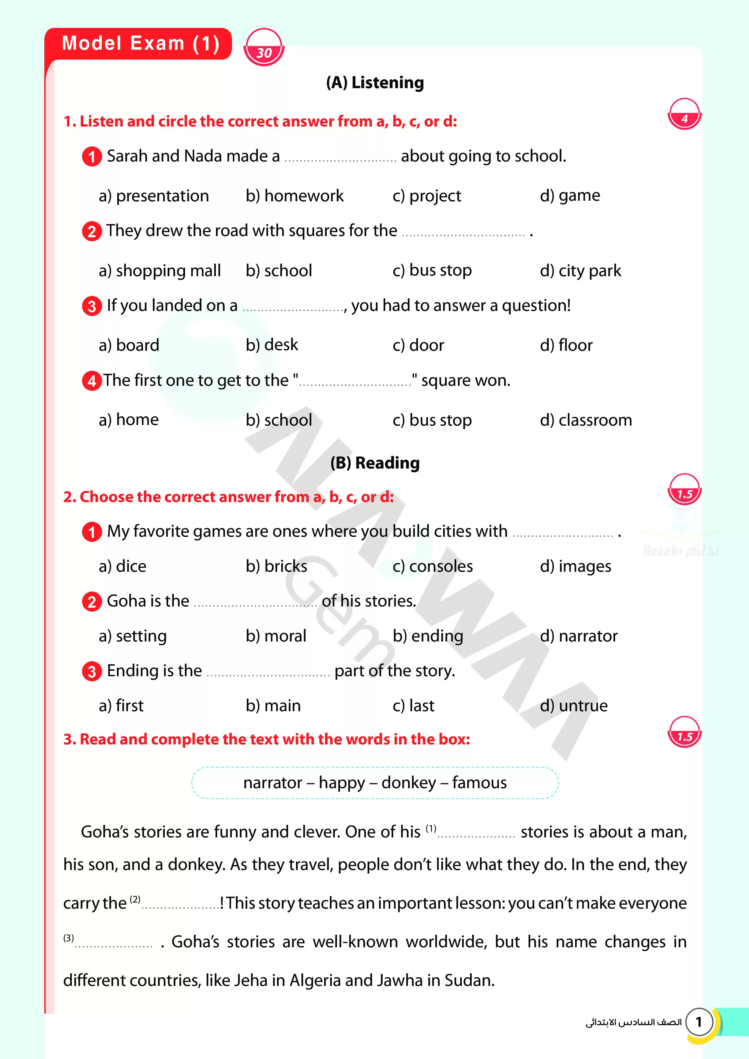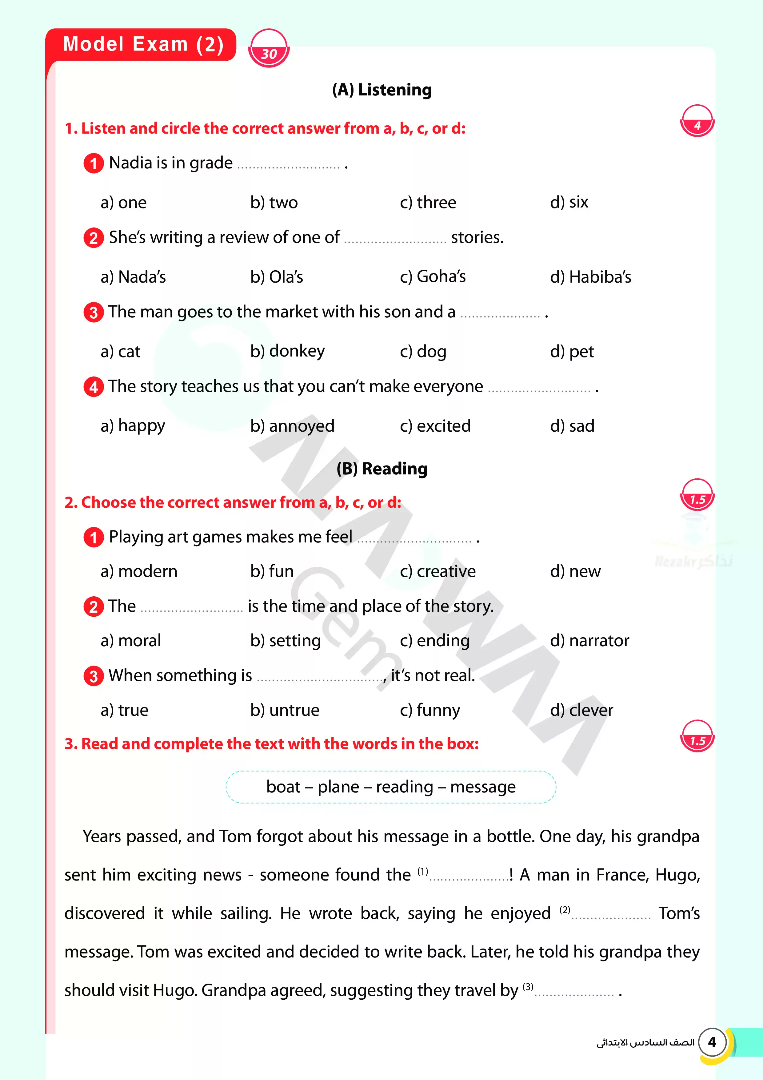 | بيانات الملف: (اختبارات الأضواء GEM الاسترشادية في الانجليزي للصف السادس الابتدائي مقرر أبريل 2025 بالاجابات - Nezakr) | |