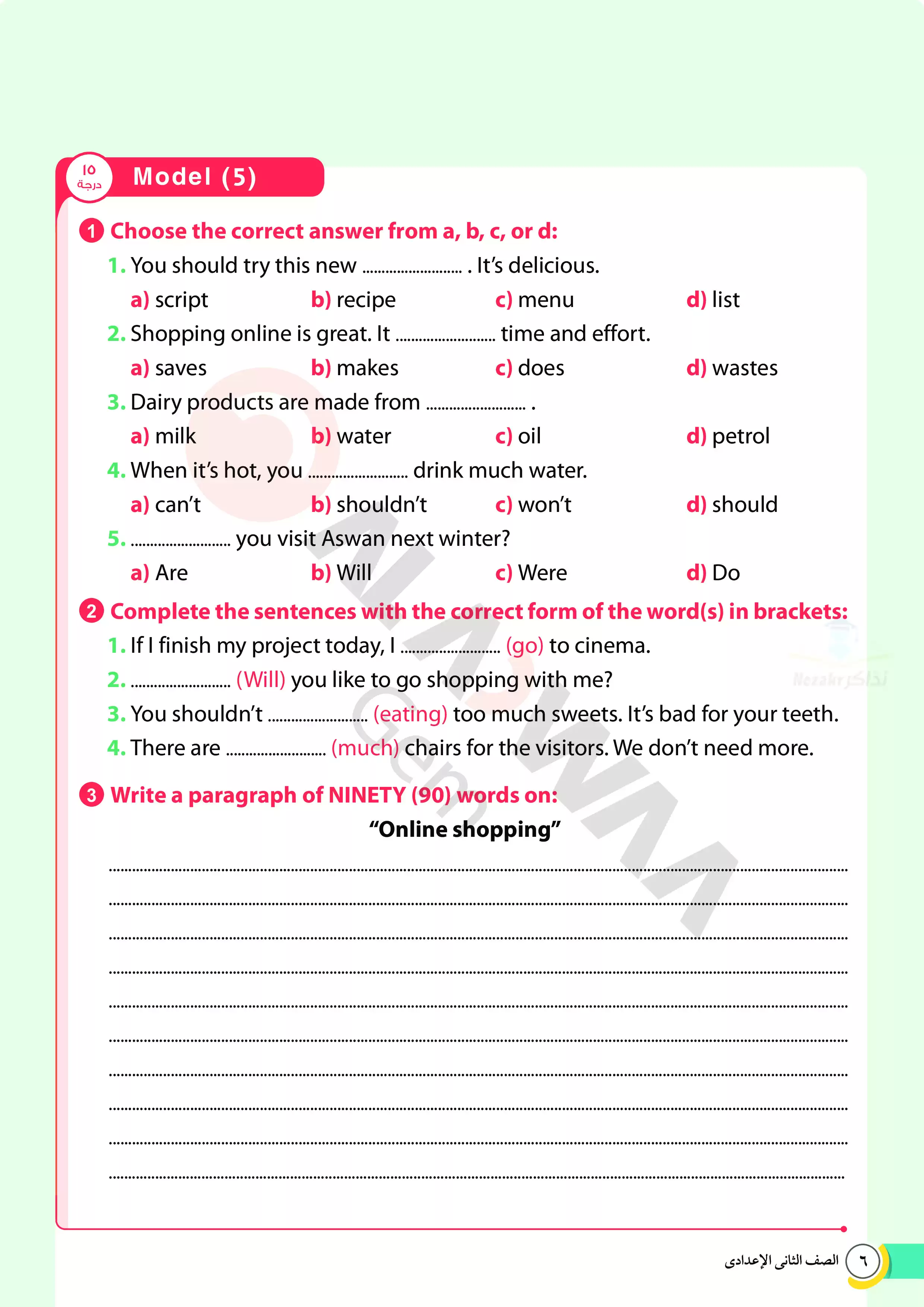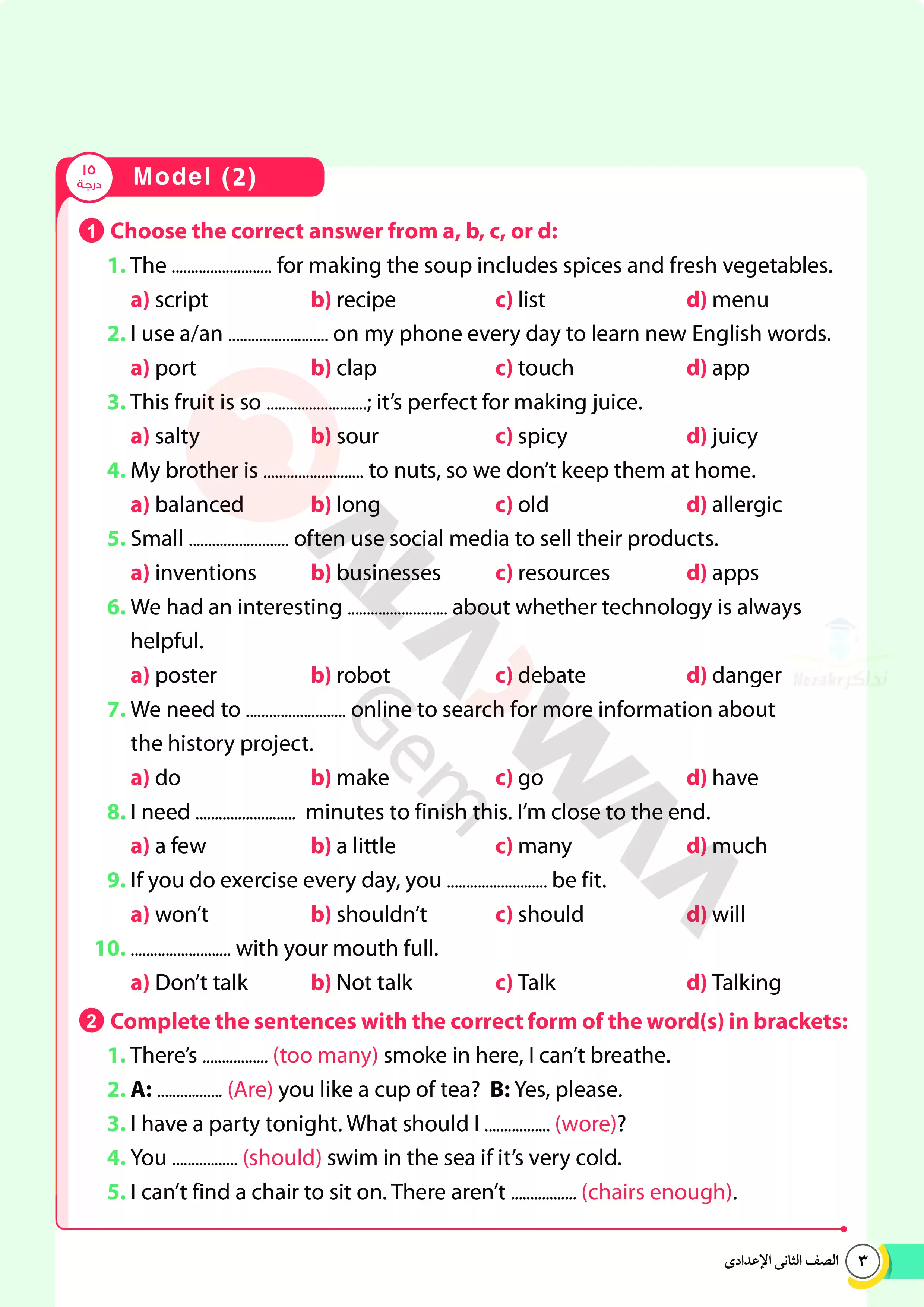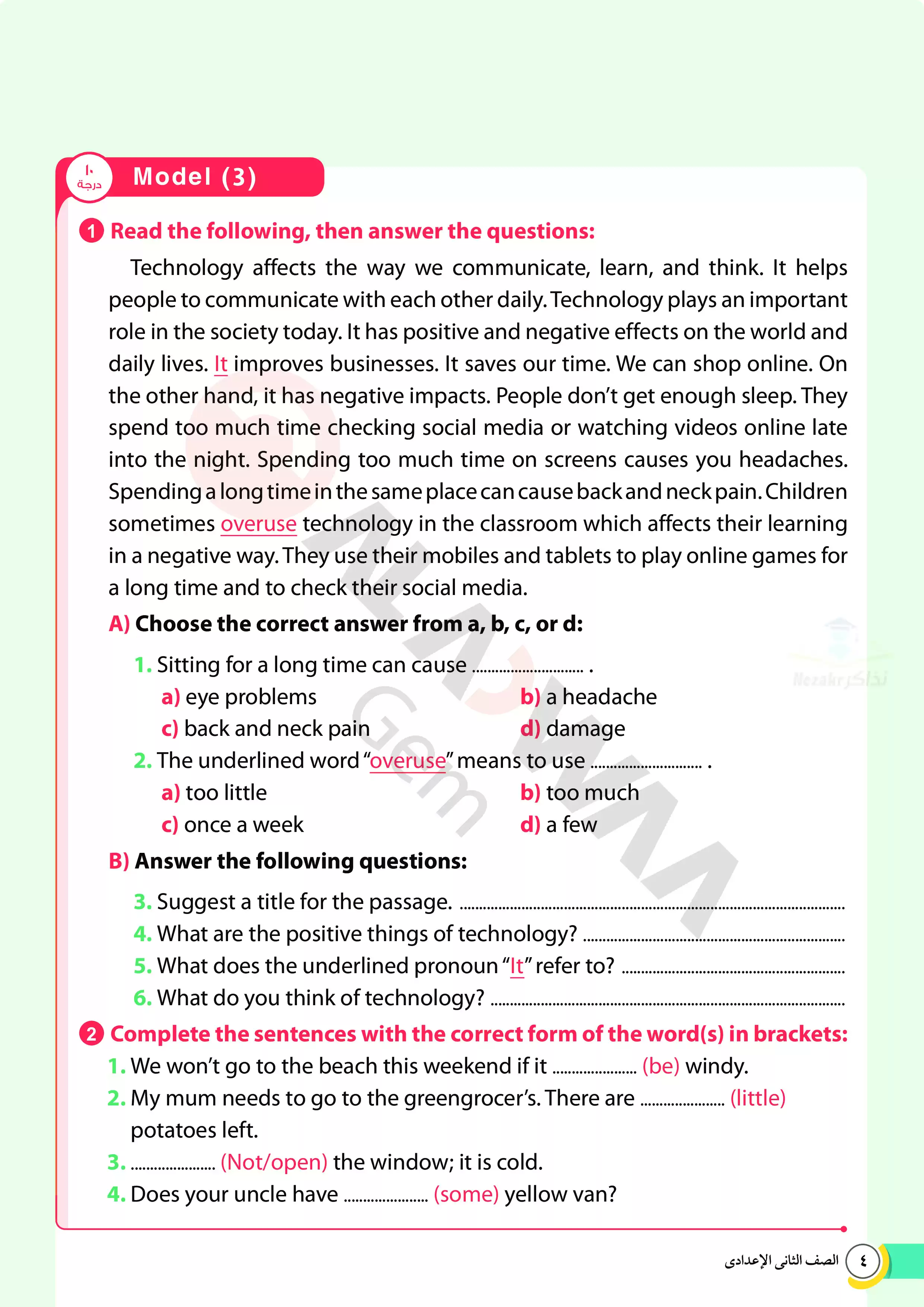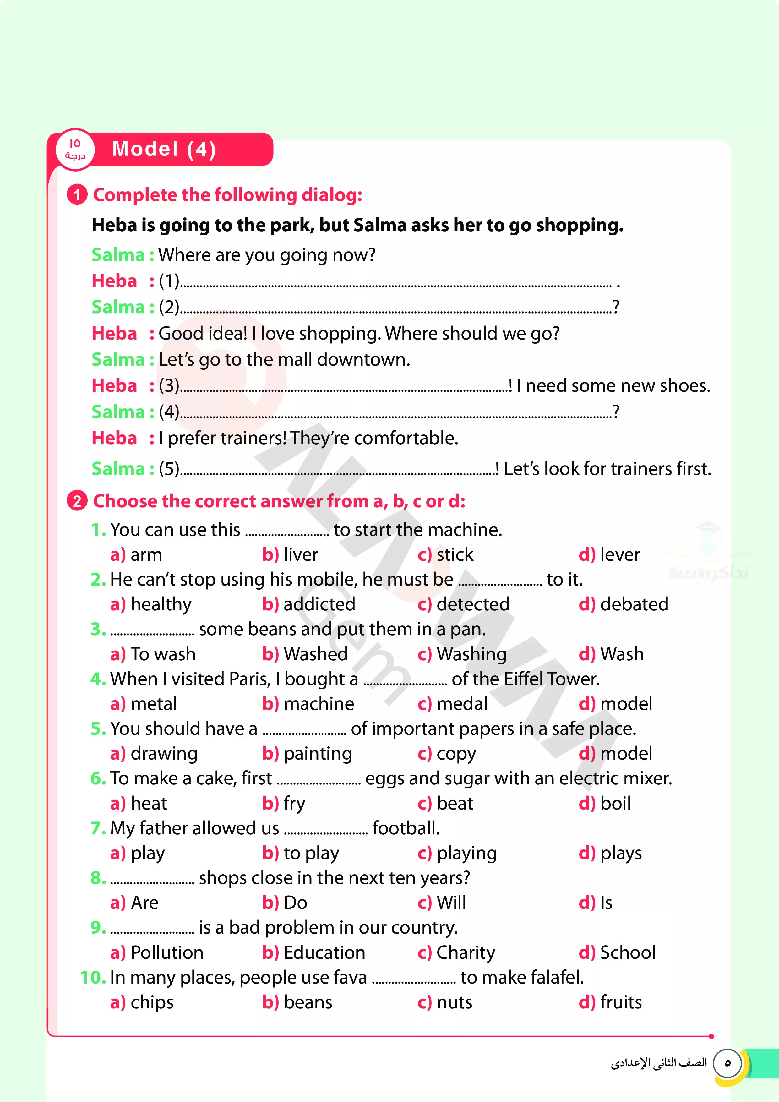 | بيانات الملف: (اختبارات الأضواء GEM الاسترشادية في الانجليزي للصف الثاني الإعدادي مقرر أبريل 2025 بالاجابات - Nezakr) | |