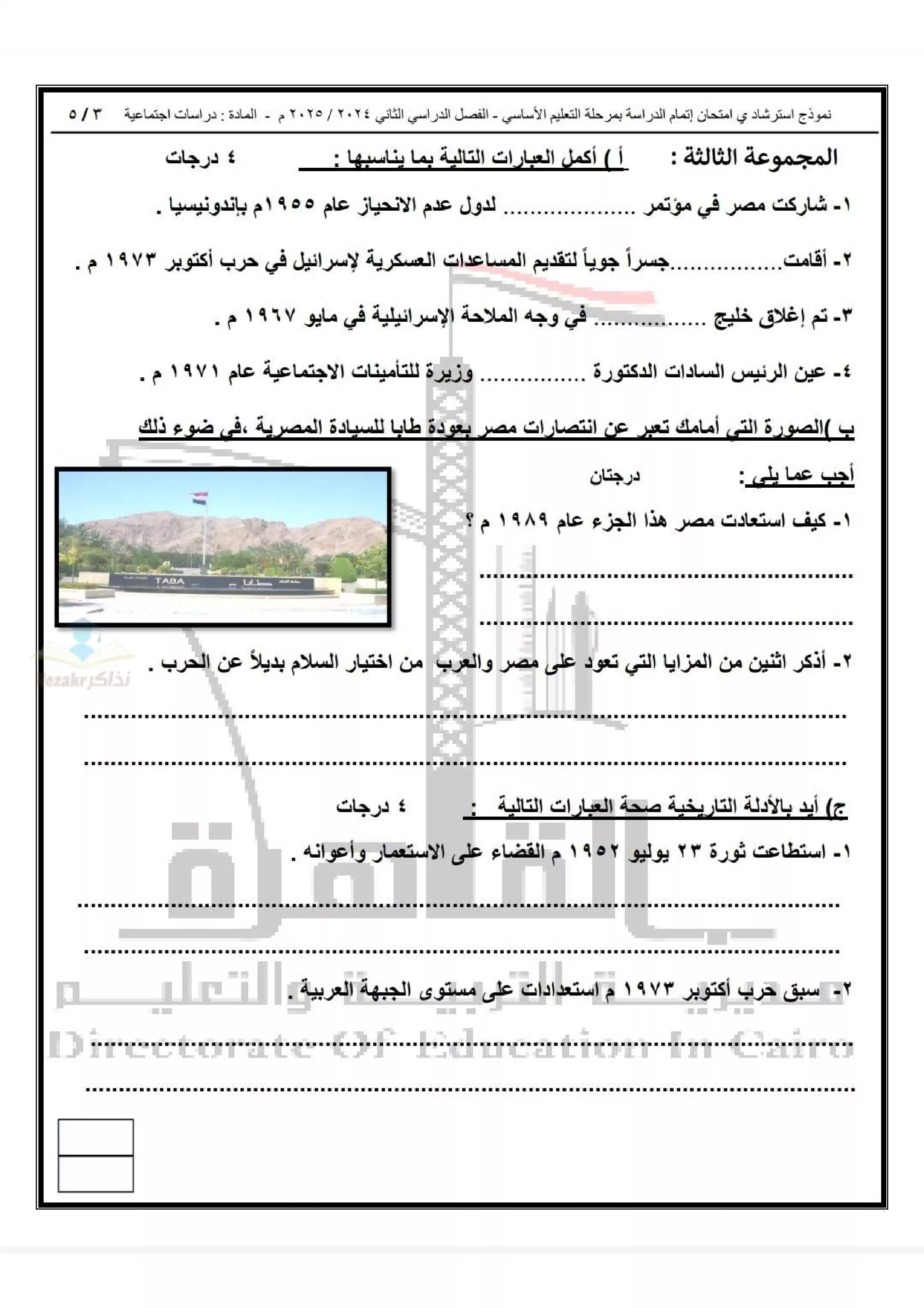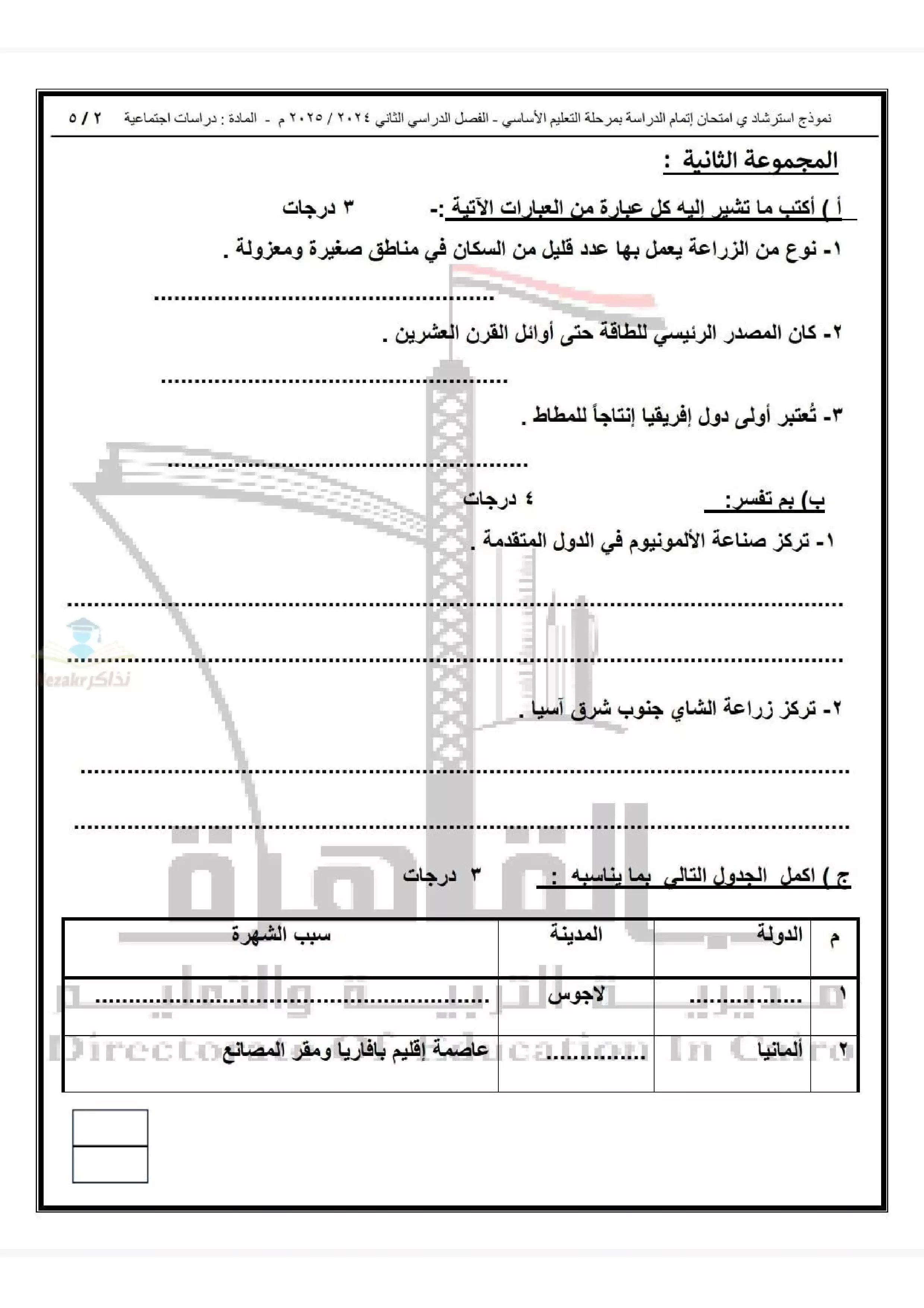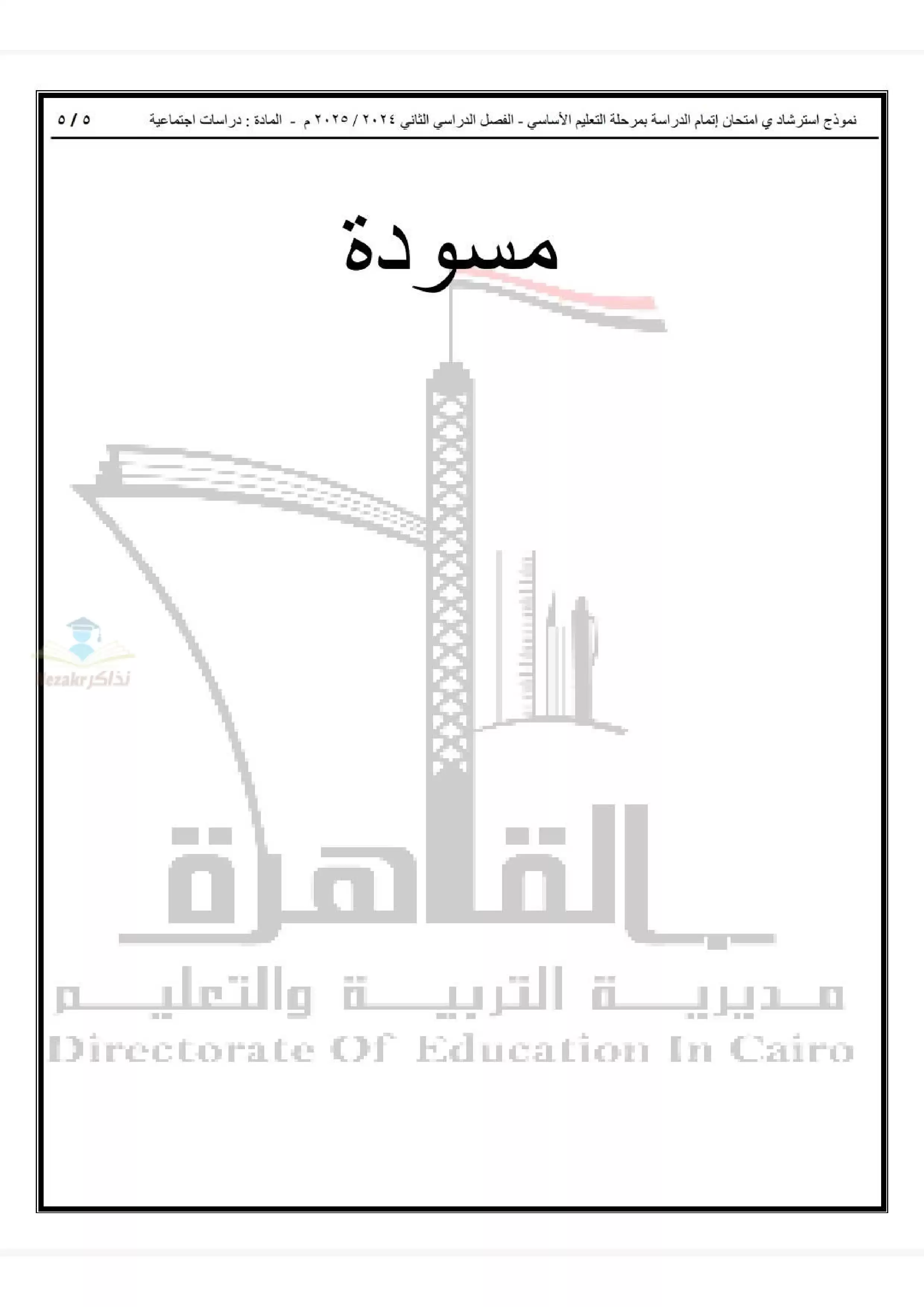 | بيانات الملف: (نموذج اختبار بوكلت استرشادي في الدراسات للصف الثالث الاعدادي محافظة القاهرة ترم ثاني 2025 - Nezakr) | |