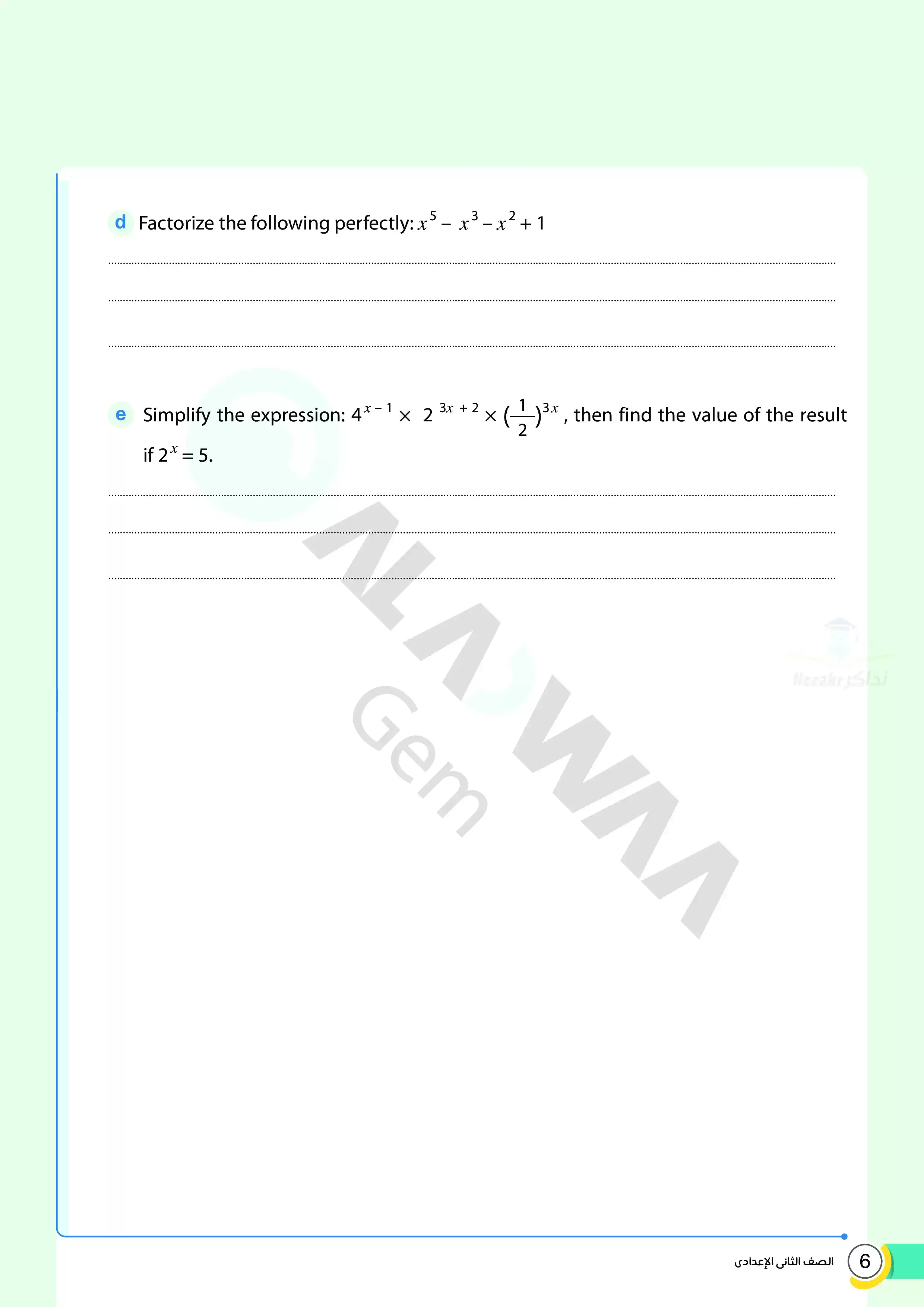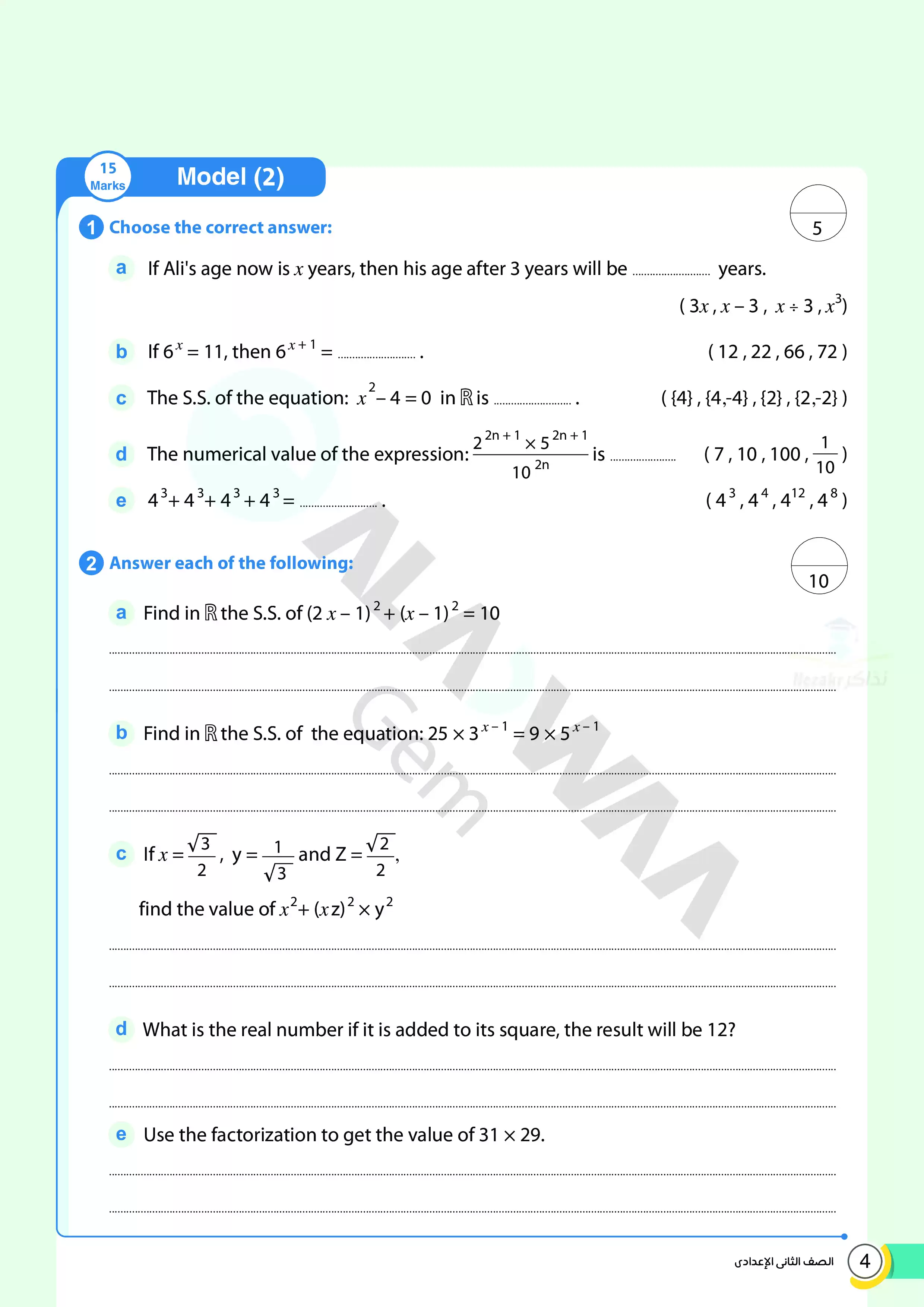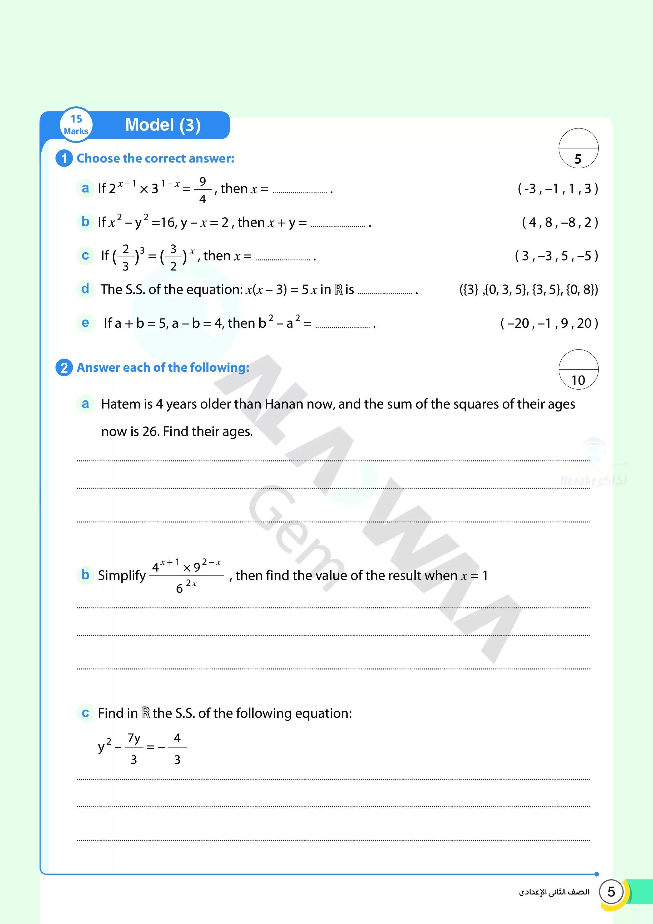 | بيانات الملف: (اختبارات الأضواء GEM الاسترشادية في الجبر للغات Algebra للصف الثاني الإعدادي مقرر أبريل 2025 بالاجابات - Nezakr) | |