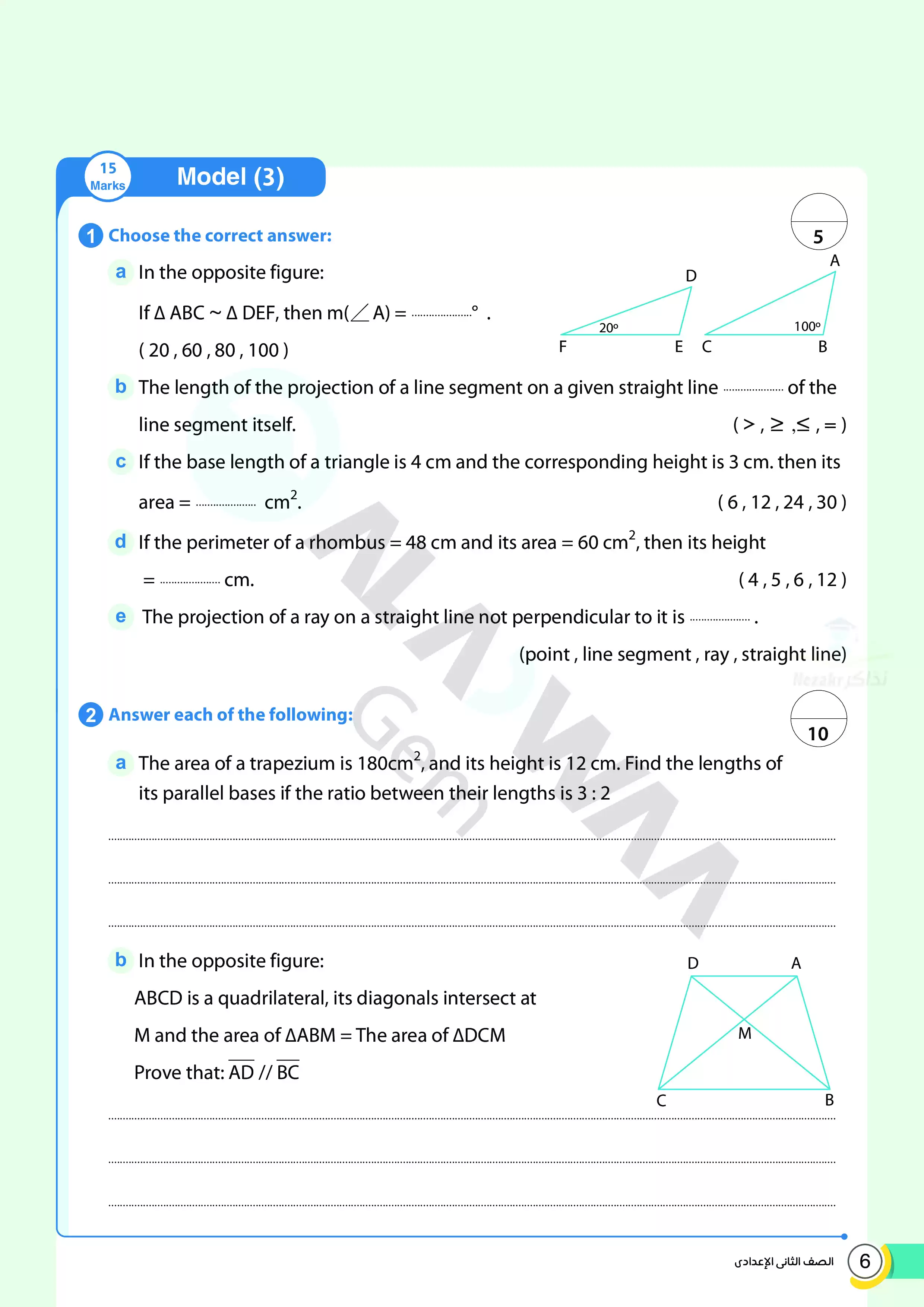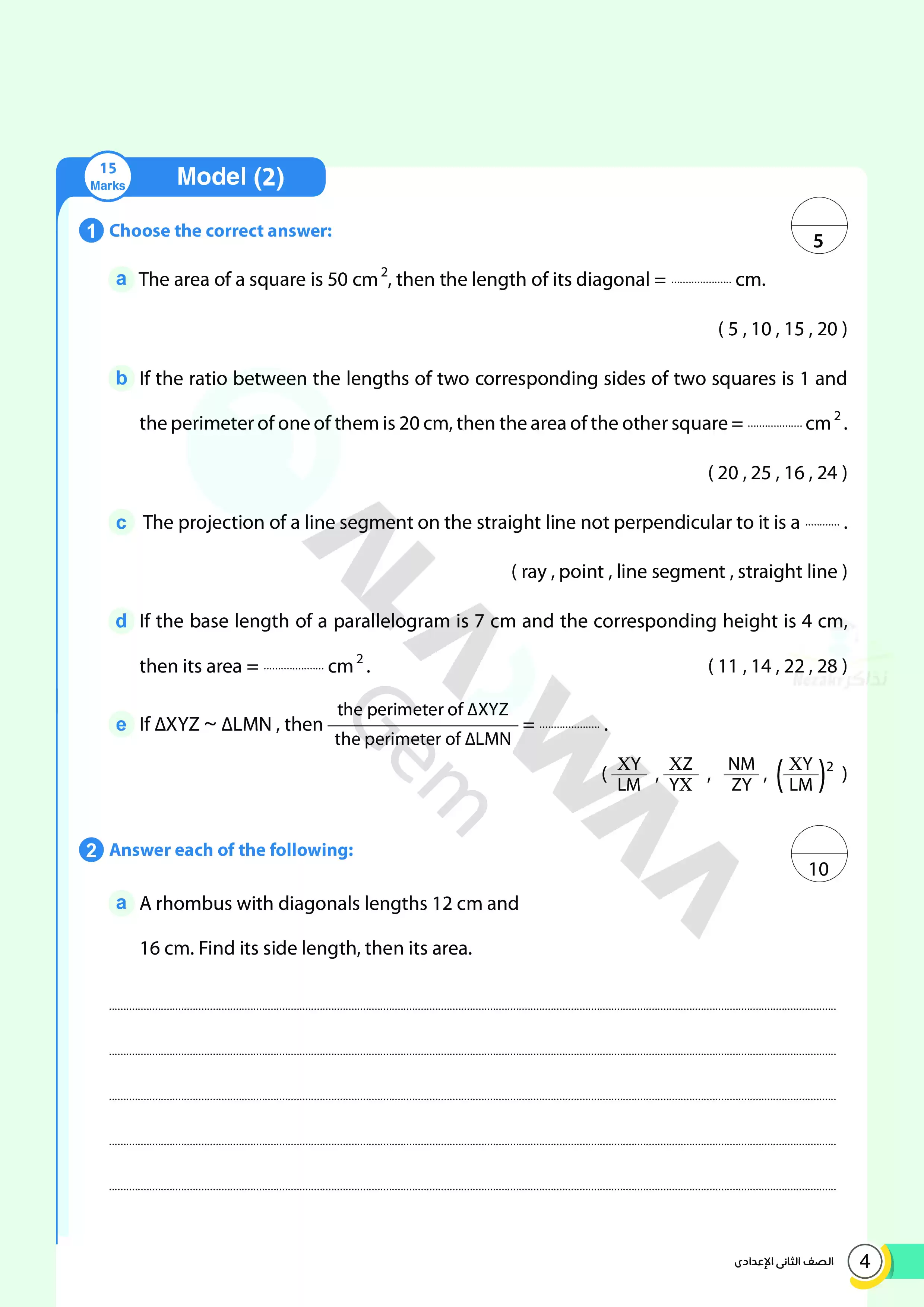 | بيانات الملف: (اختبارات الأضواء GEM الاسترشادية في الهندسة للغات Geometry للصف الثاني الإعدادي مقرر أبريل 2025 بالاجابات - Nezakr) | |