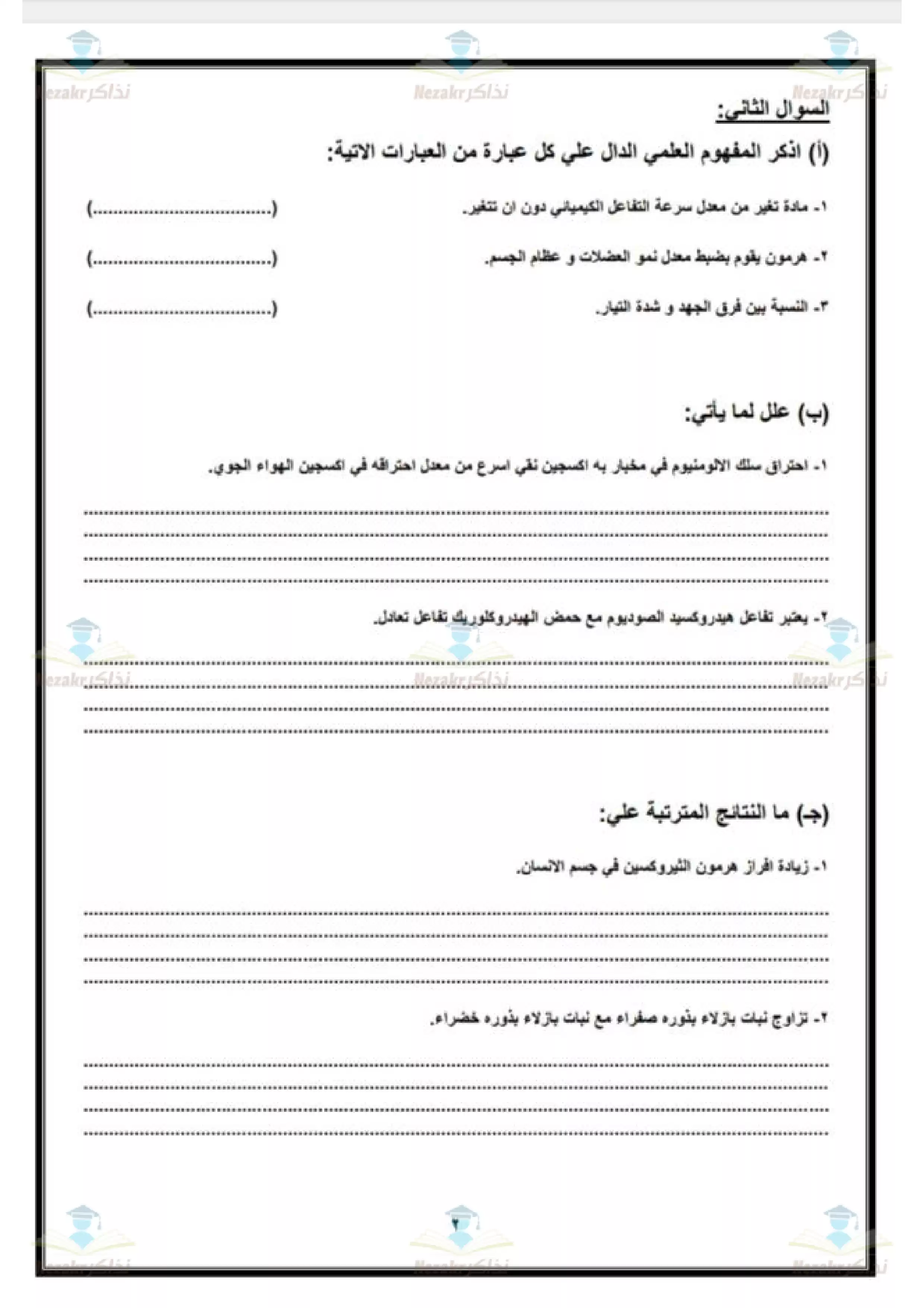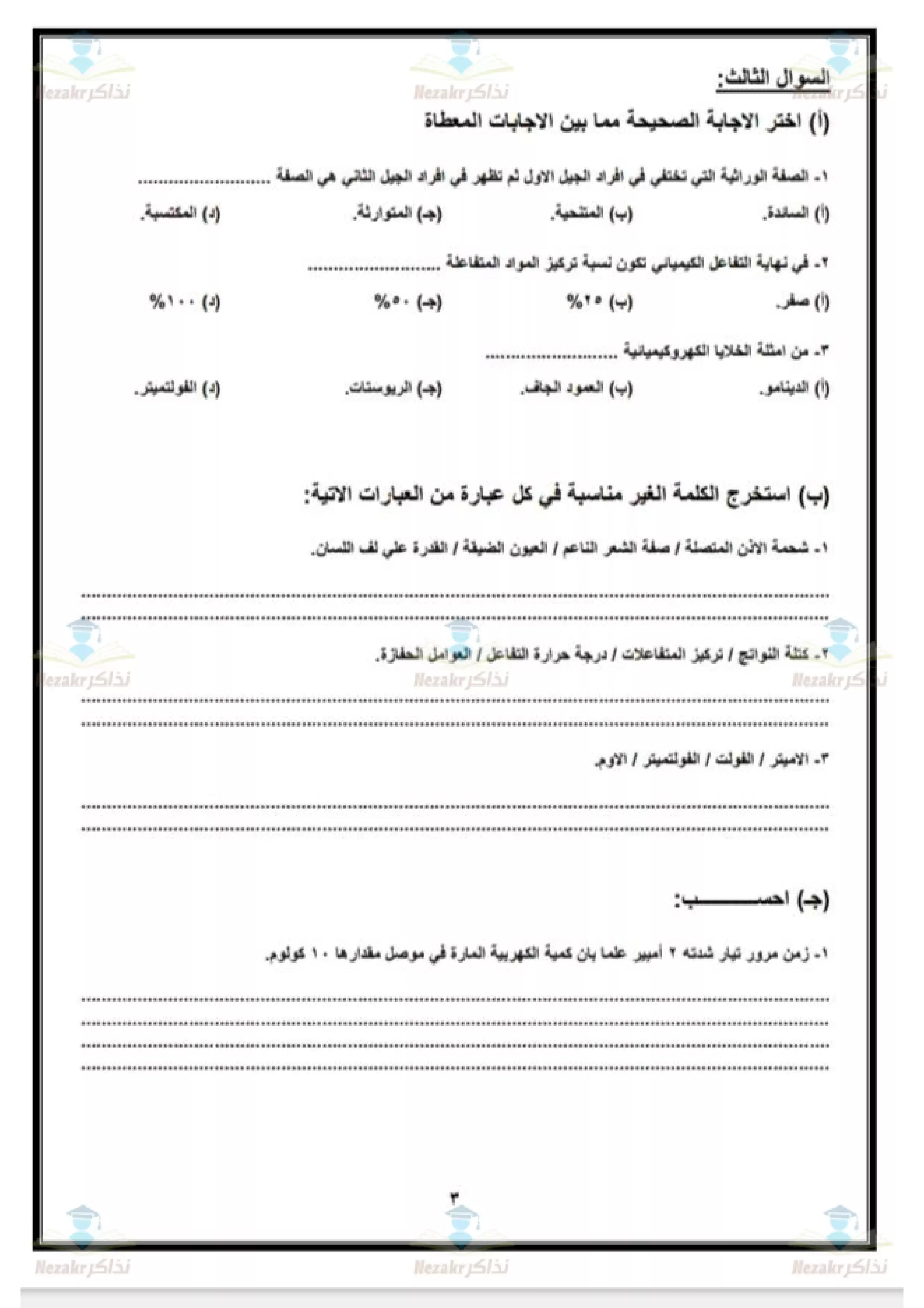 سكرين شوت من الملف: نموذج اختبار بوكلت استرشادي في العلوم للصف الثالث الاعدادي محافظة الجيزة ترم ثاني 2025 - Nezakr